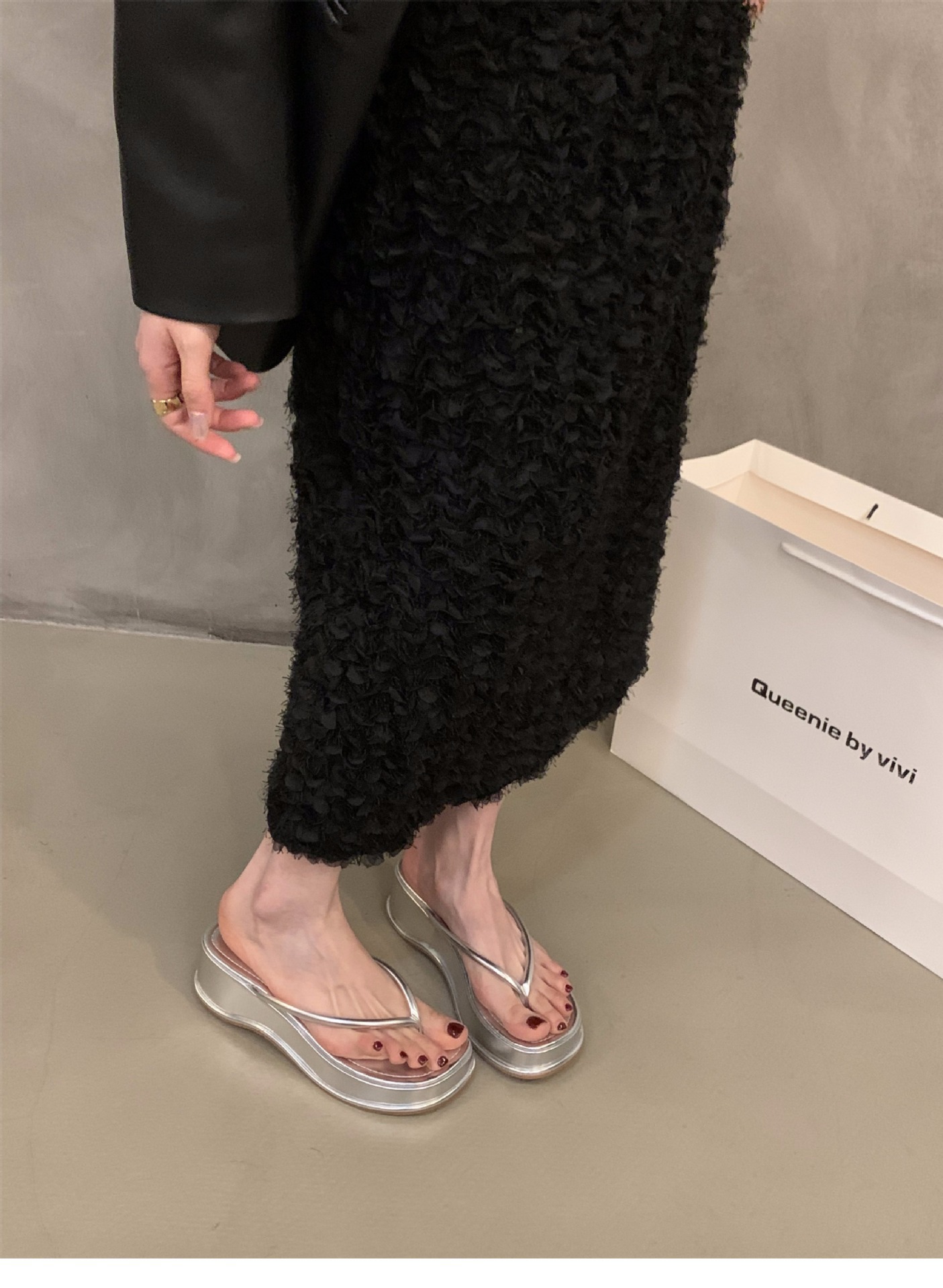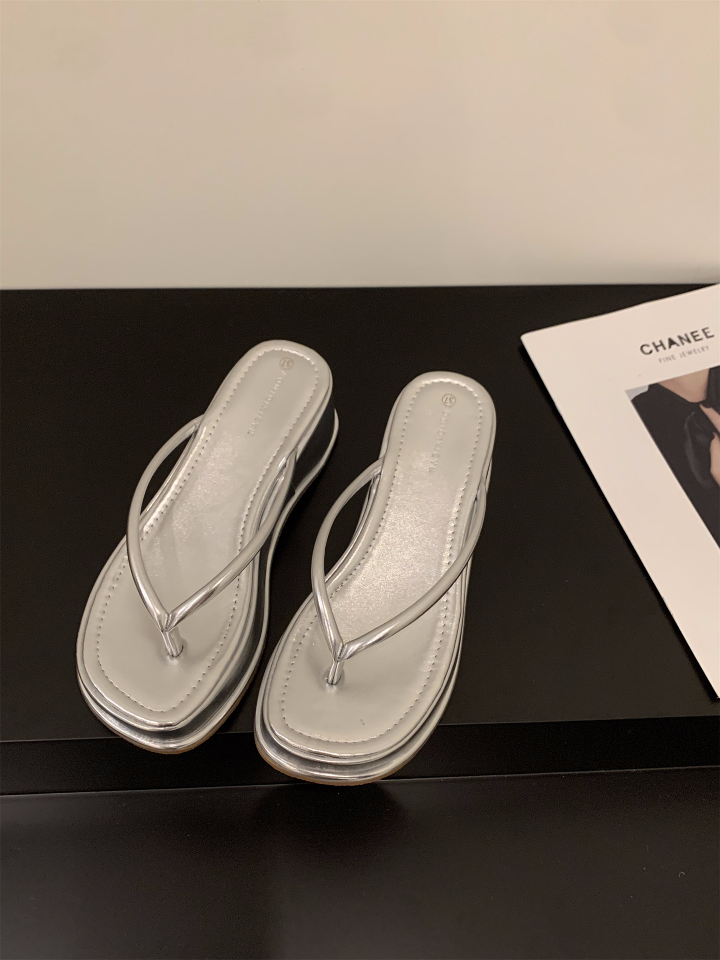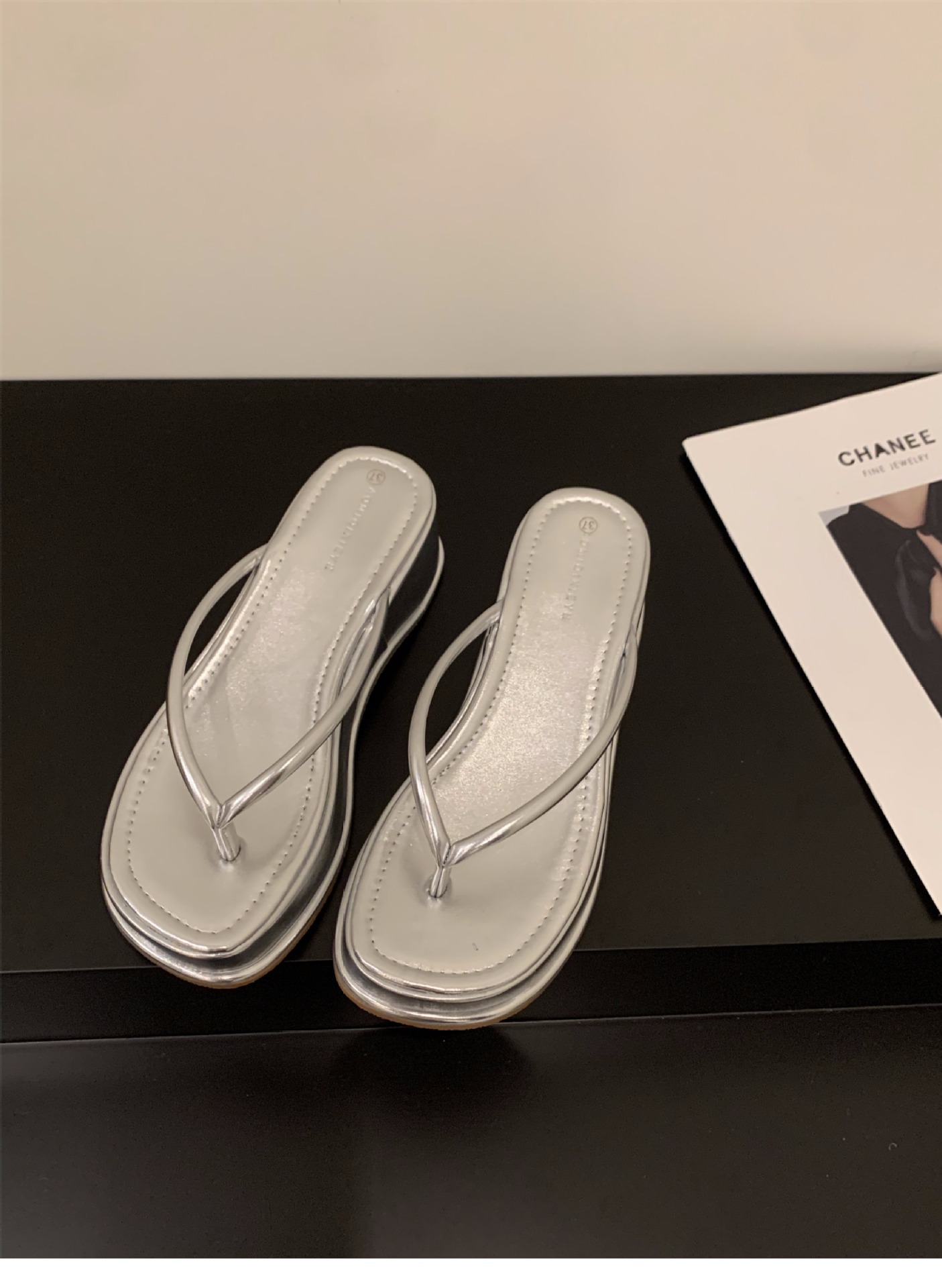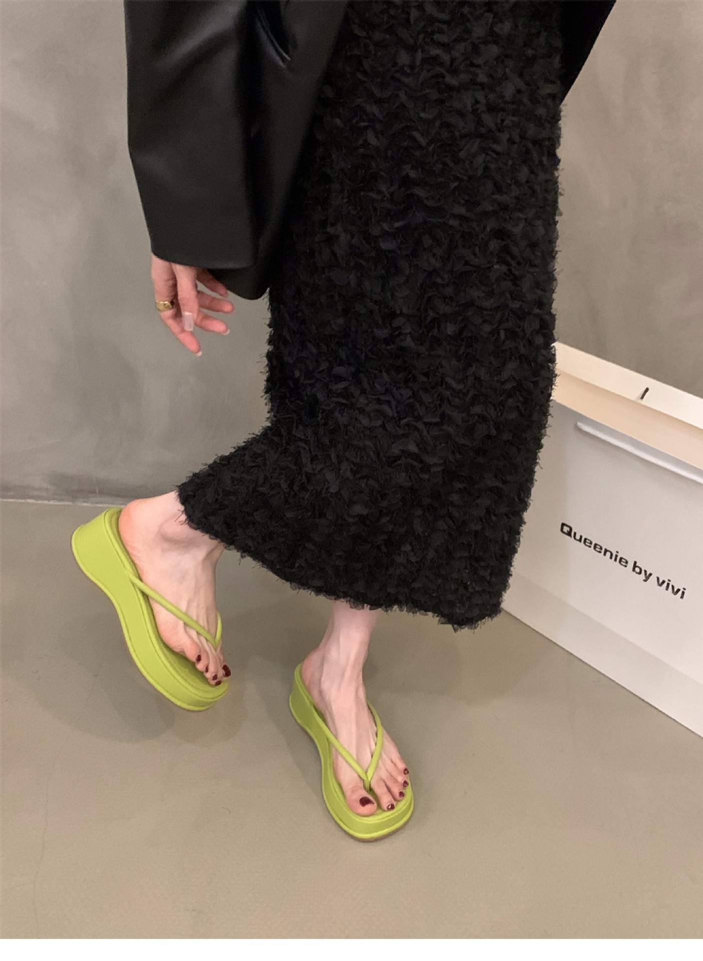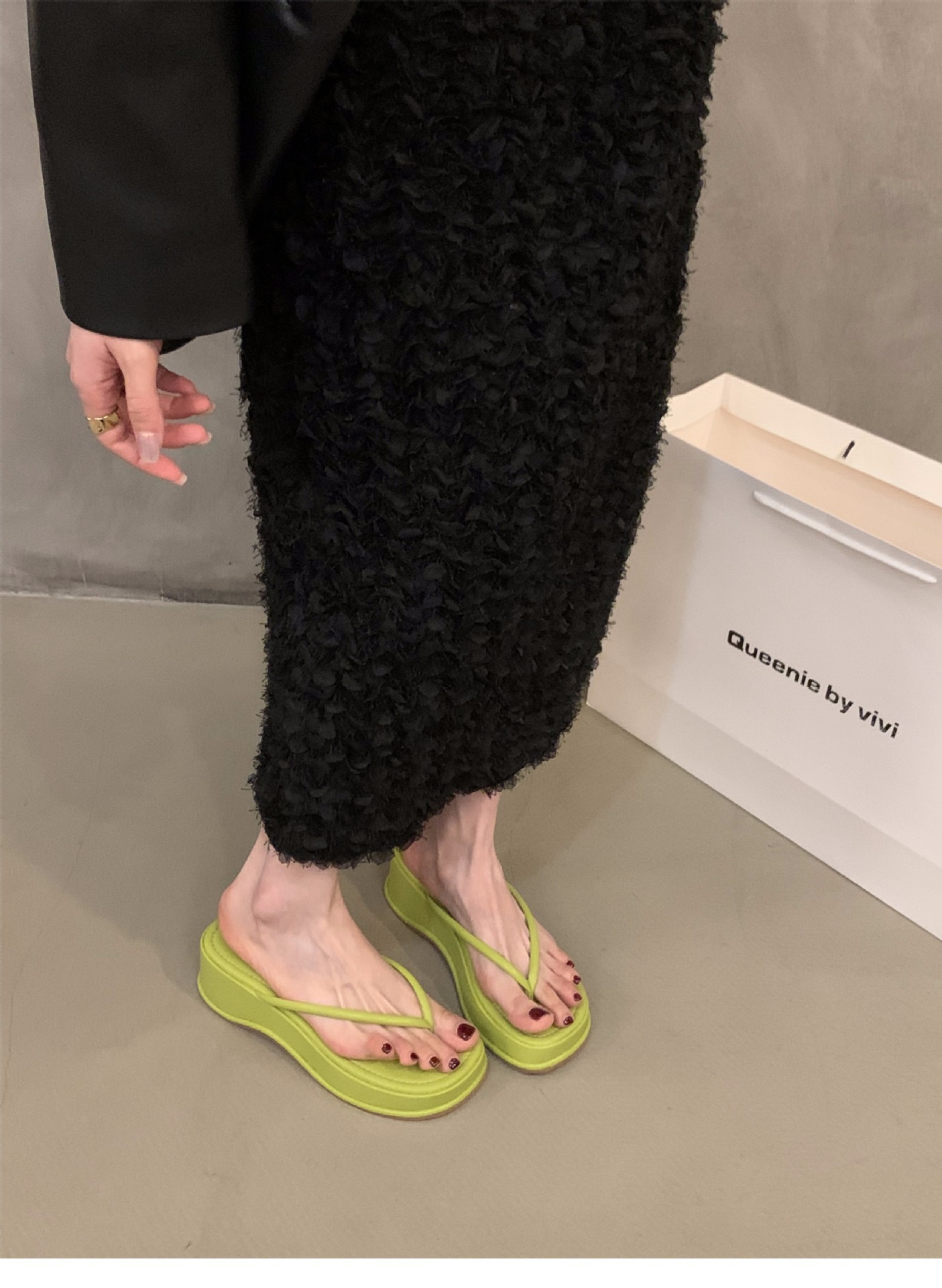 두꺼운 밑창 높이 증가 플립 플롭 요정 신발 겉옷 홀리데이 웨지 힐 라운드 헤드 샌들 2024 새로운 여름스토어 가기