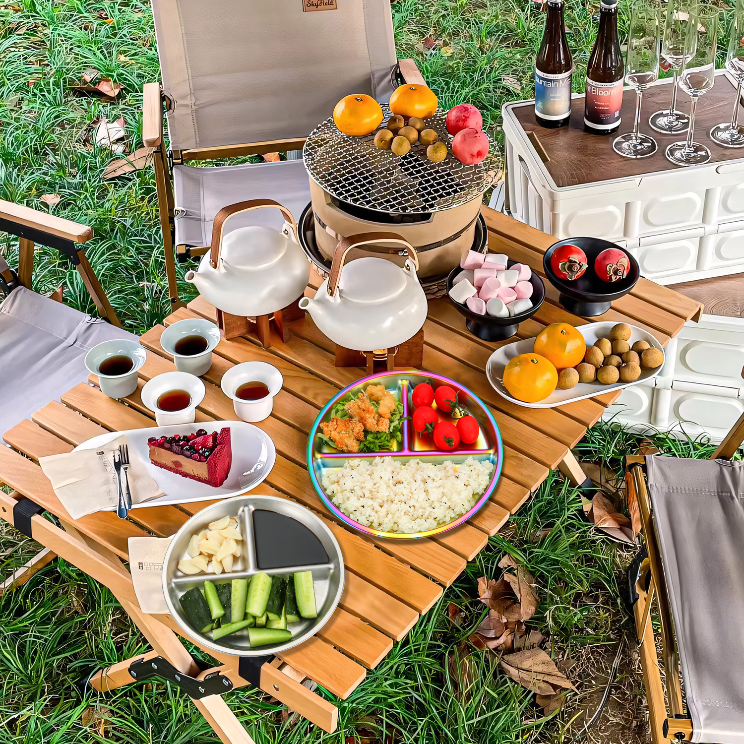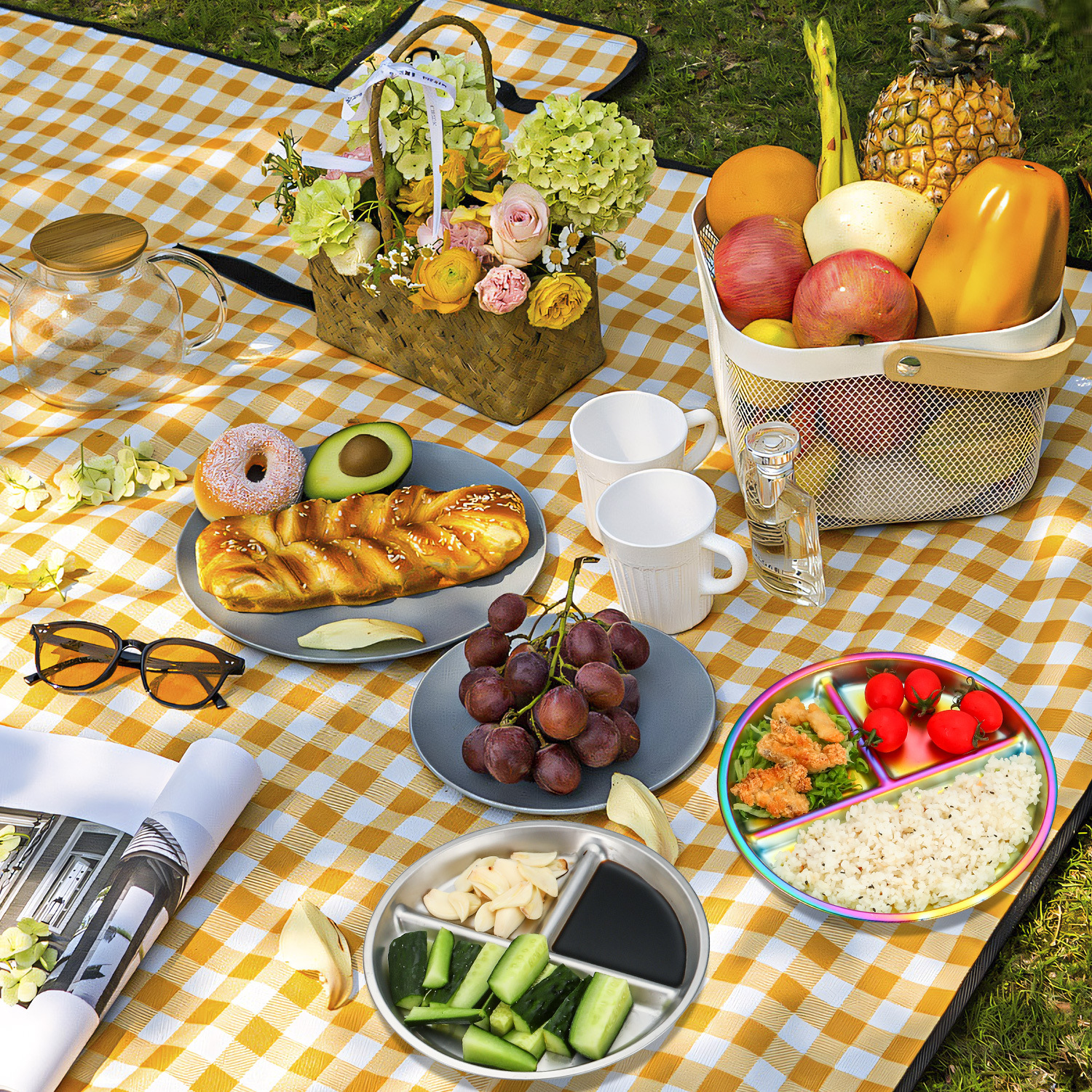 304 스테인레스 스틸 어린이 디너 플레이트 8 인치 분할 디너 플레이트 지방 감소 라운드 학생 야외 캠핑 스낵 살라 플레이트