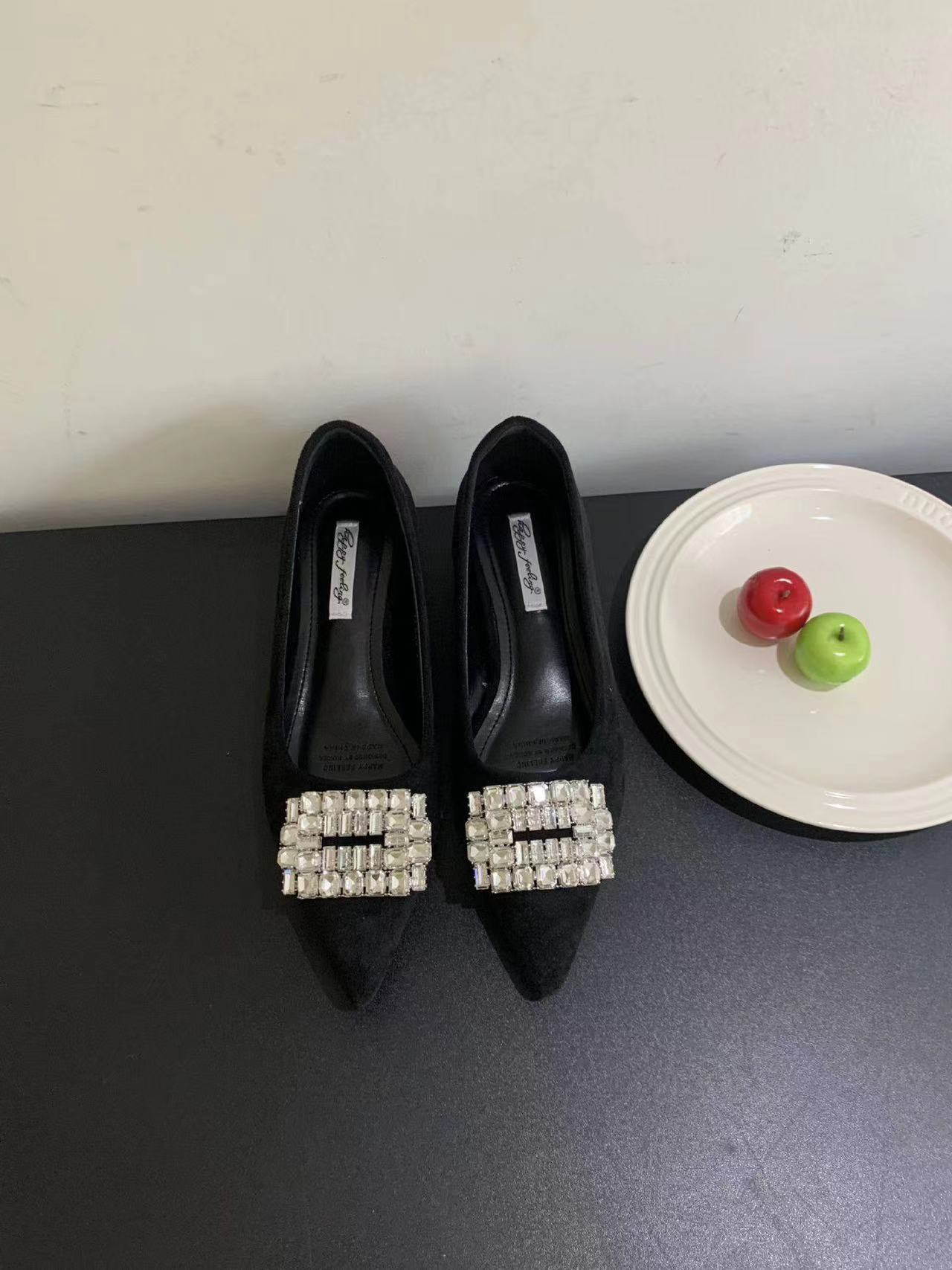 여성을 위한 높이가 증가된 라인스톤 싱글 슈즈 2025 봄 신상 슈즈 스커트와 함께 입을 수 있는 레이어드 스웨이드 포인티드 프렌치 슈즈스토어 가기