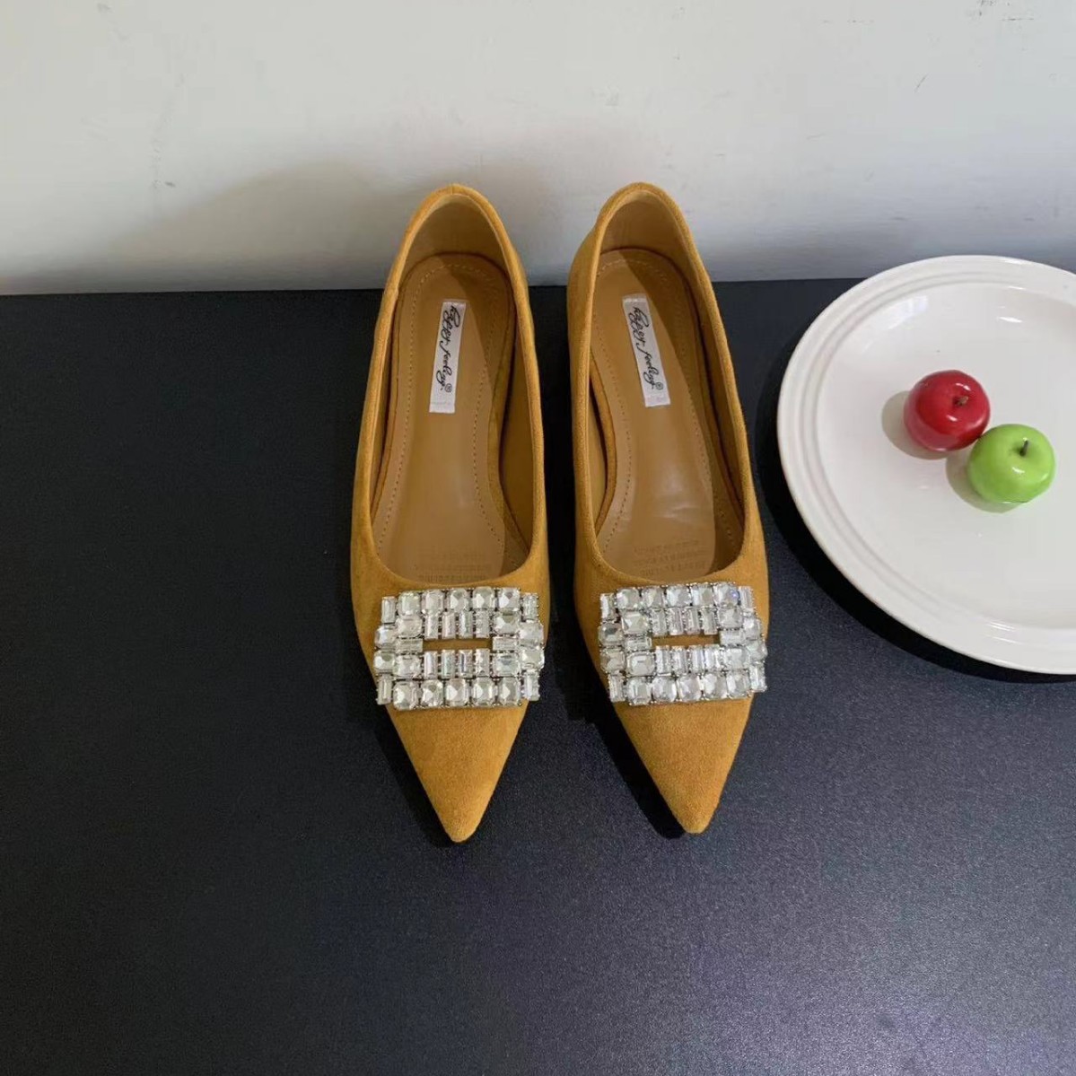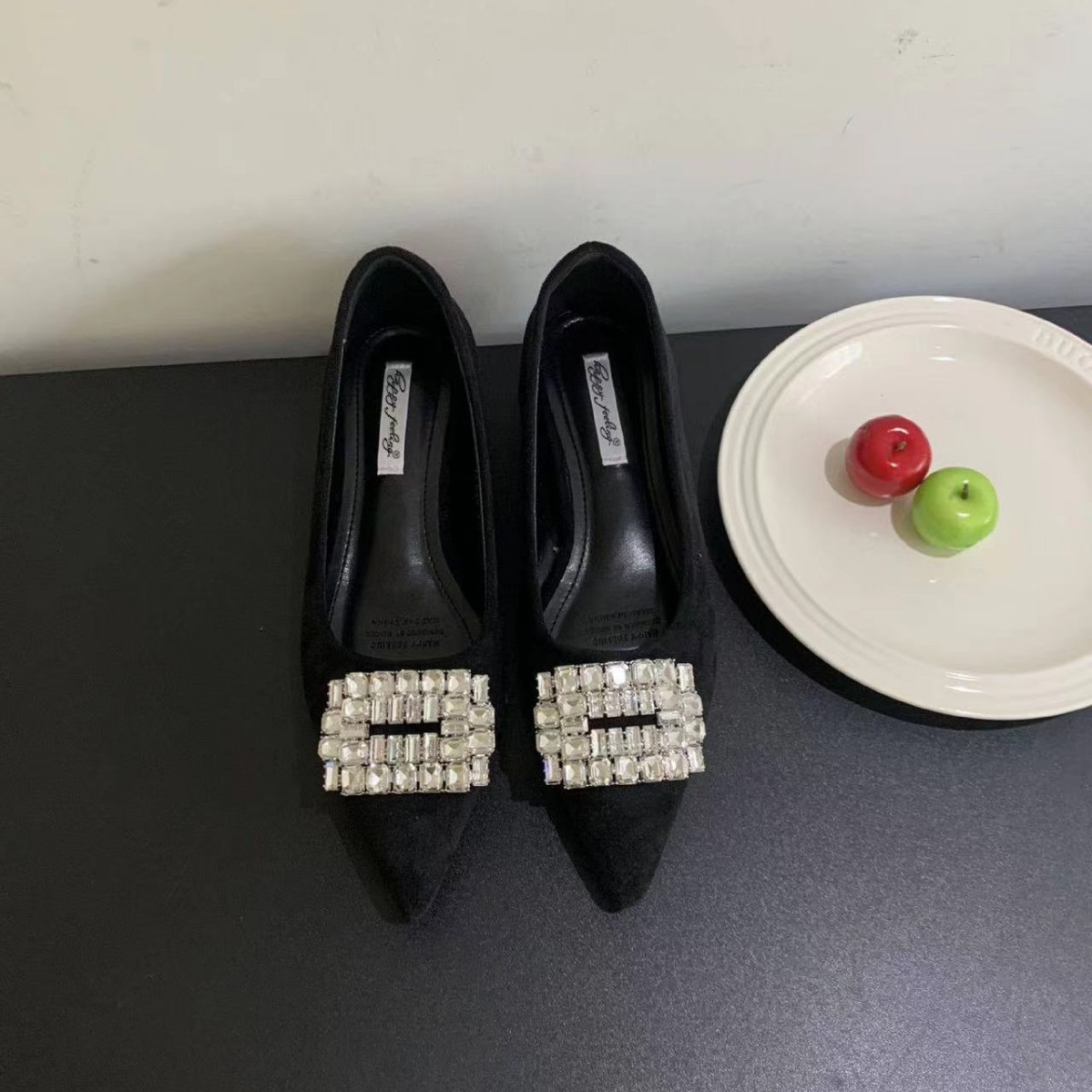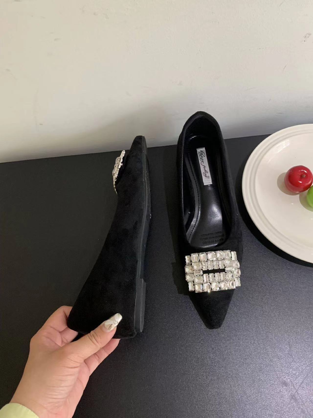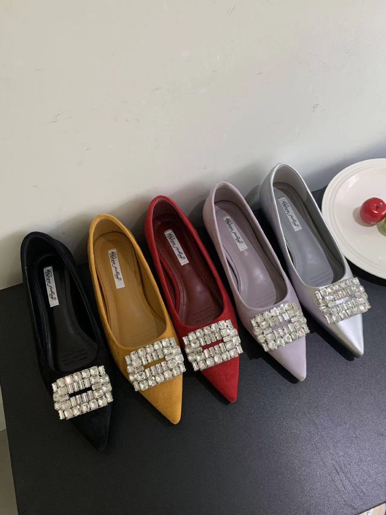 여성을 위한 높이가 증가된 라인스톤 싱글 슈즈 2025 봄 신상 슈즈 스커트와 함께 입을 수 있는 레이어드 스웨이드 포인티드 프렌치 슈즈