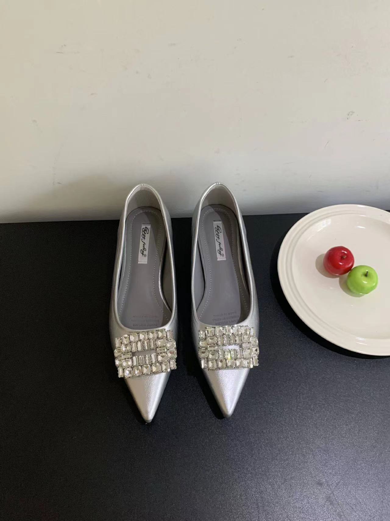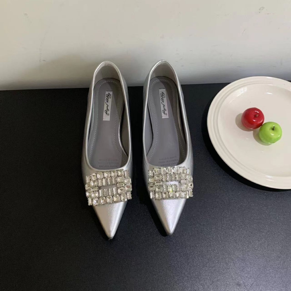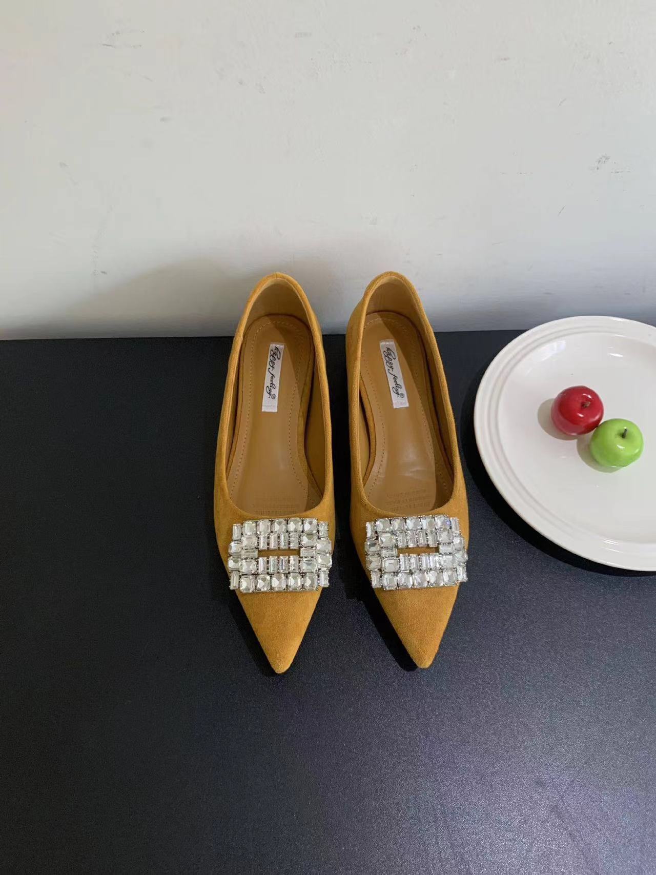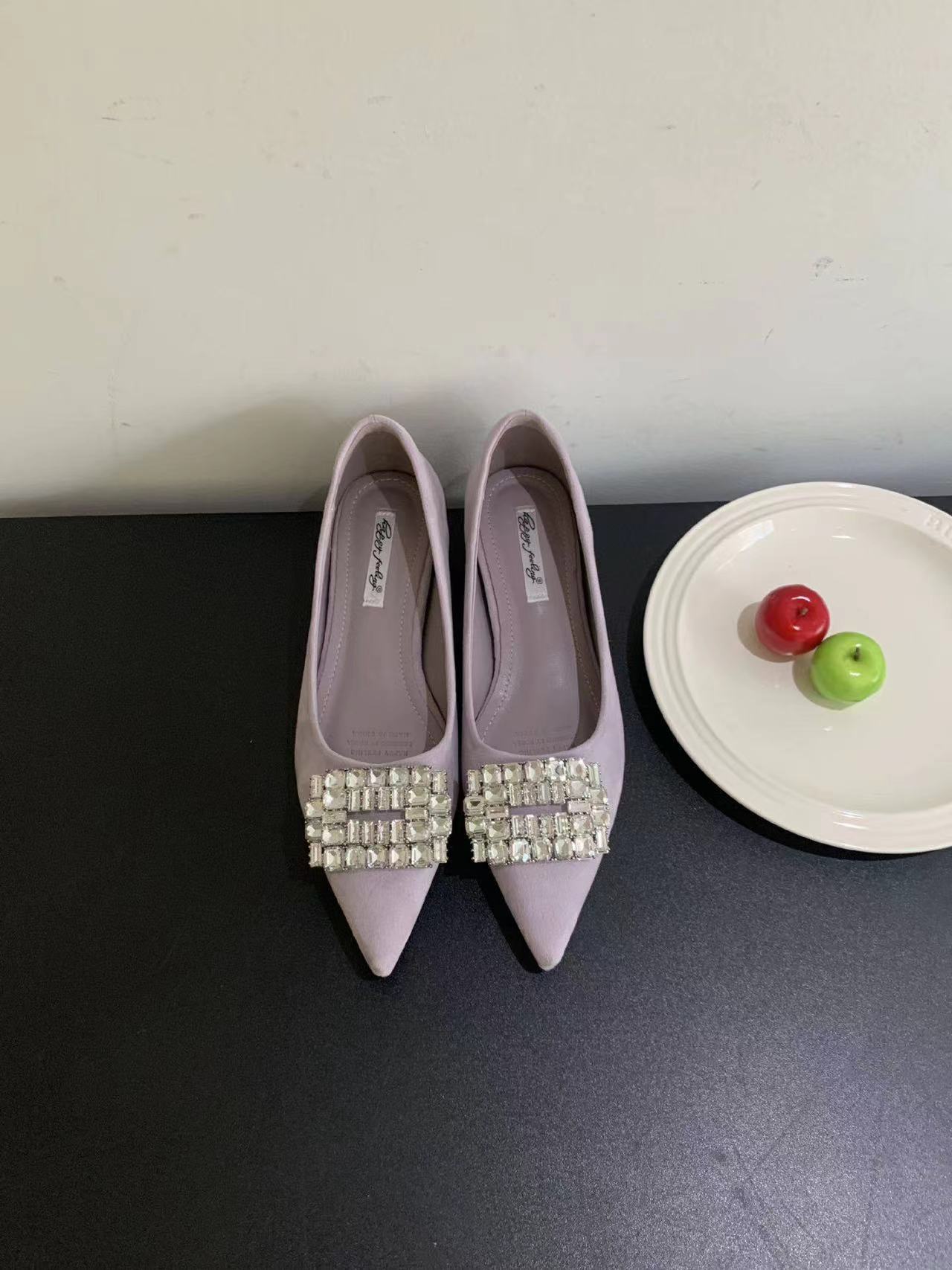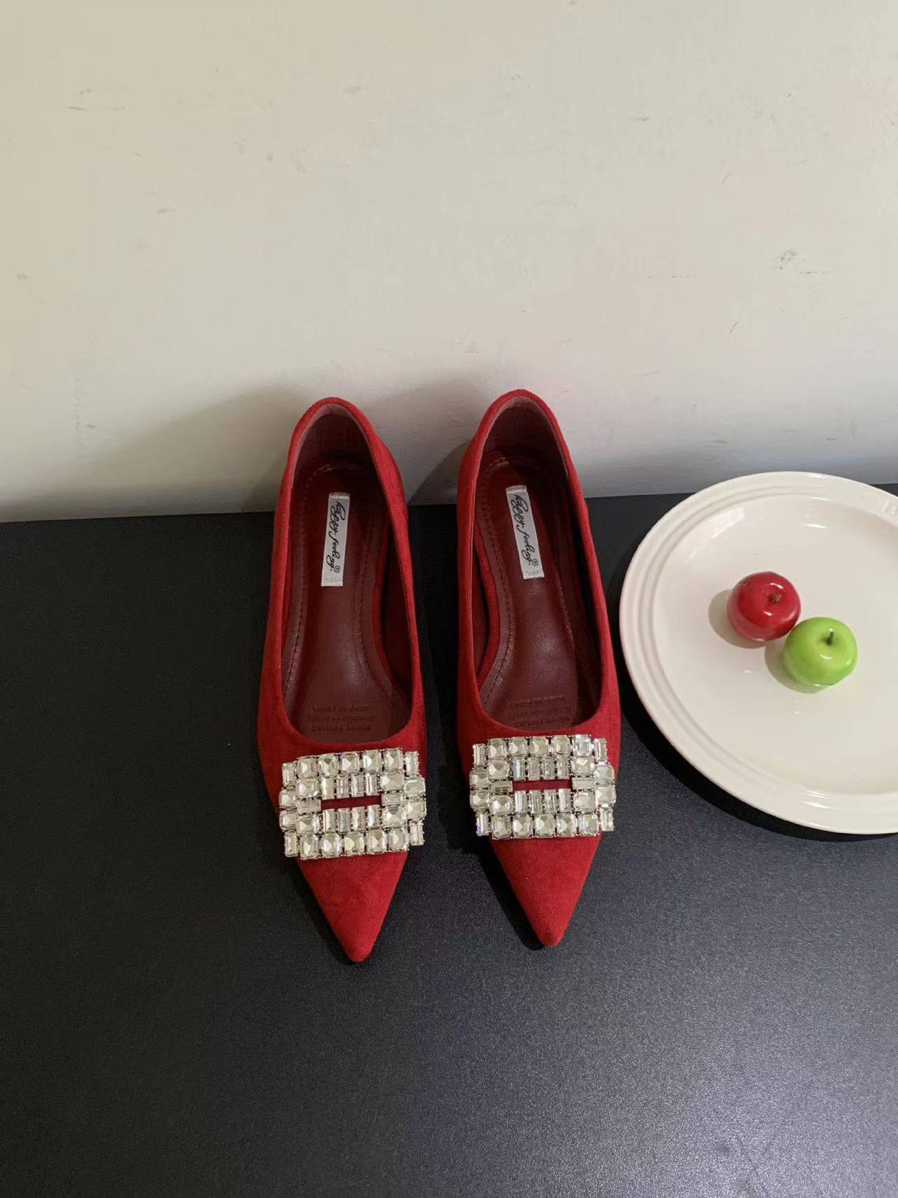 여성을 위한 높이가 증가된 라인스톤 싱글 슈즈 2025 봄 신상 슈즈 스커트와 함께 입을 수 있는 레이어드 스웨이드 포인티드 프렌치 슈즈