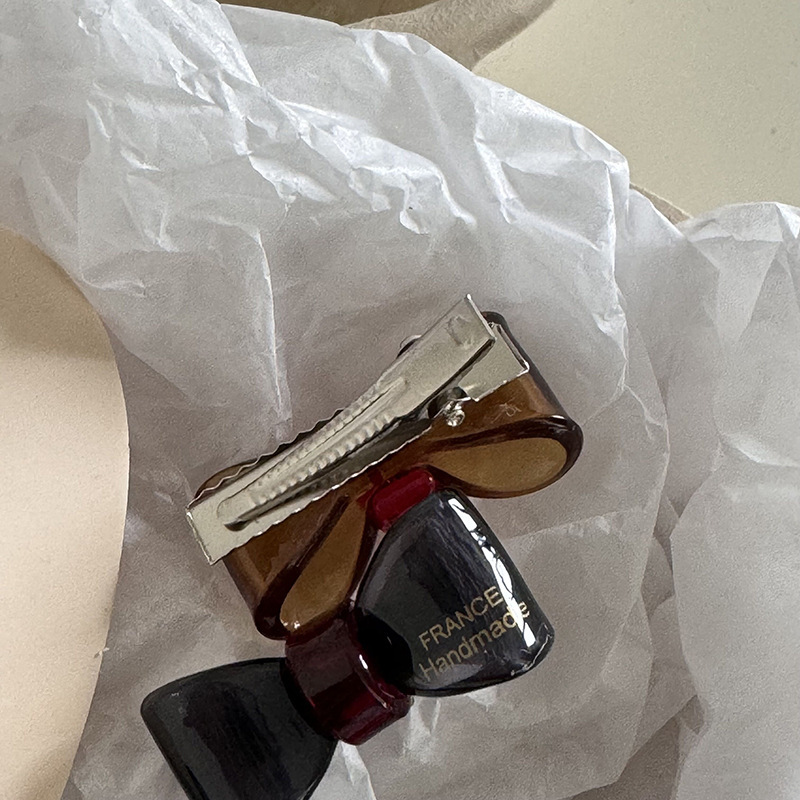 • 아세테이트 리본 작은 머리핀 라이트 커피