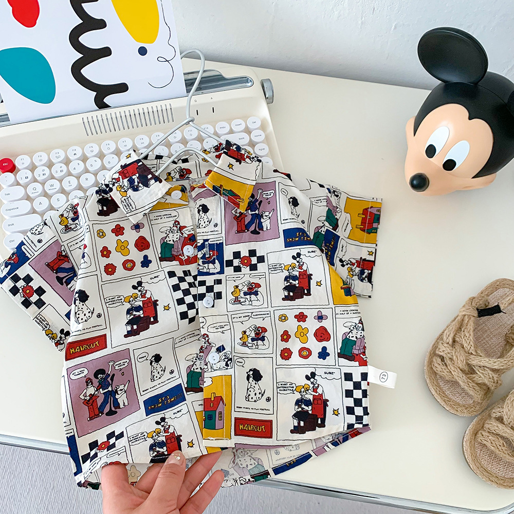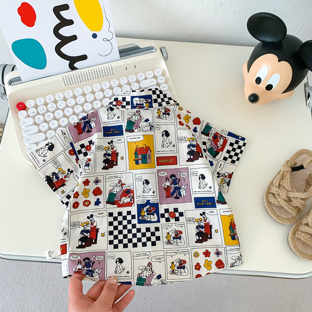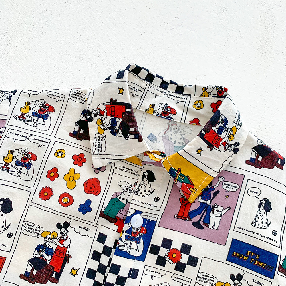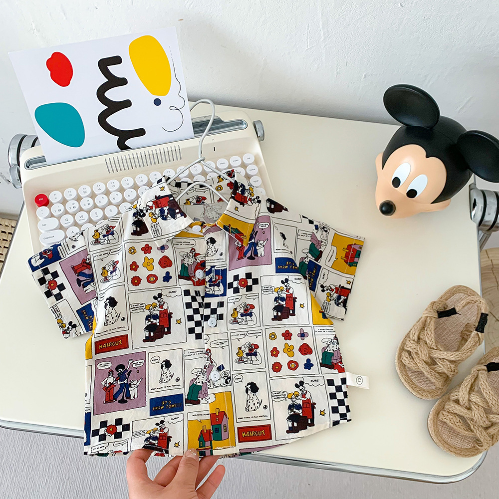 아동용 반팔 셔츠 여름 신작 소년 셔츠 한국식 스탠드 칼라 만화 베이비 스트리트 핸섬 탑 트렌디 의류스토어 가기