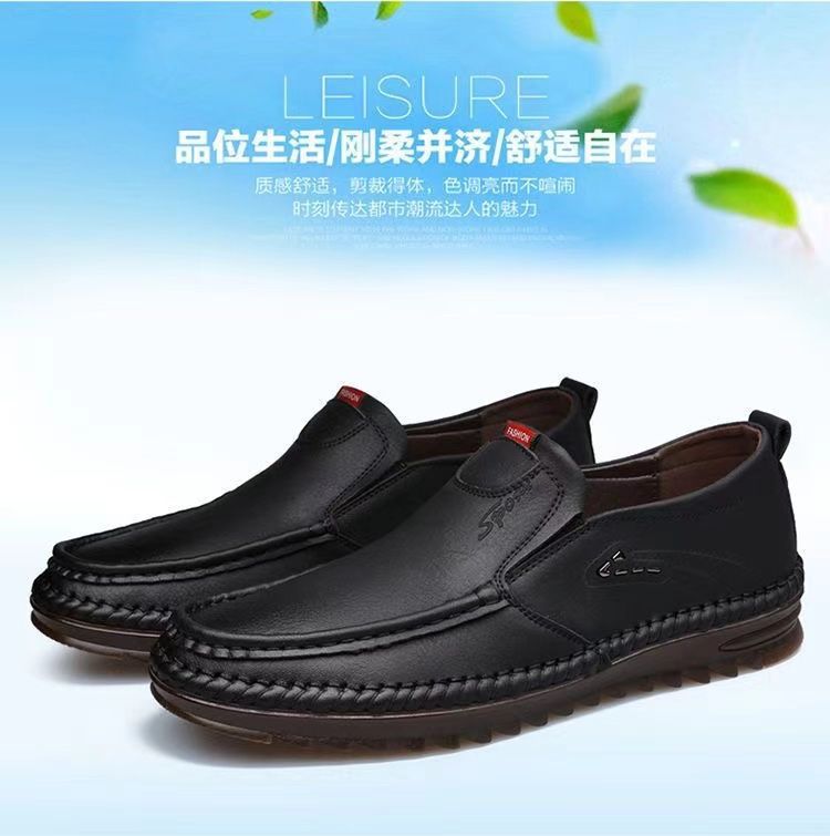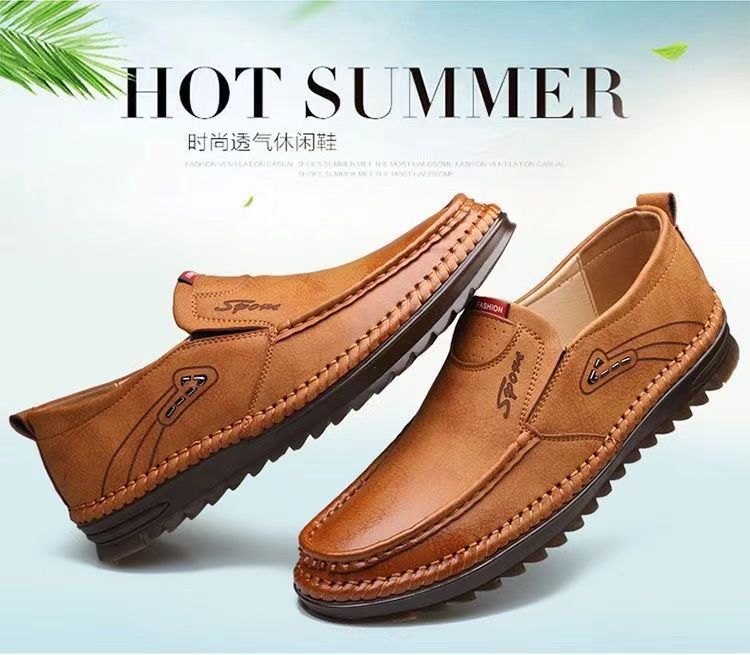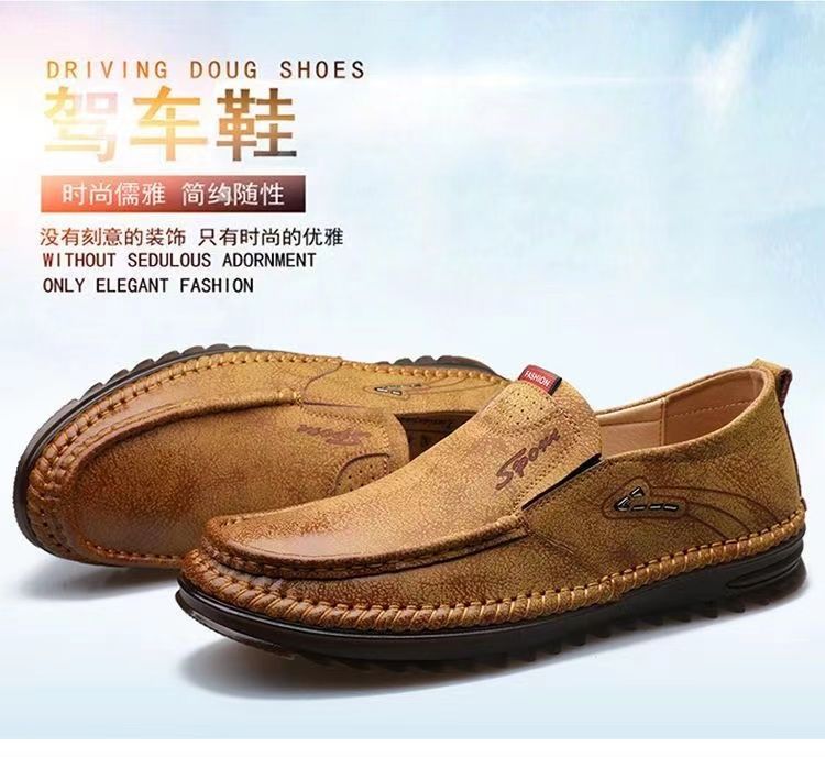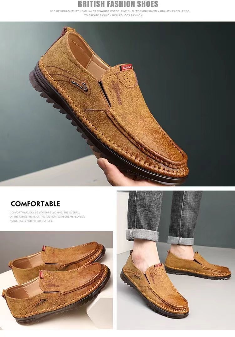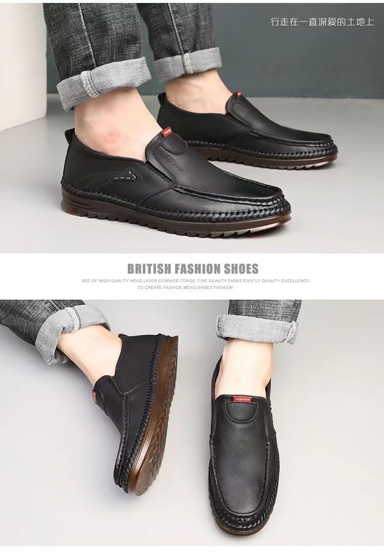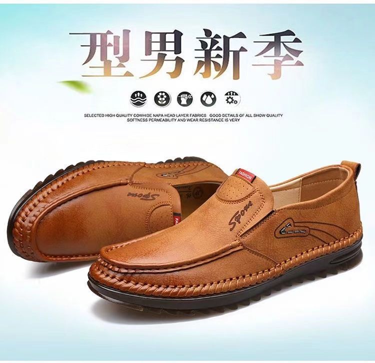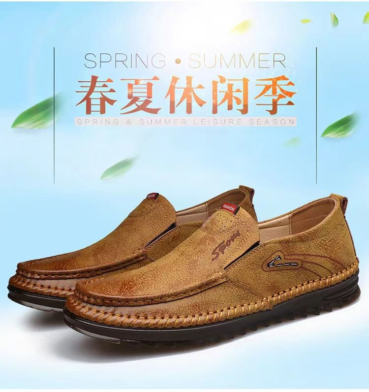 2025 가죽 신발 남성 새로운 한국 스타일 남성 캐주얼 신발 미끄럼 방지 운전 신발 부드러운 가죽 부드러운 바닥 비니 신발 드롭 배송