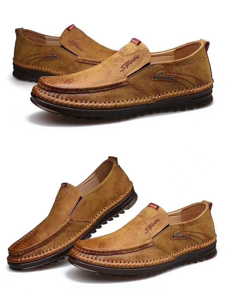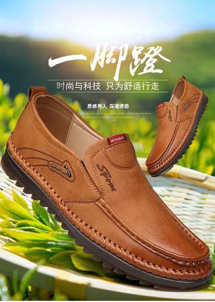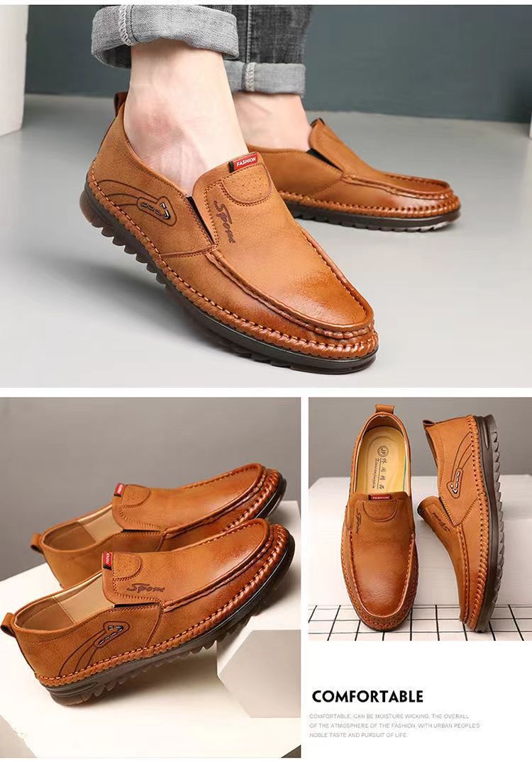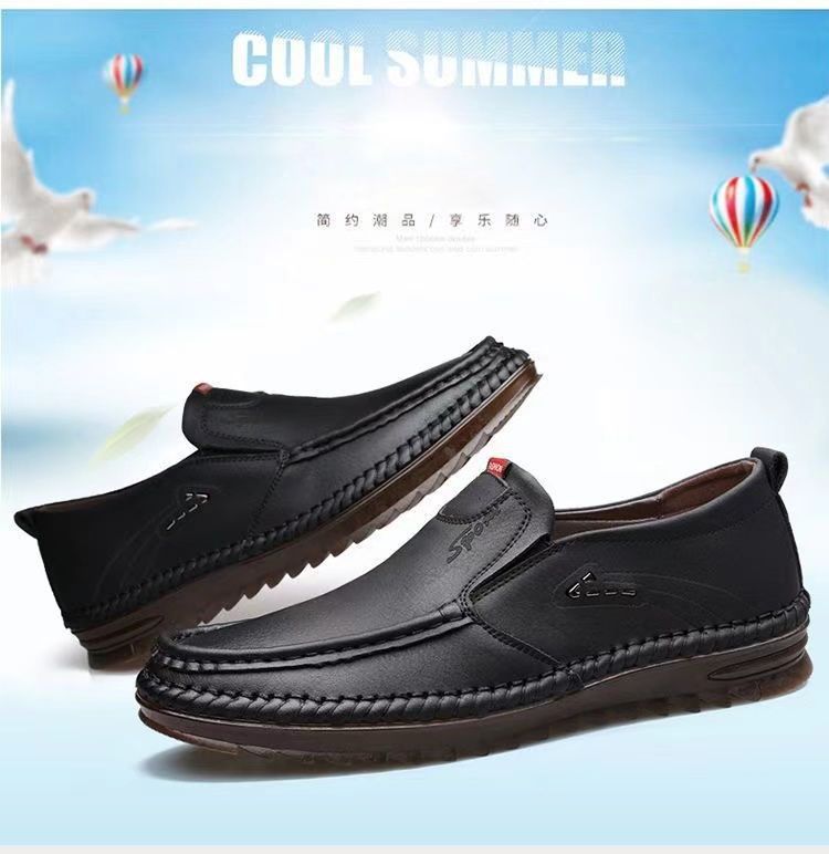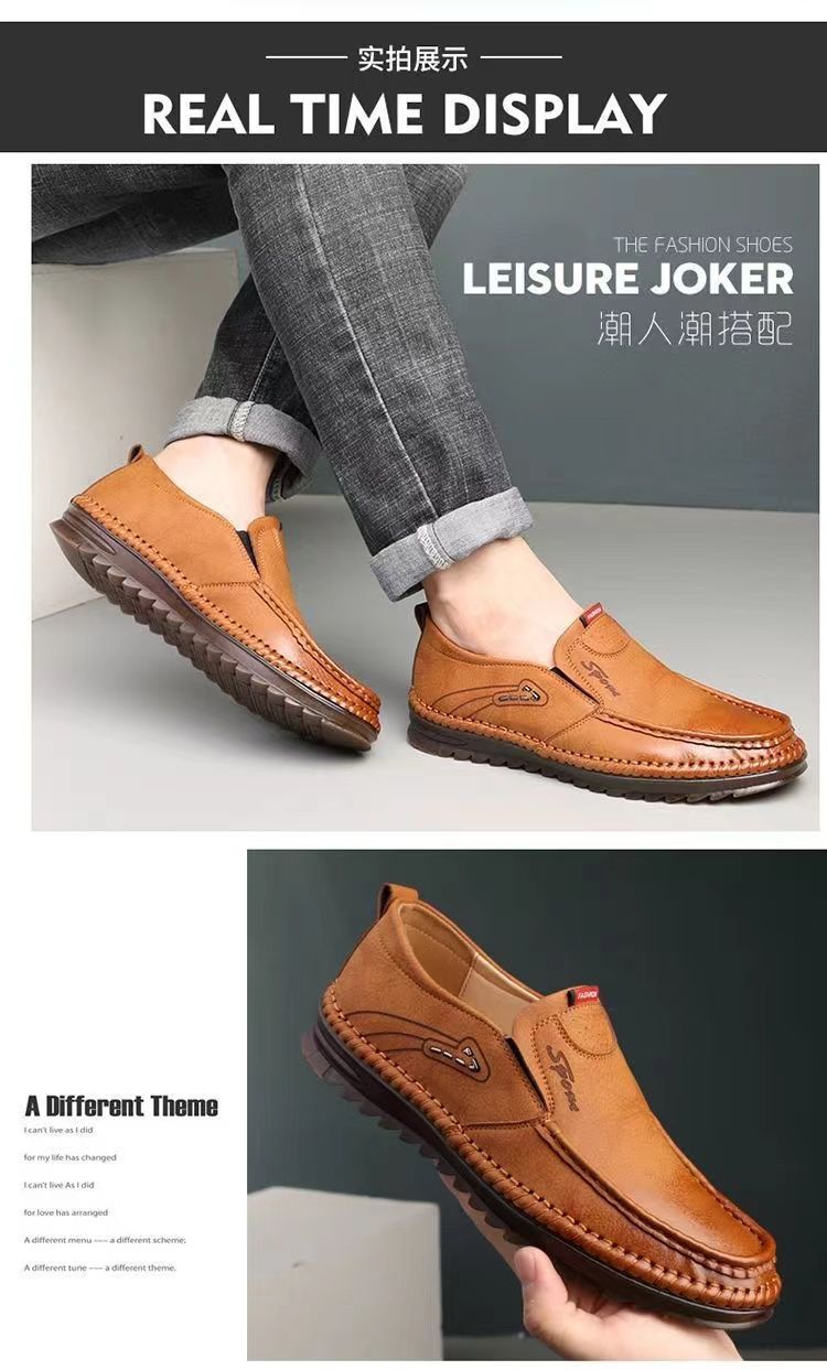 2025 가죽 신발 남성 새로운 한국 스타일 남성 캐주얼 신발 미끄럼 방지 운전 신발 부드러운 가죽 부드러운 바닥 비니 신발 드롭 배송