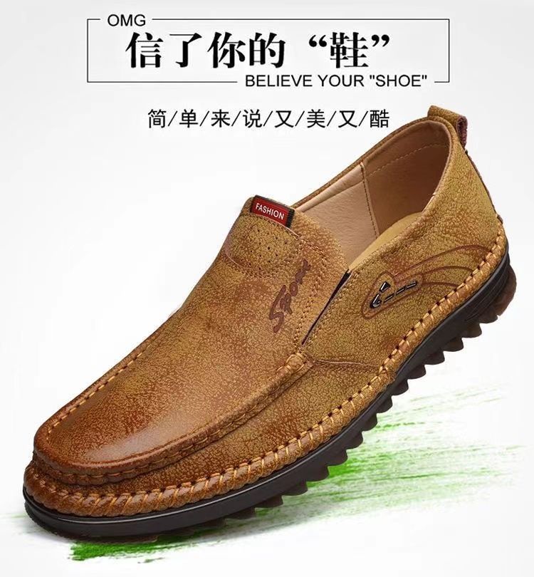 2025 가죽 신발 남성 새로운 한국 스타일 남성 캐주얼 신발 미끄럼 방지 운전 신발 부드러운 가죽 부드러운 바닥 비니 신발 드롭 배송스토어 가기