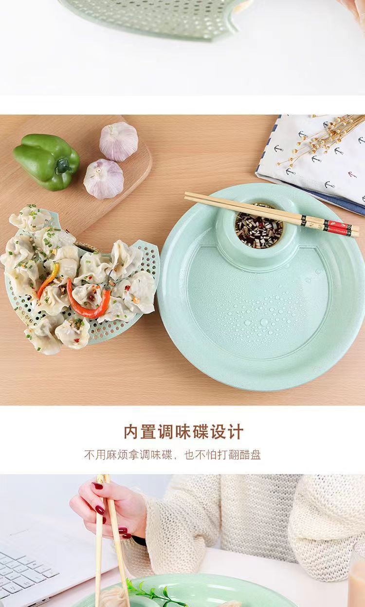 식초 접시가 있는 이중 만두 접시, 배수 접시, 저녁 식사 접시, 가정용 창의적인 플라스틱 접시 접시, 만두 접시스토어 가기