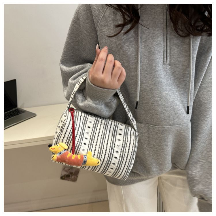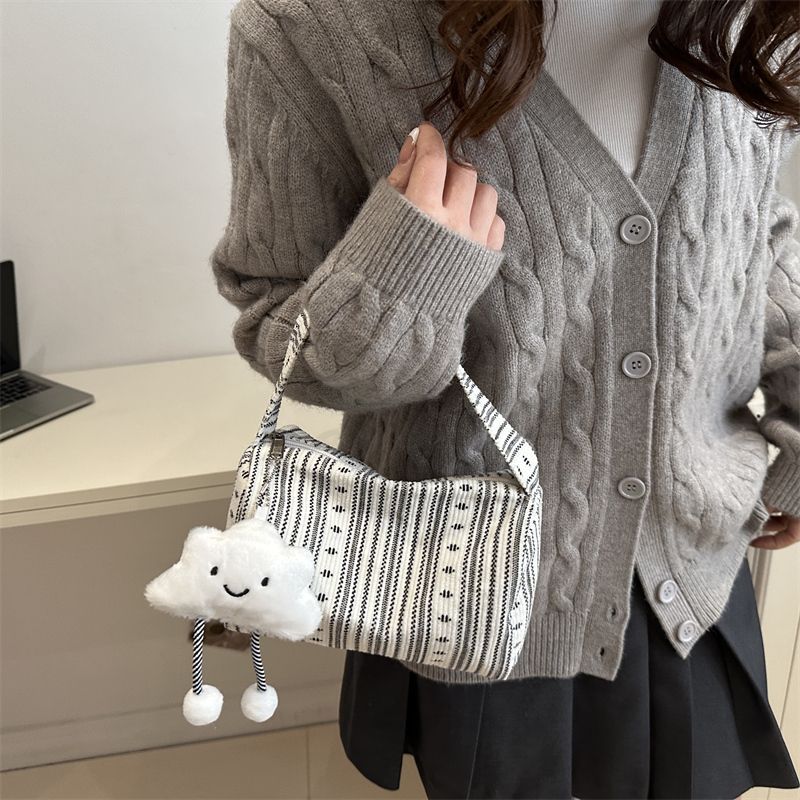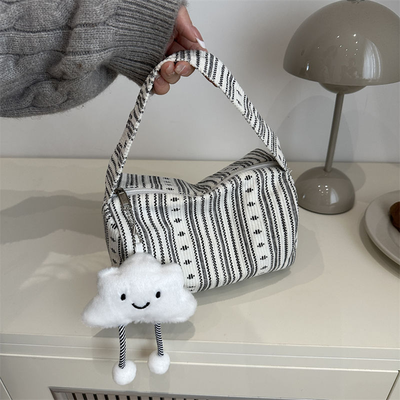 • 흑백 줄무늬 코듀로이 화장품 가방
