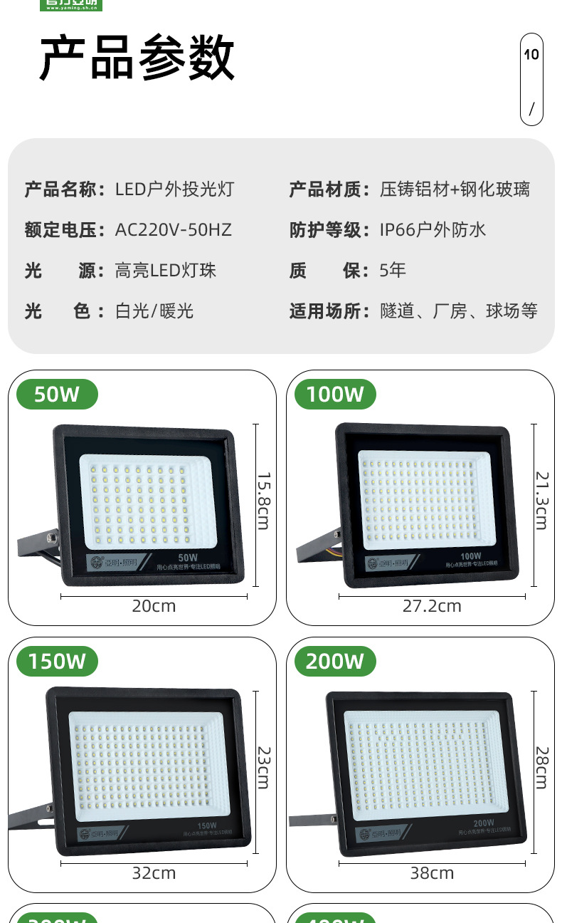 Yaming LED 투광 조명 스포트라이트 야외 방수 강한 빛 슈퍼 밝은 건설 현장 공장 빔 야외 조명