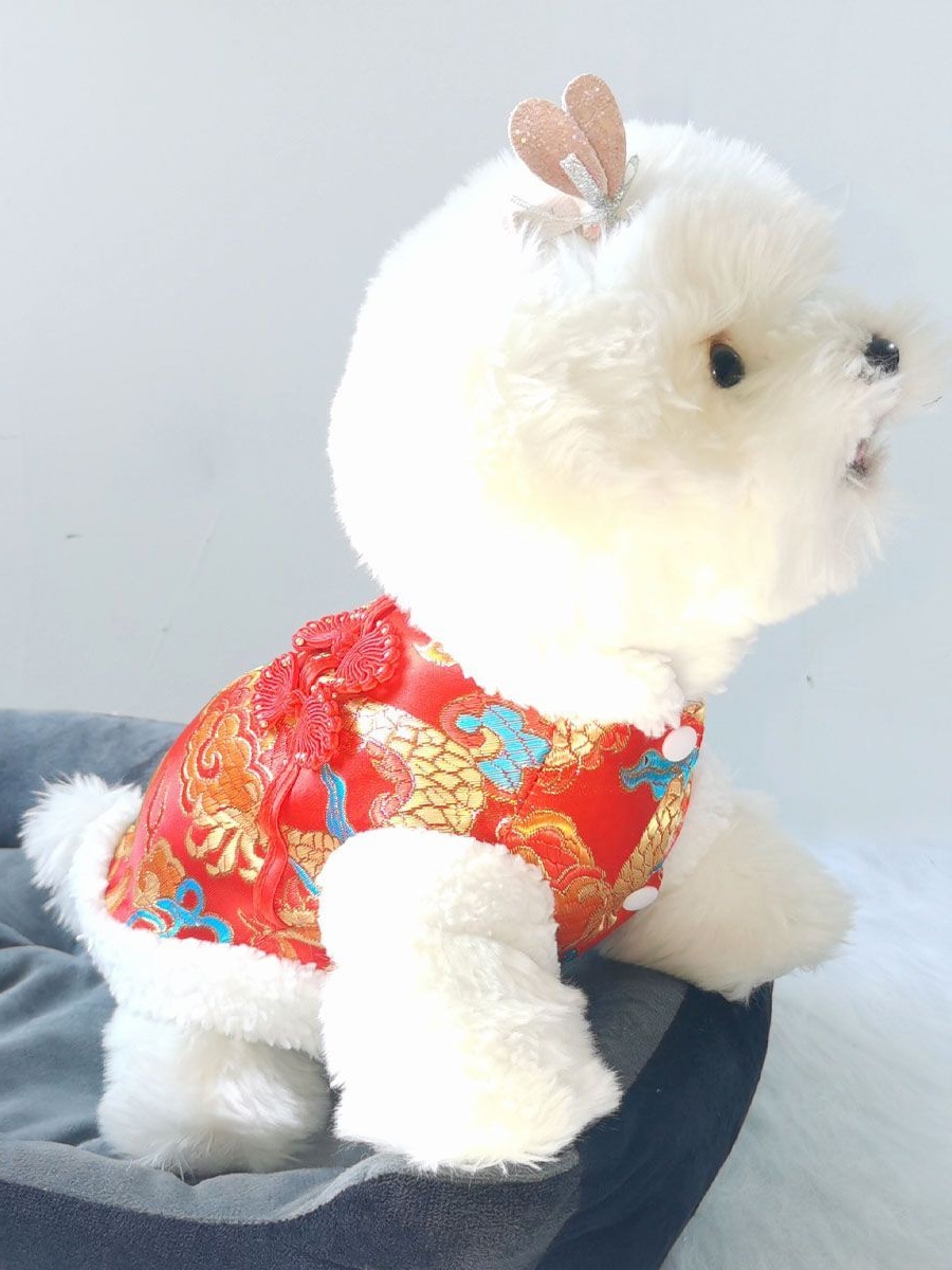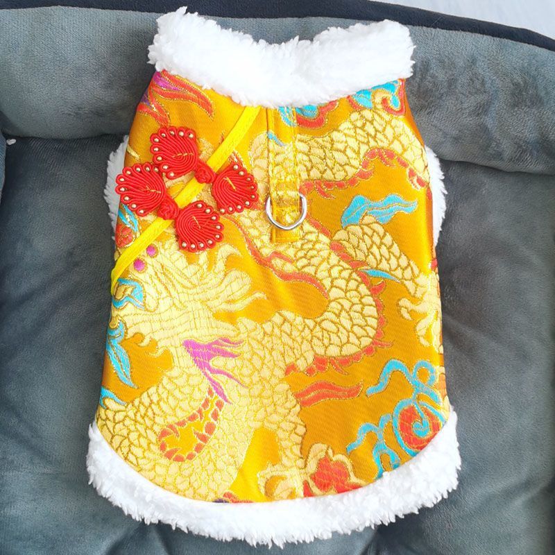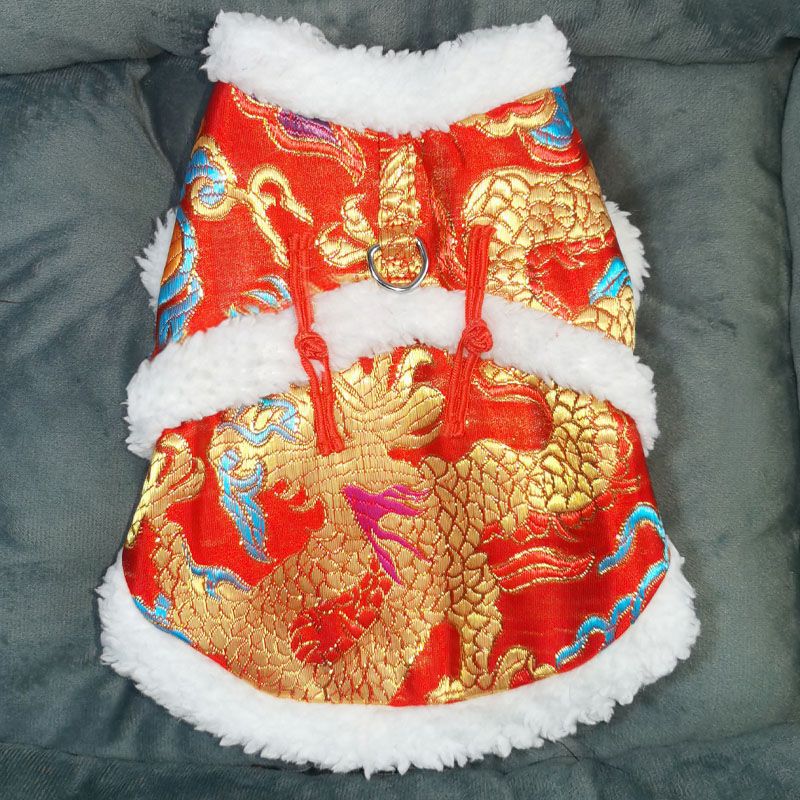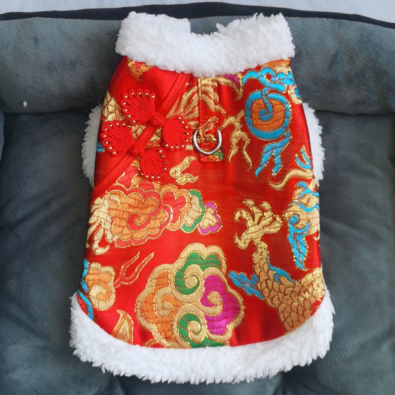 개와 고양이 옷 2024 신년 당나라 정장 따뜻한 면 코트와 벨벳 작은 개 견인 버클 테디 래그돌 고양이스토어 가기