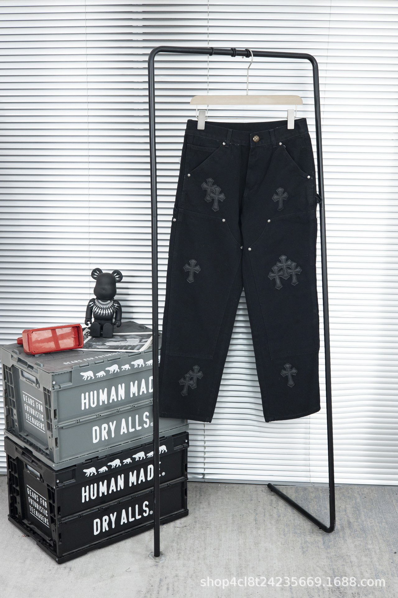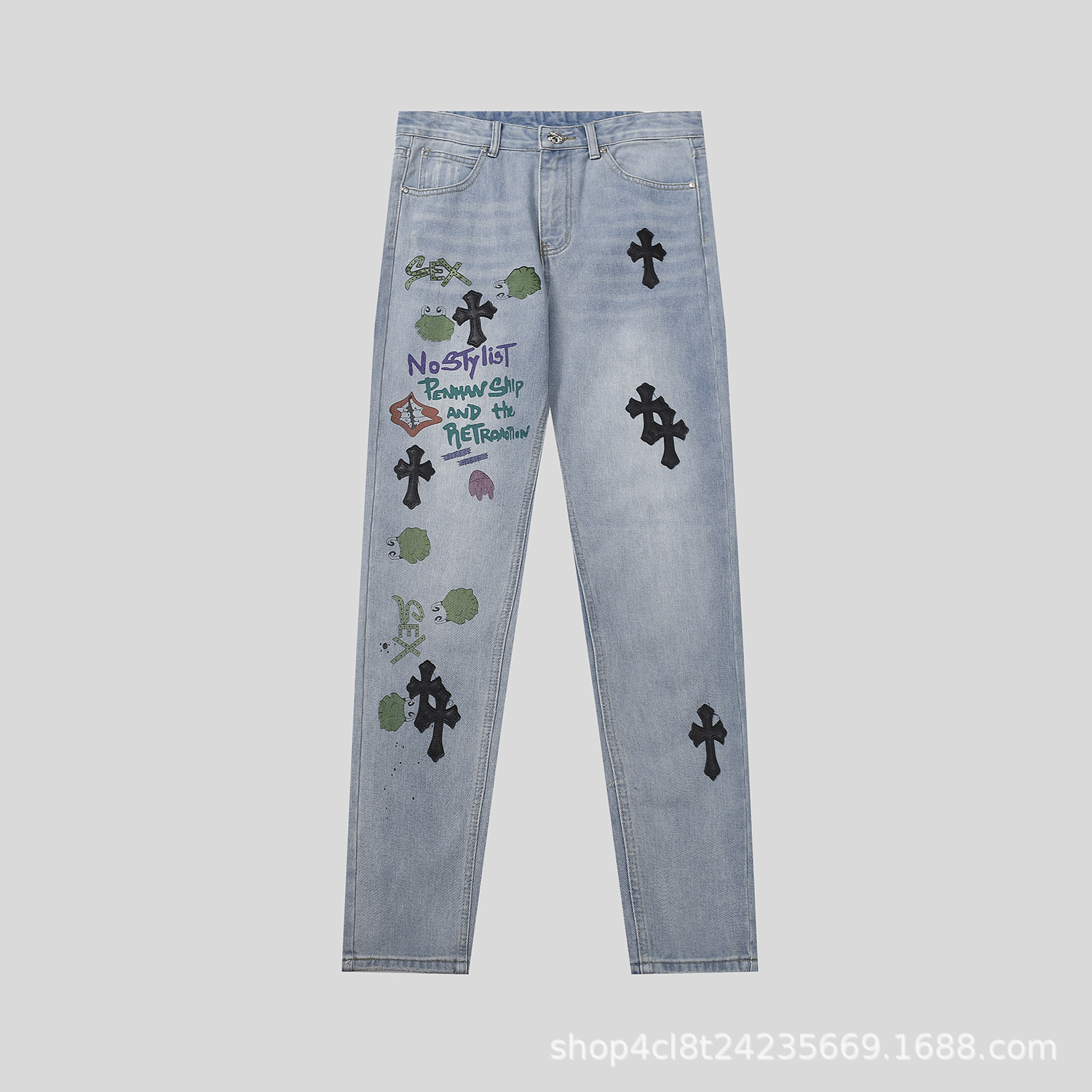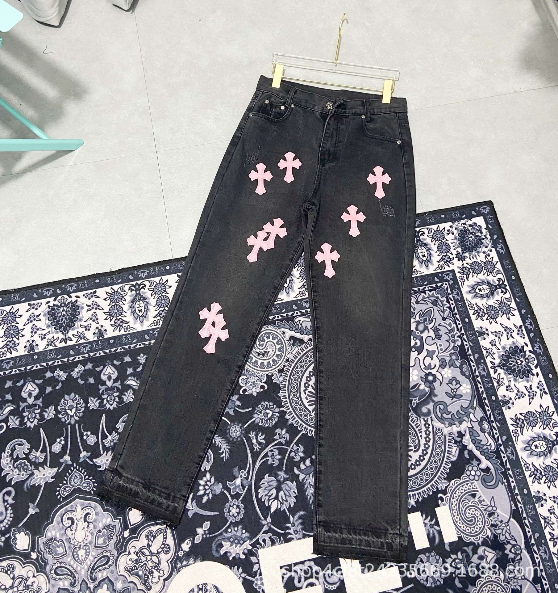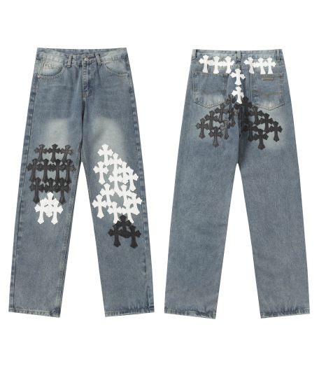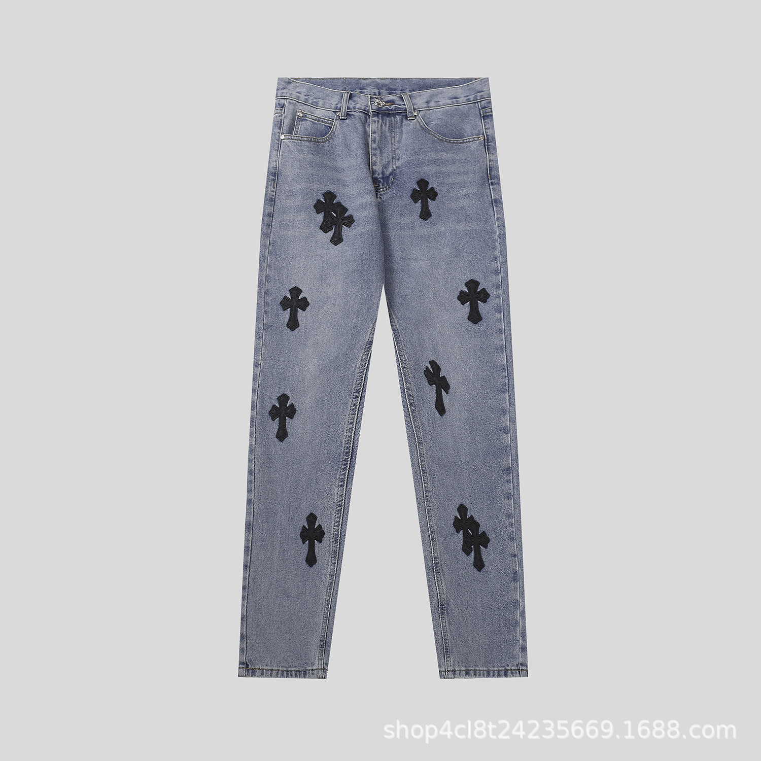 24 CH 크로스 가죽 자수 워시 청바지 커플 루즈 데님 도매 배송의 올바른 버전스토어 가기