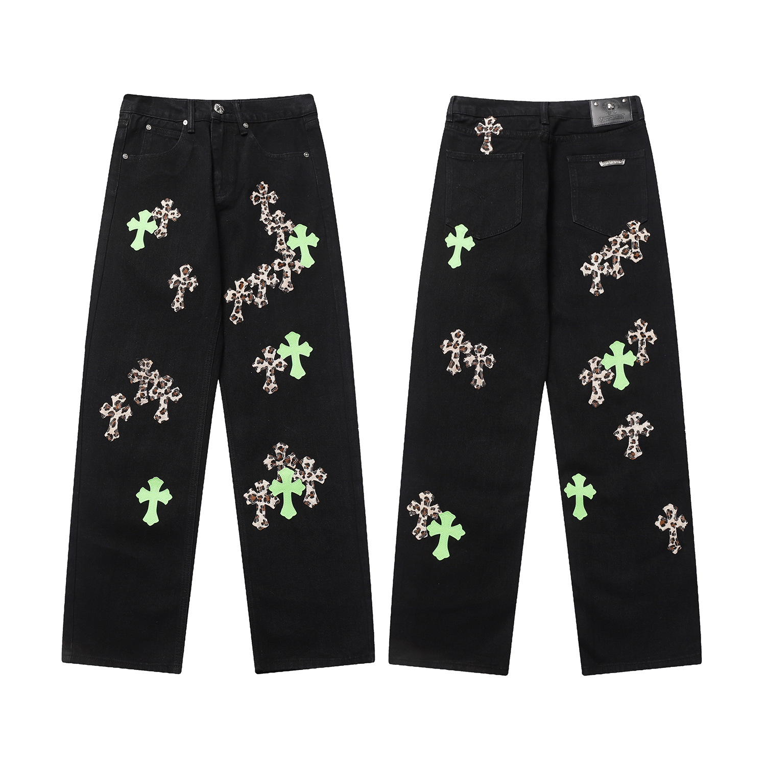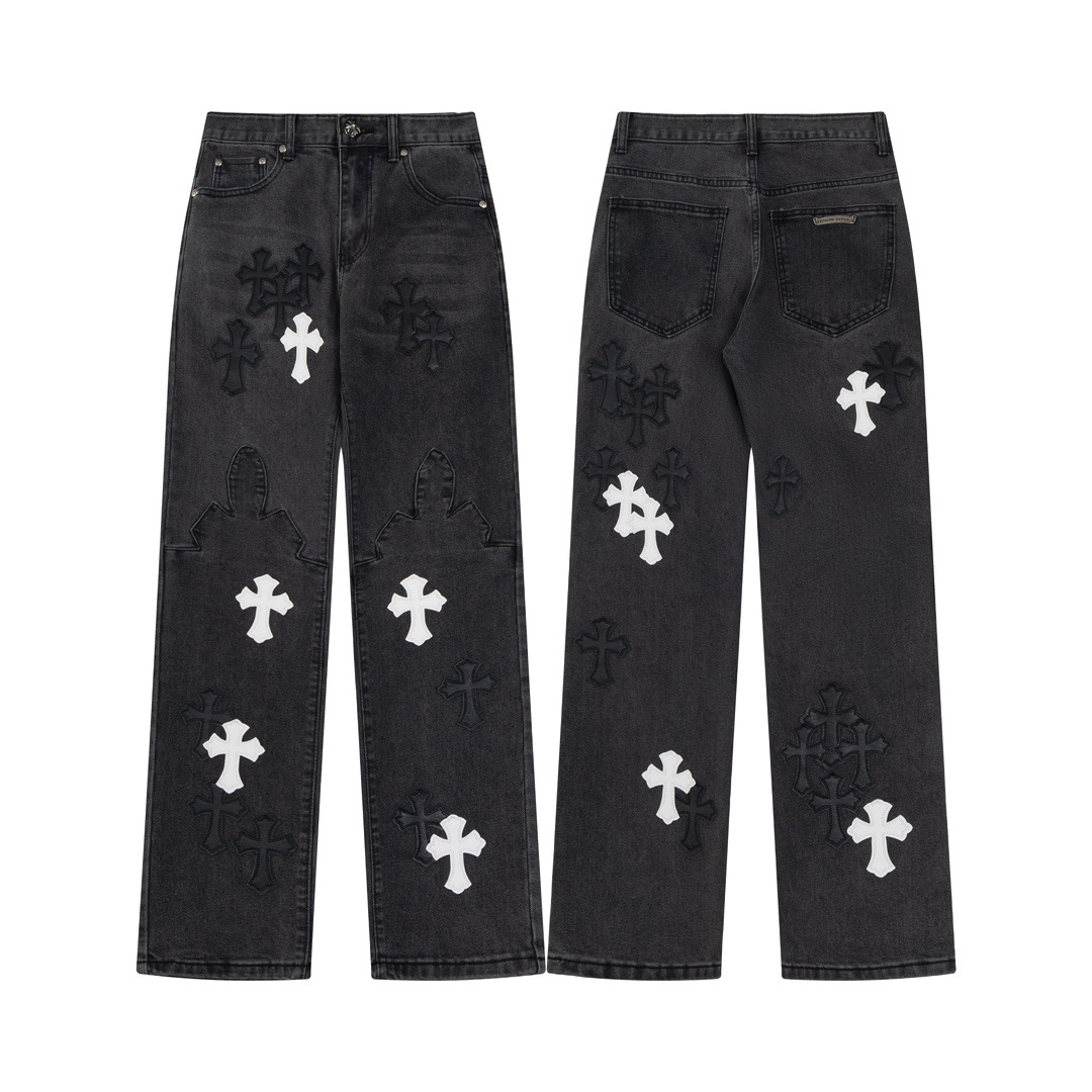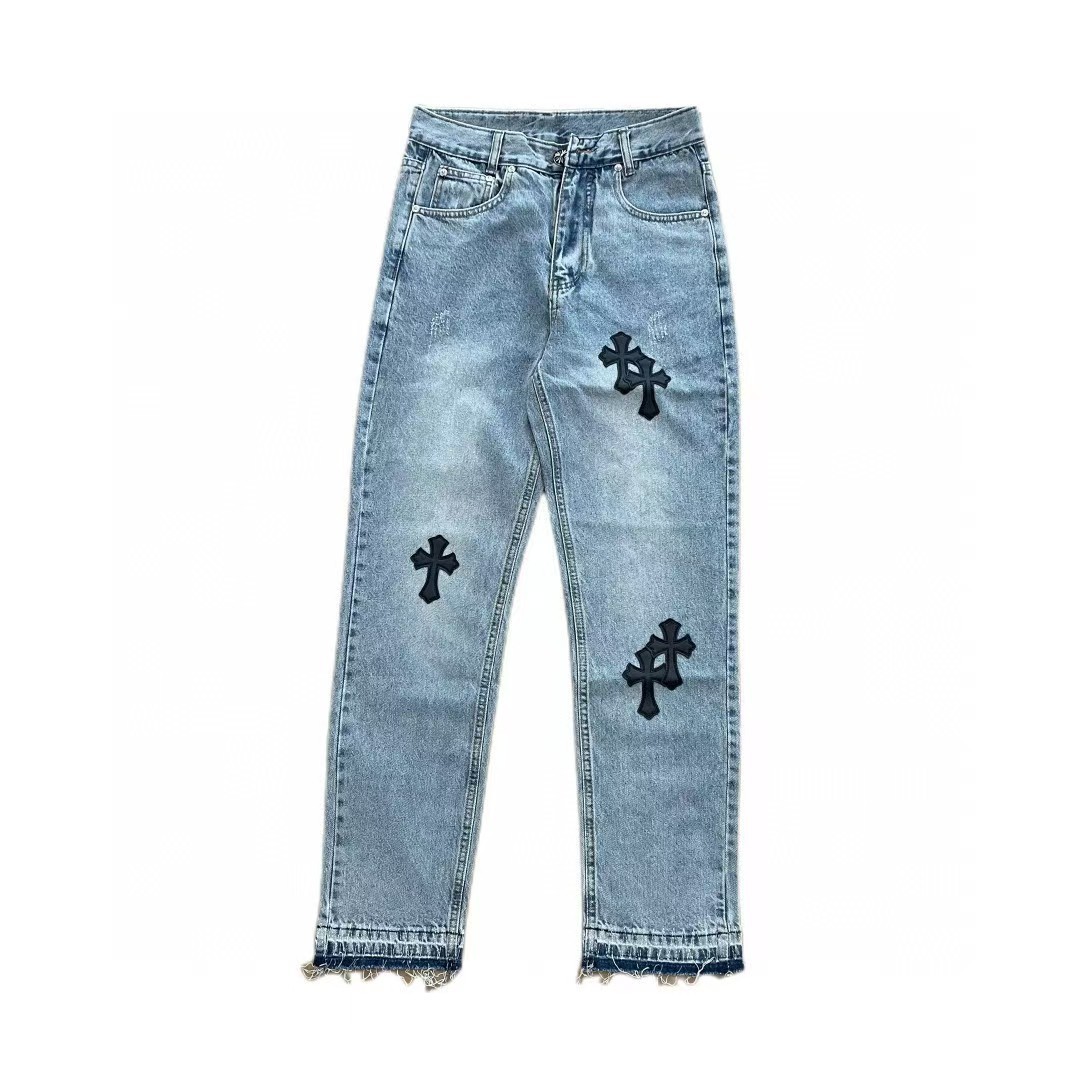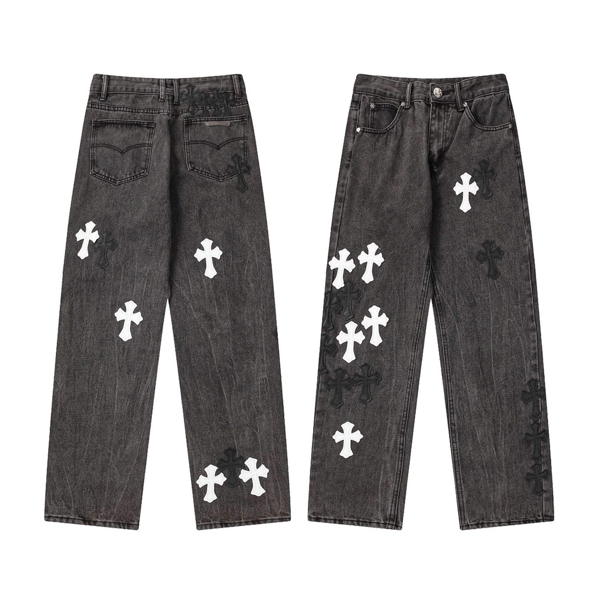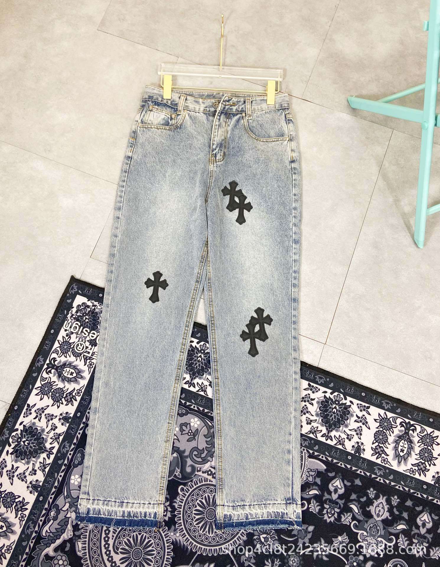 24 CH 크로스 가죽 자수 워시 청바지 커플 루즈 데님 도매 배송의 올바른 버전