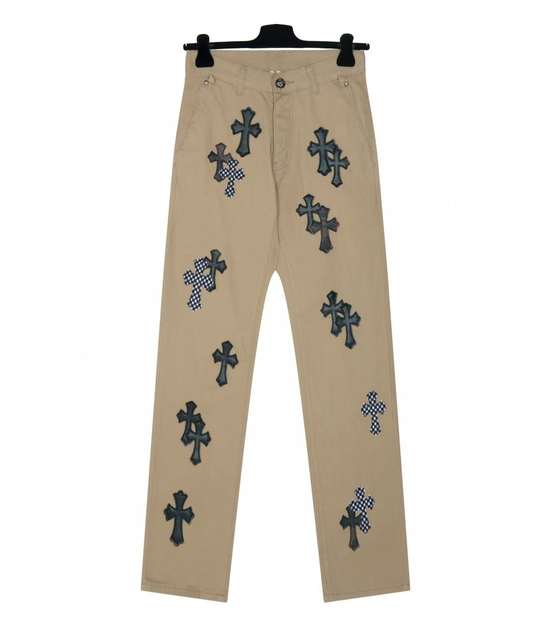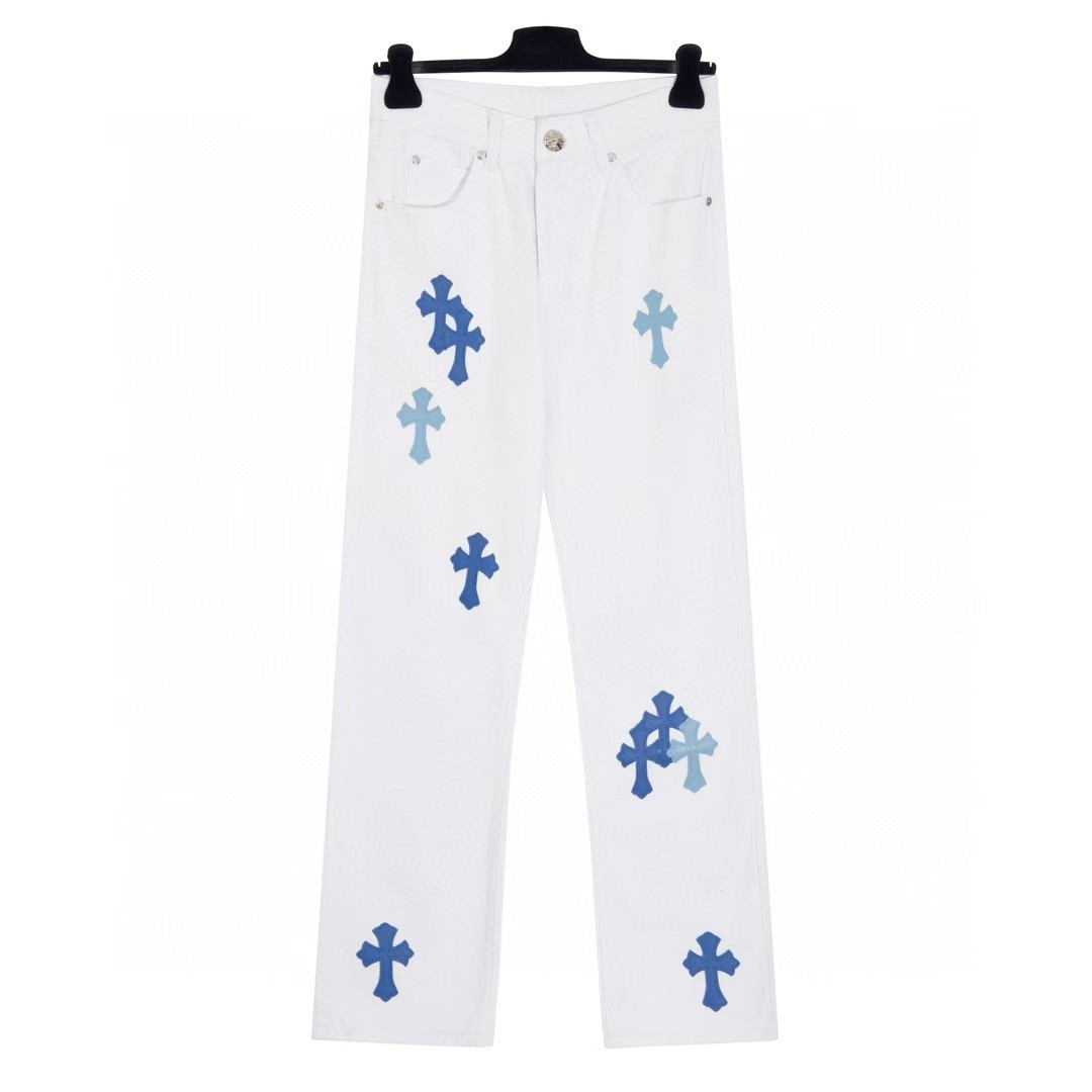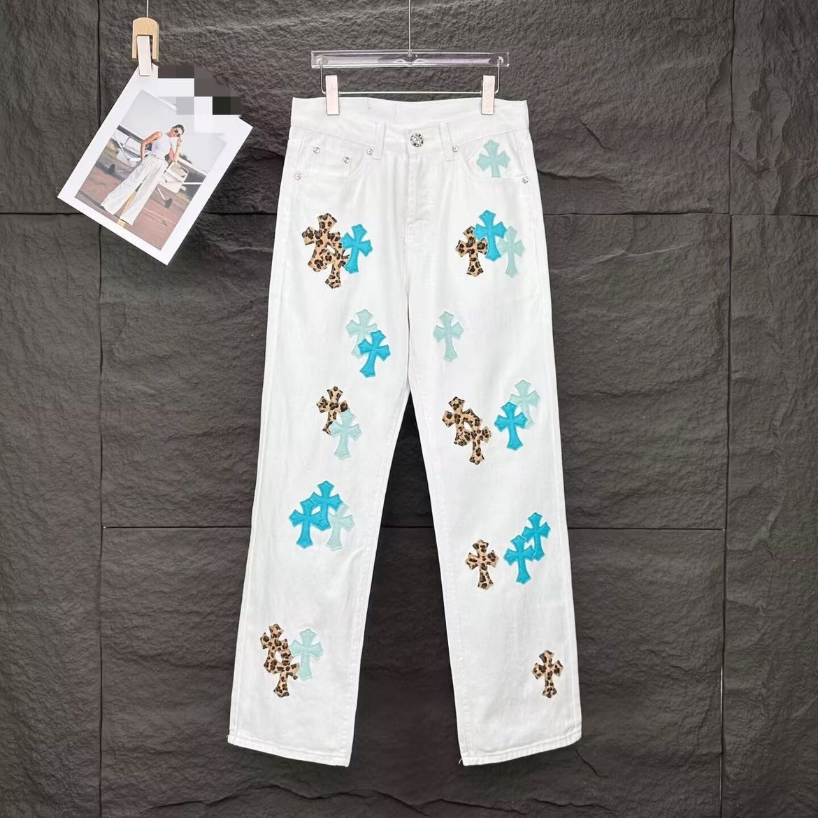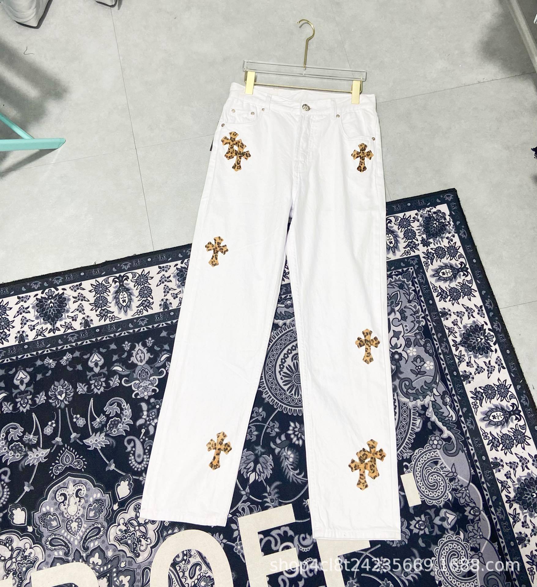 24 CH 크로스 가죽 자수 워시 청바지 커플 루즈 데님 도매 배송의 올바른 버전