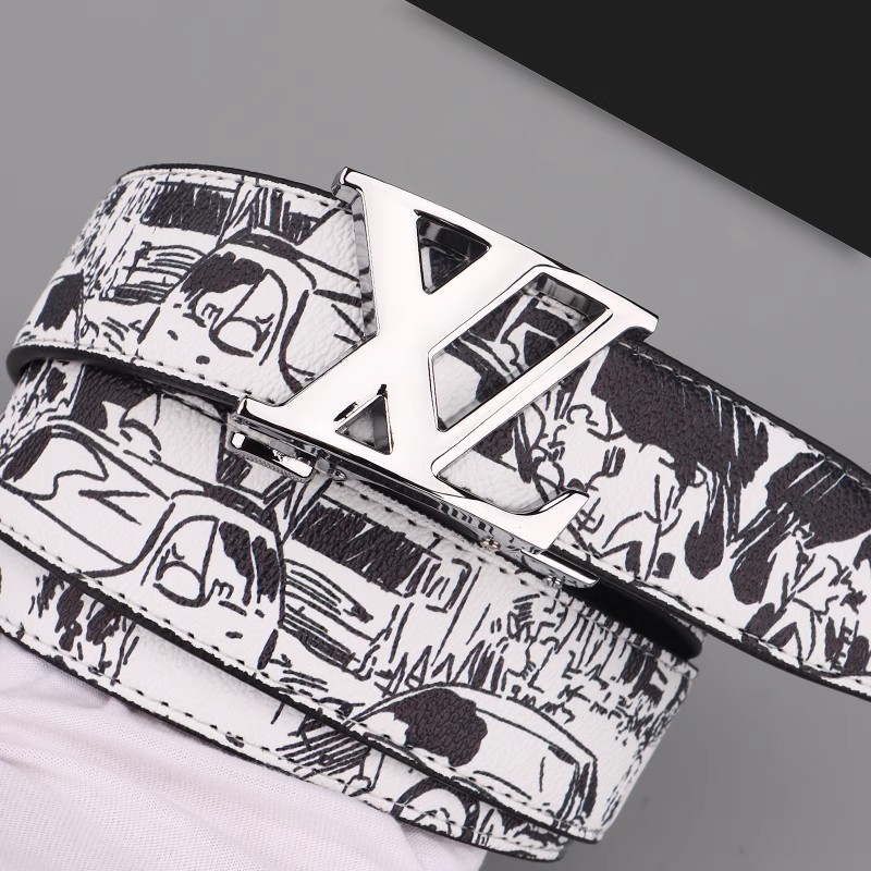 새로운 트렌디 남성 벨트 정품 가죽 다목적 문자 낙서 자동 버클 학생 벨트 청바지 트렌드 인터넷 연예인