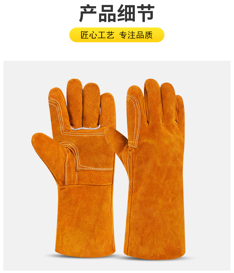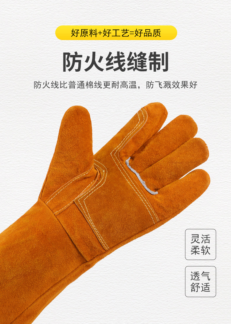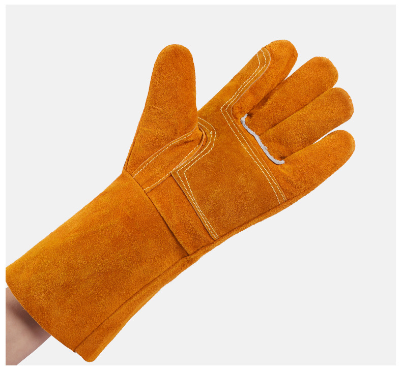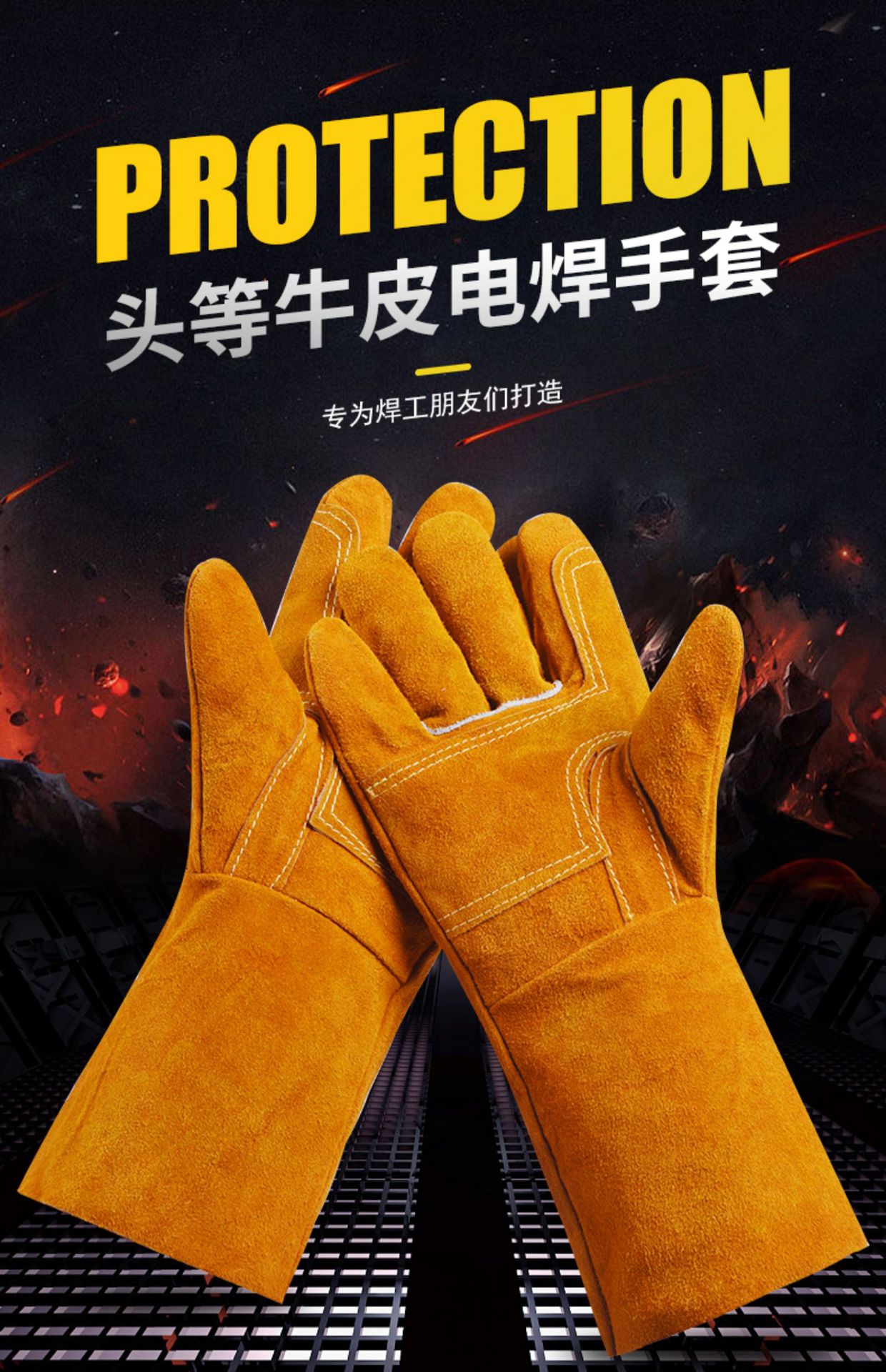 용접 장갑, 이음매 없는 내마모성, 화상 방지 및 고온 방지, 용접공을 위한 특수 두꺼운 소가죽 노동 보호, 부드럽고 보호력이 뛰어남스토어 가기