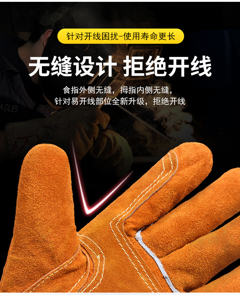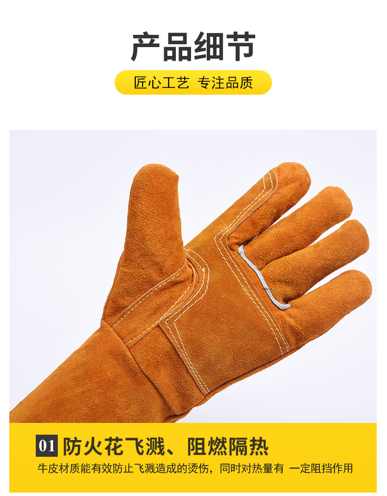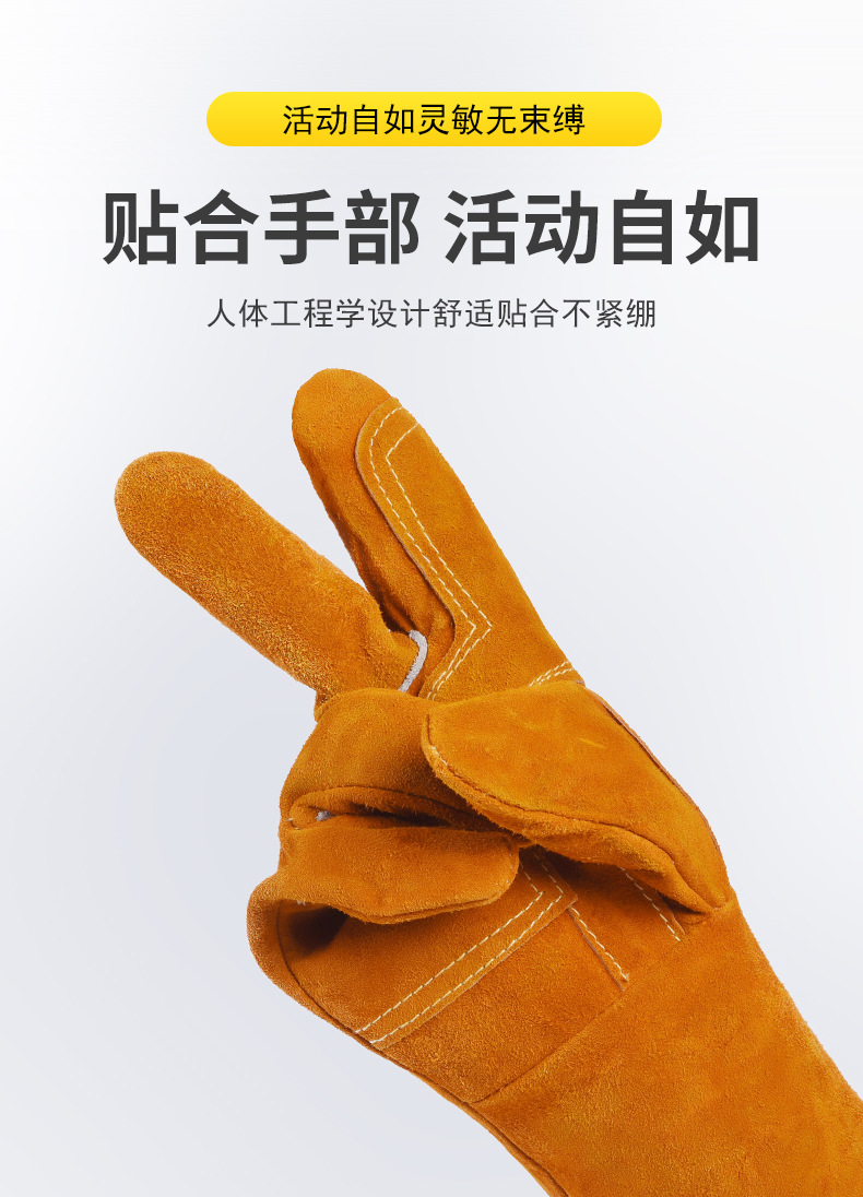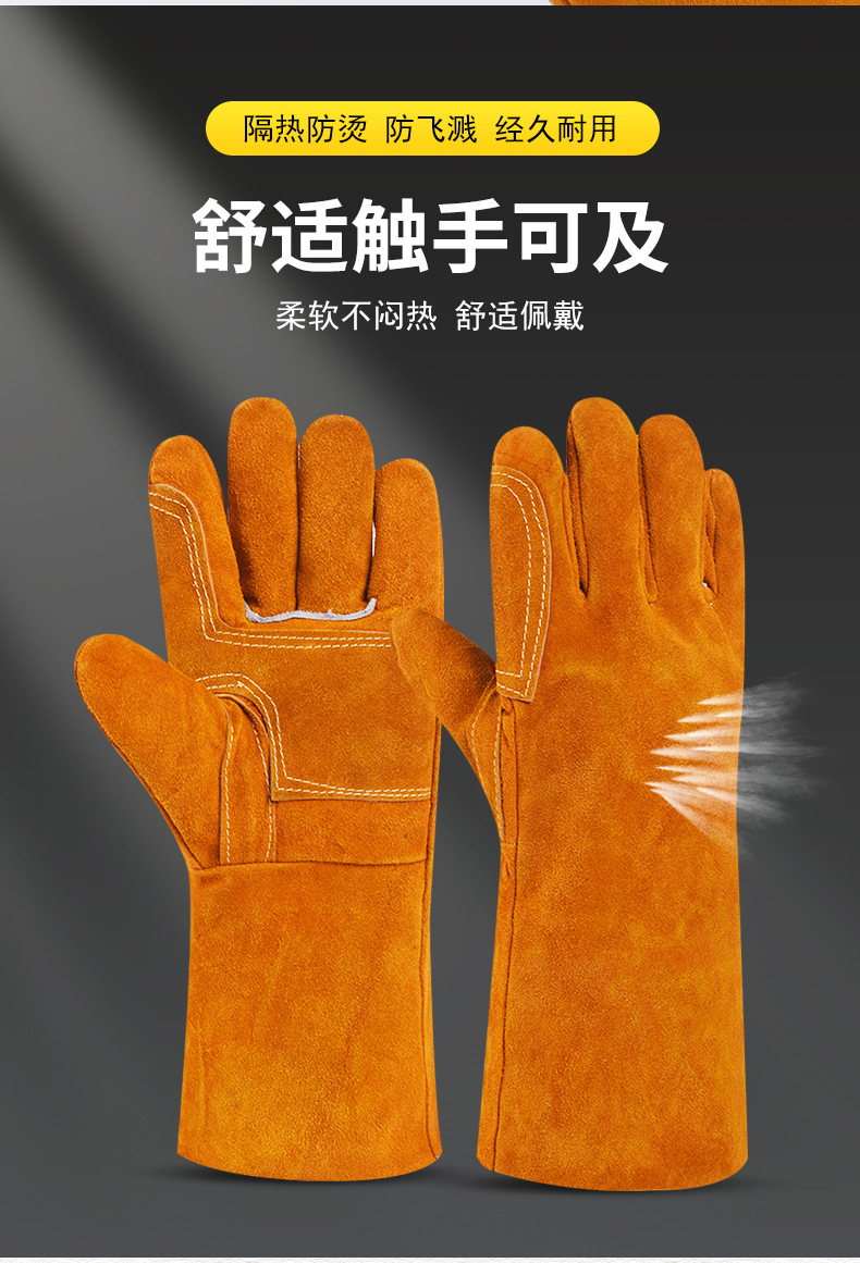 용접 장갑, 이음매 없는 내마모성, 화상 방지 및 고온 방지, 용접공을 위한 특수 두꺼운 소가죽 노동 보호, 부드럽고 보호력이 뛰어남스토어 가기