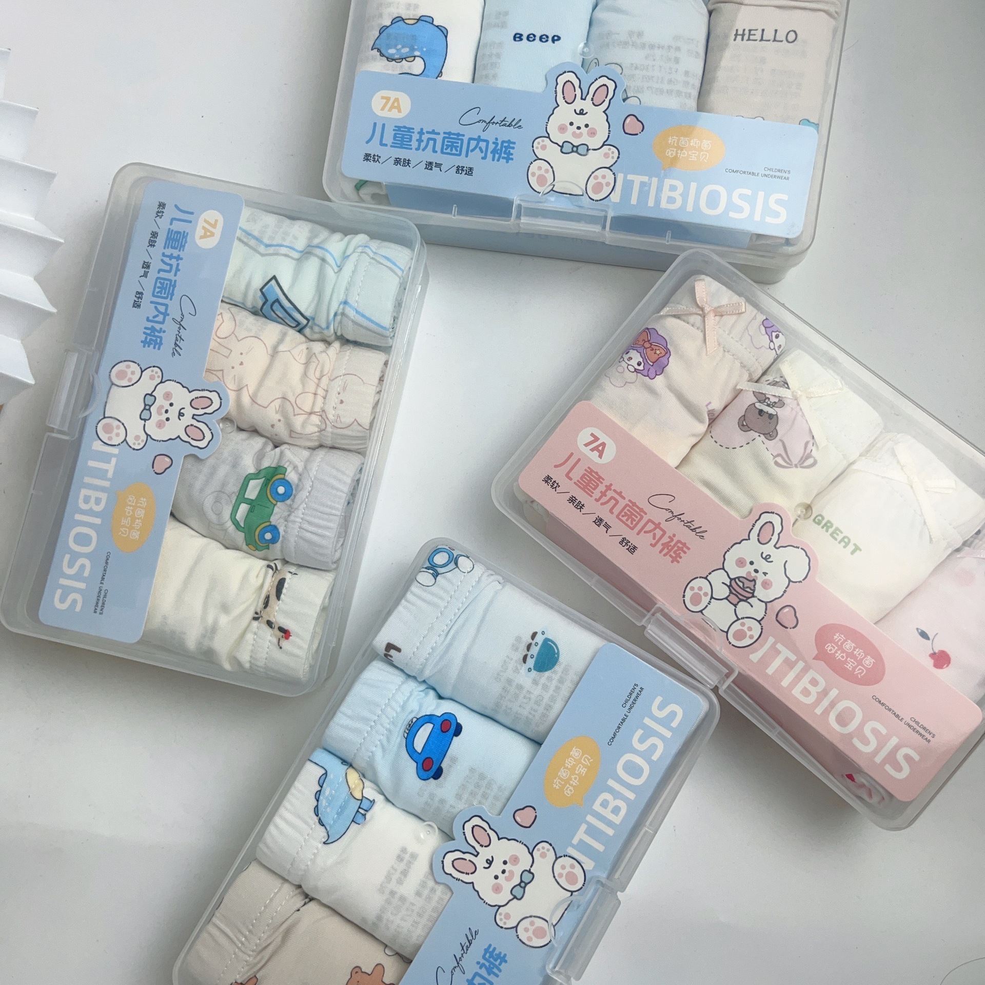 어린이 모달 속옷 여름 스타일 소년 소녀 7A 항균 공장 직접 판매 박스형 4팩 어린이 소형 사이즈
