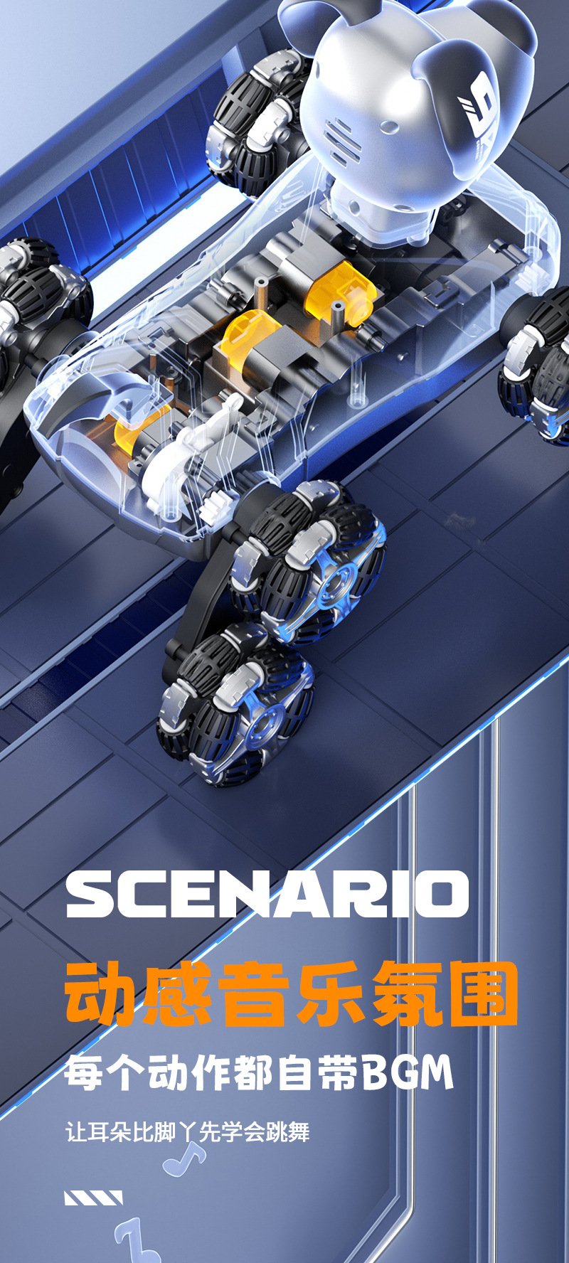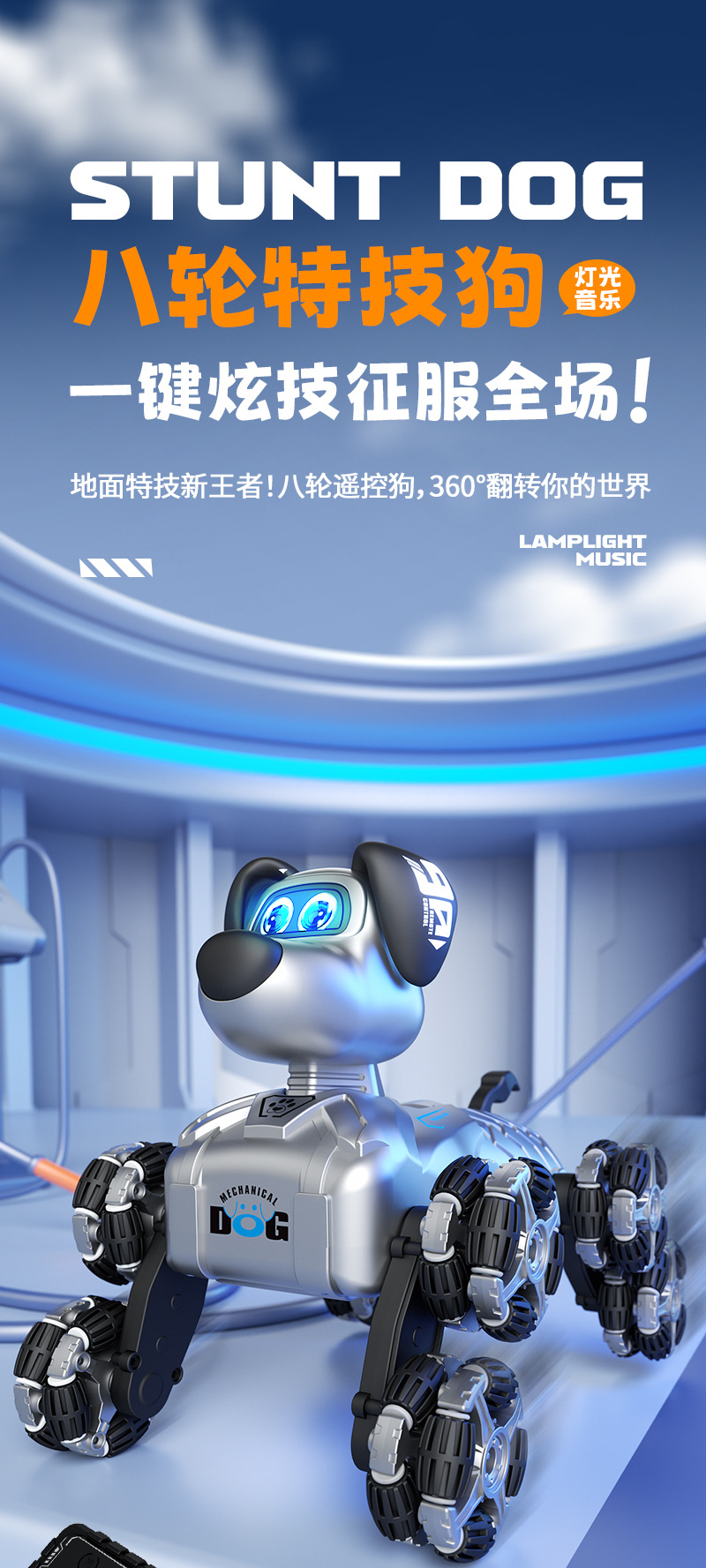 • 8륜 로봇견 [실버] 리모컨 손잡이 + 제스처 - 선물박스
