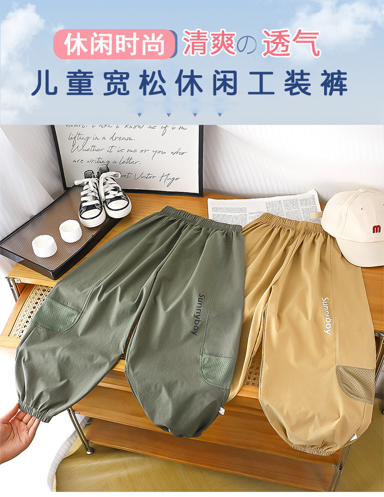 아동용 여름 얇은 바지, 속건성 바지, 메쉬 통기성 모기 방지 바지, 캐주얼 바지, 패셔너블한 스플라이스 바지, 바지스토어 가기