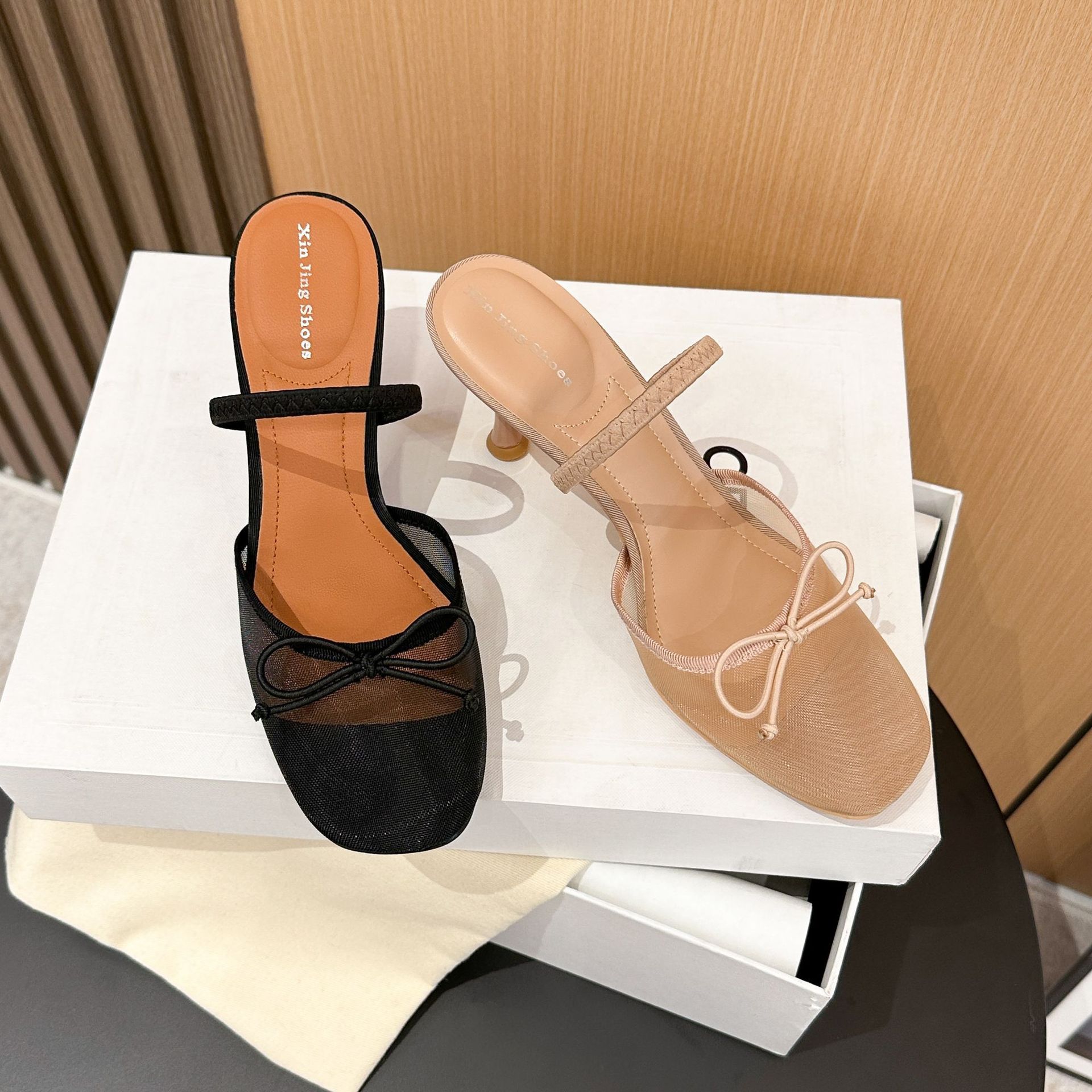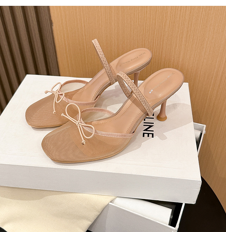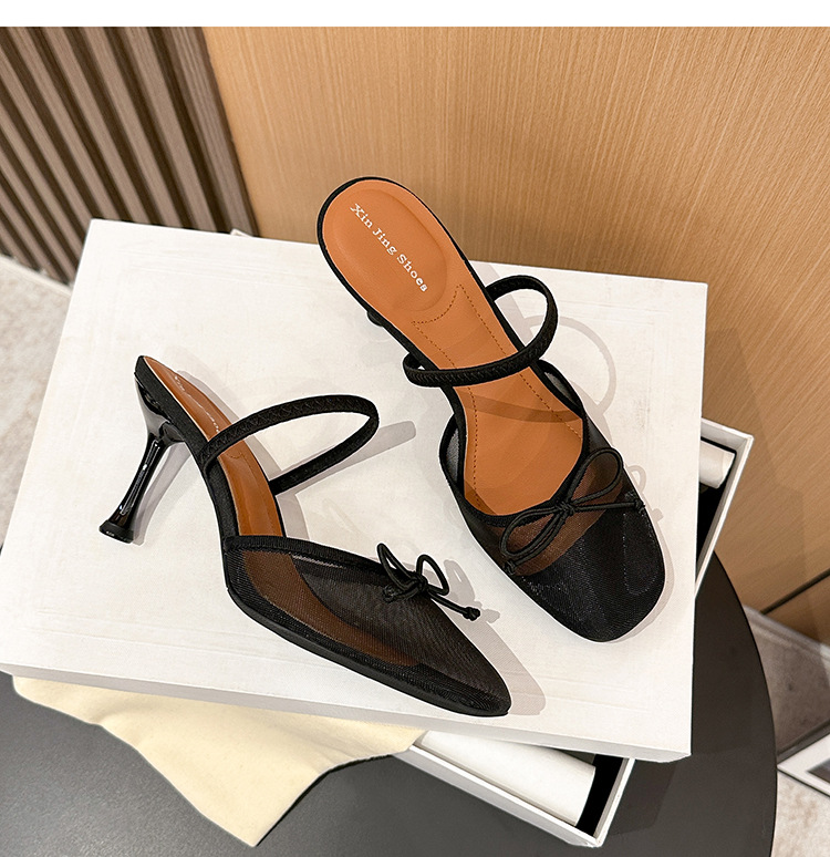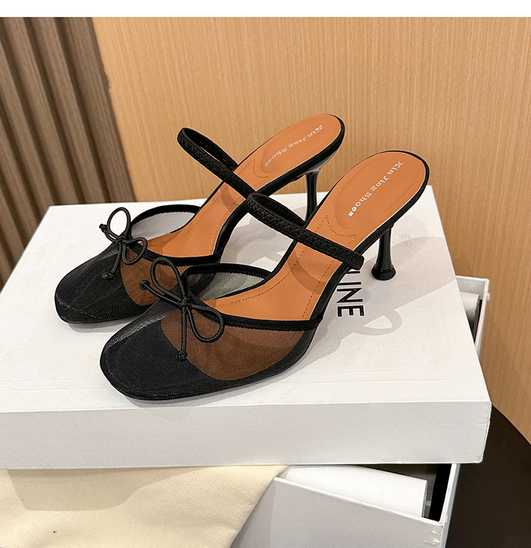 396-1 섹시한 메쉬 원라인 하이힐 신발 여성을 위한 새로운 패션 투명 리본 백 빈 신발스토어 가기