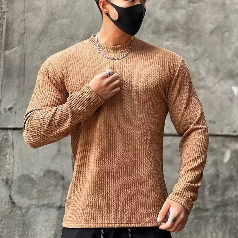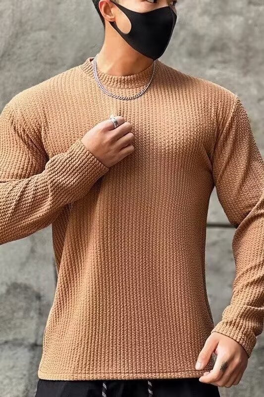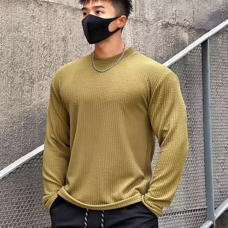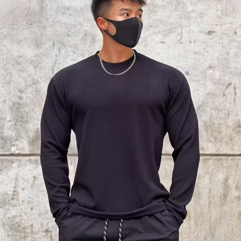 라운드 넥 긴팔 남성 스포츠 티셔츠 피트니스 주름 방지 미국 달리기 훈련 농구 탄성 통기성 솔리드 컬러 캐주얼 트렌드