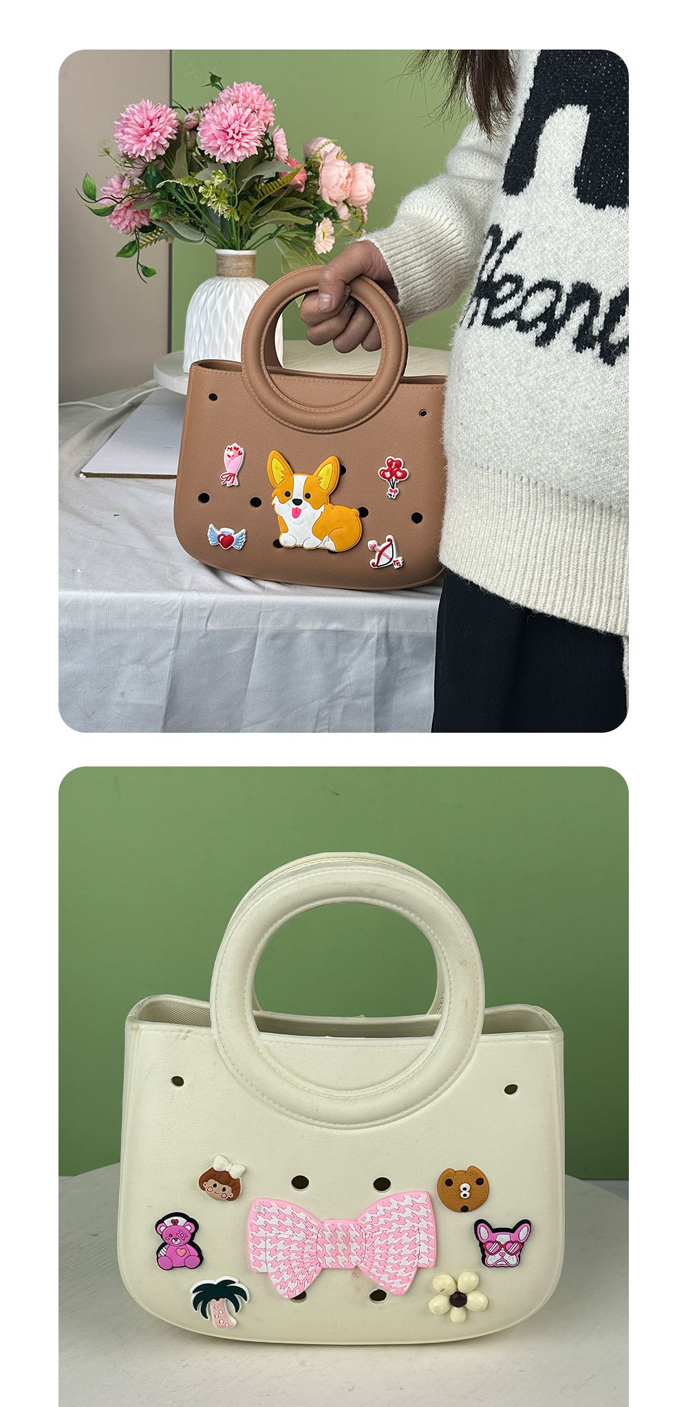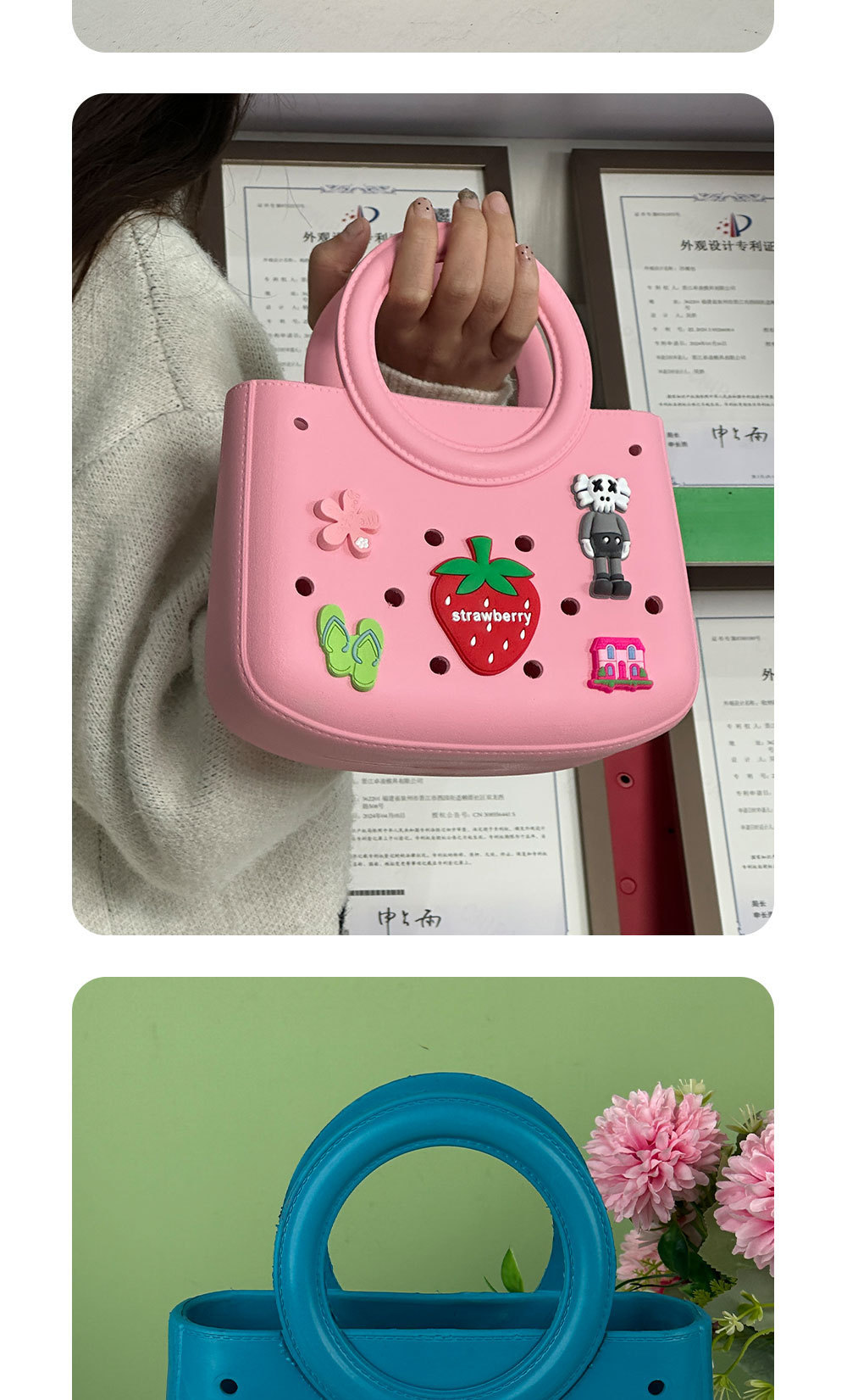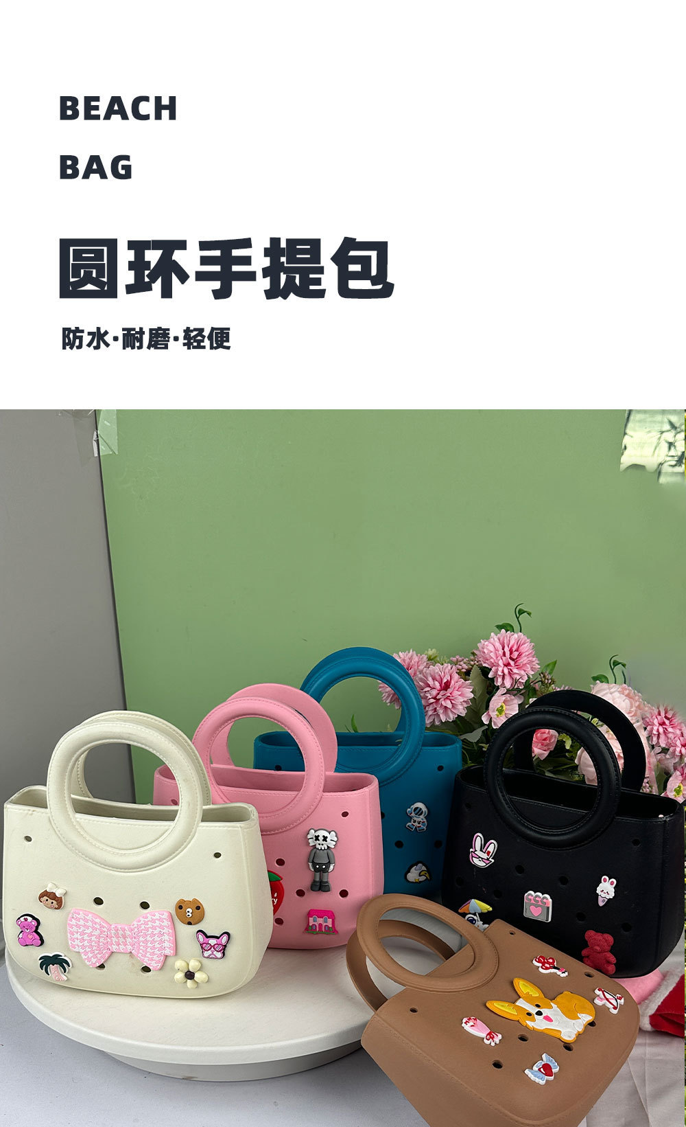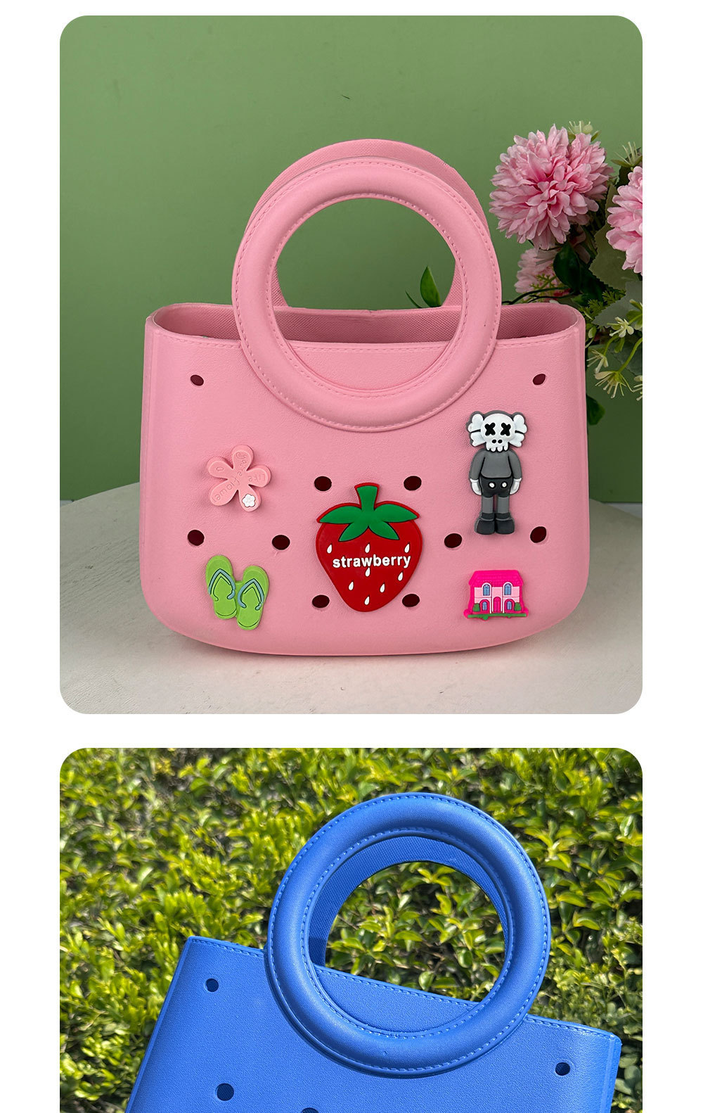 Eva 솔리드 컬러 DIY 홀 가방 방수 저장 가방 야채 바구니 비치 가방 패션 중공 여행 핸드백