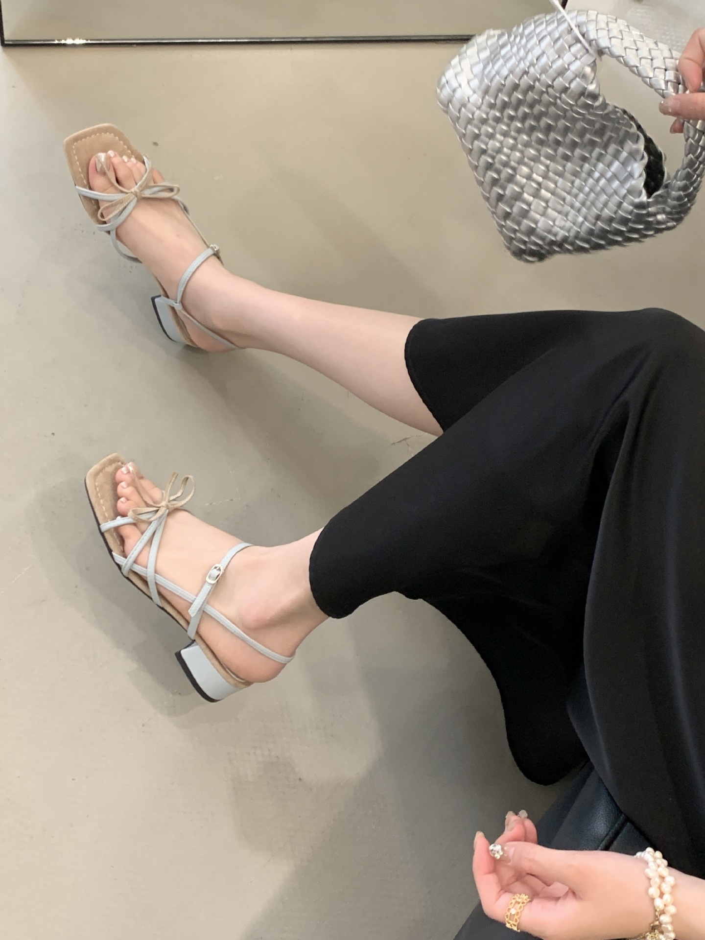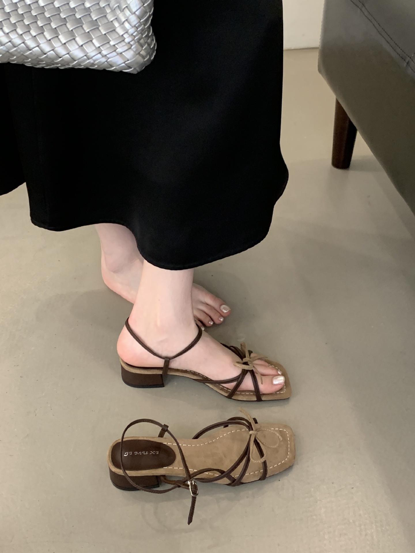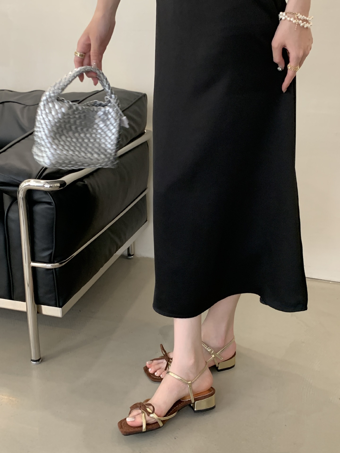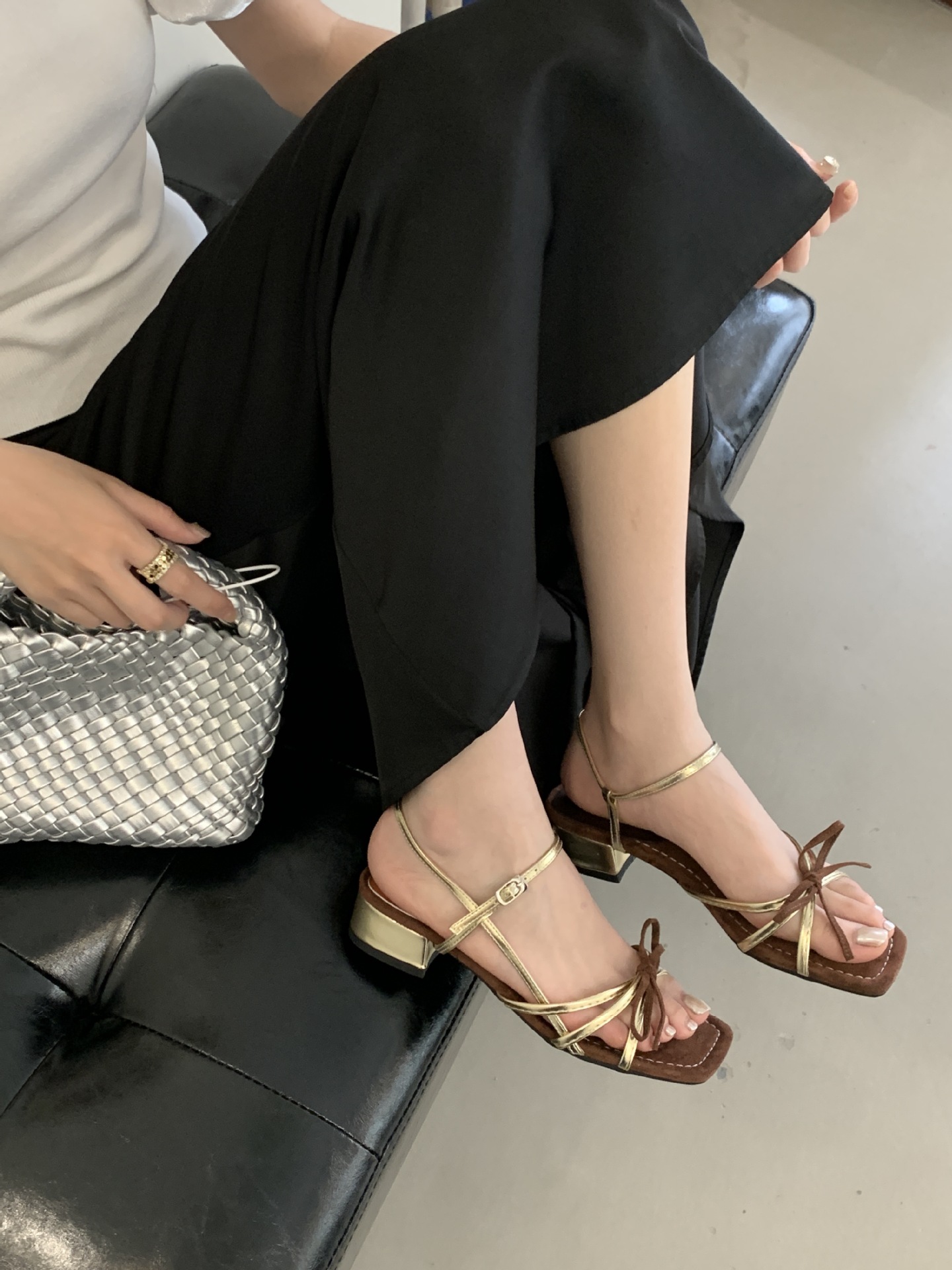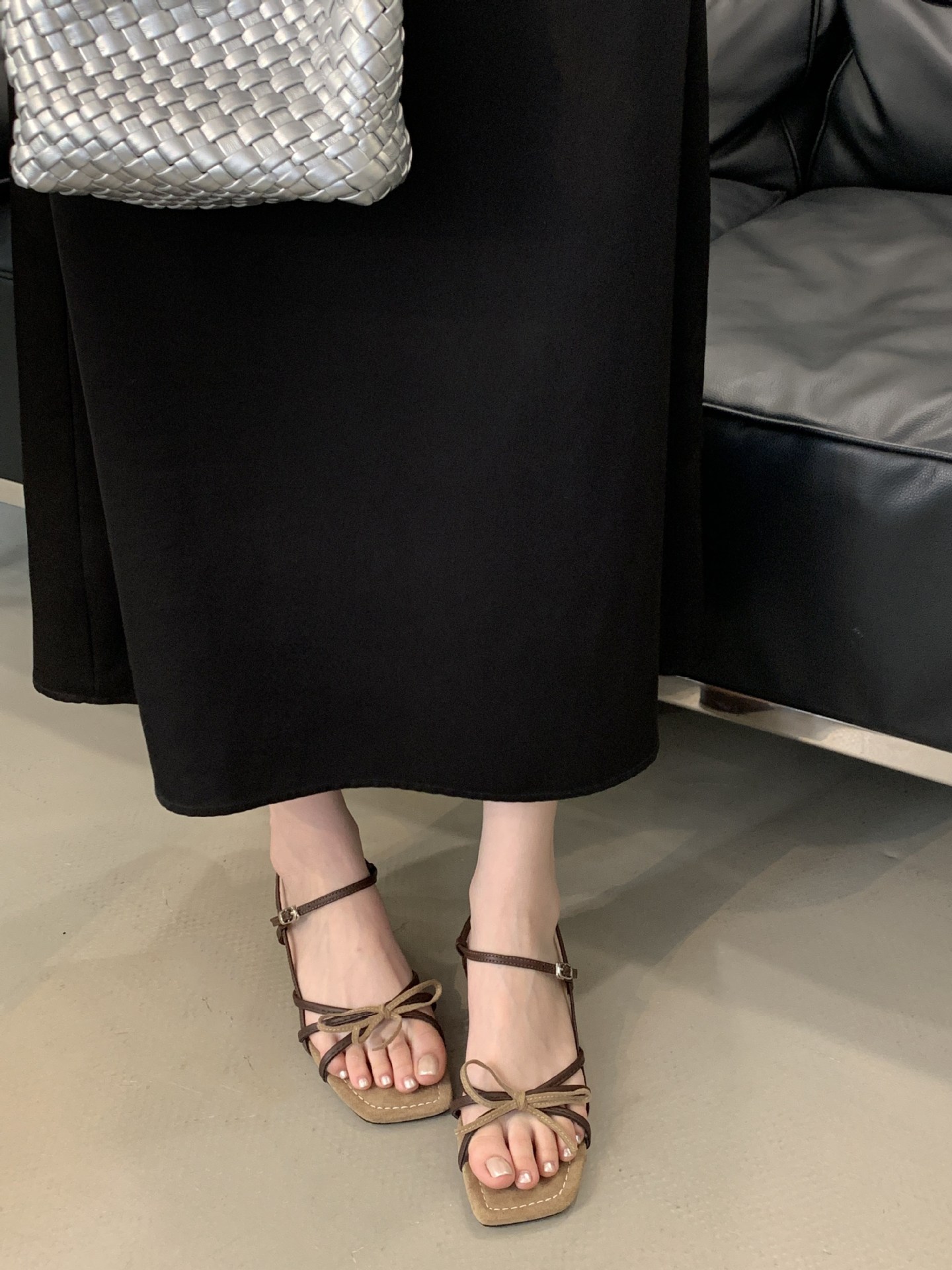 스커트와 매치하는 여성용 페어리 스타일 스퀘어토 오픈토 샌들, 2025년 여름 신상 프렌치 스타일의 아름다운 로우힐과 부드러운 이브닝 슈즈