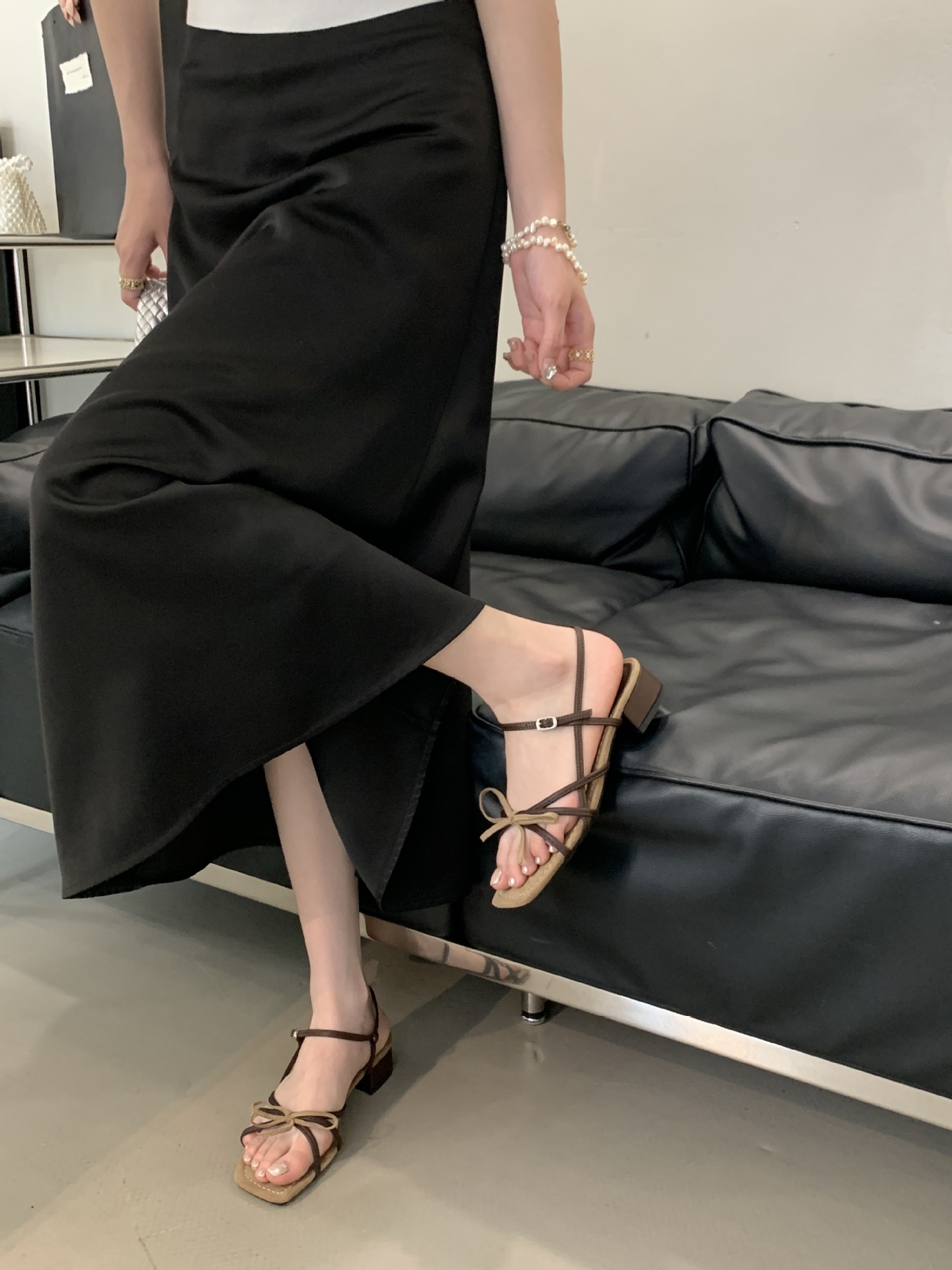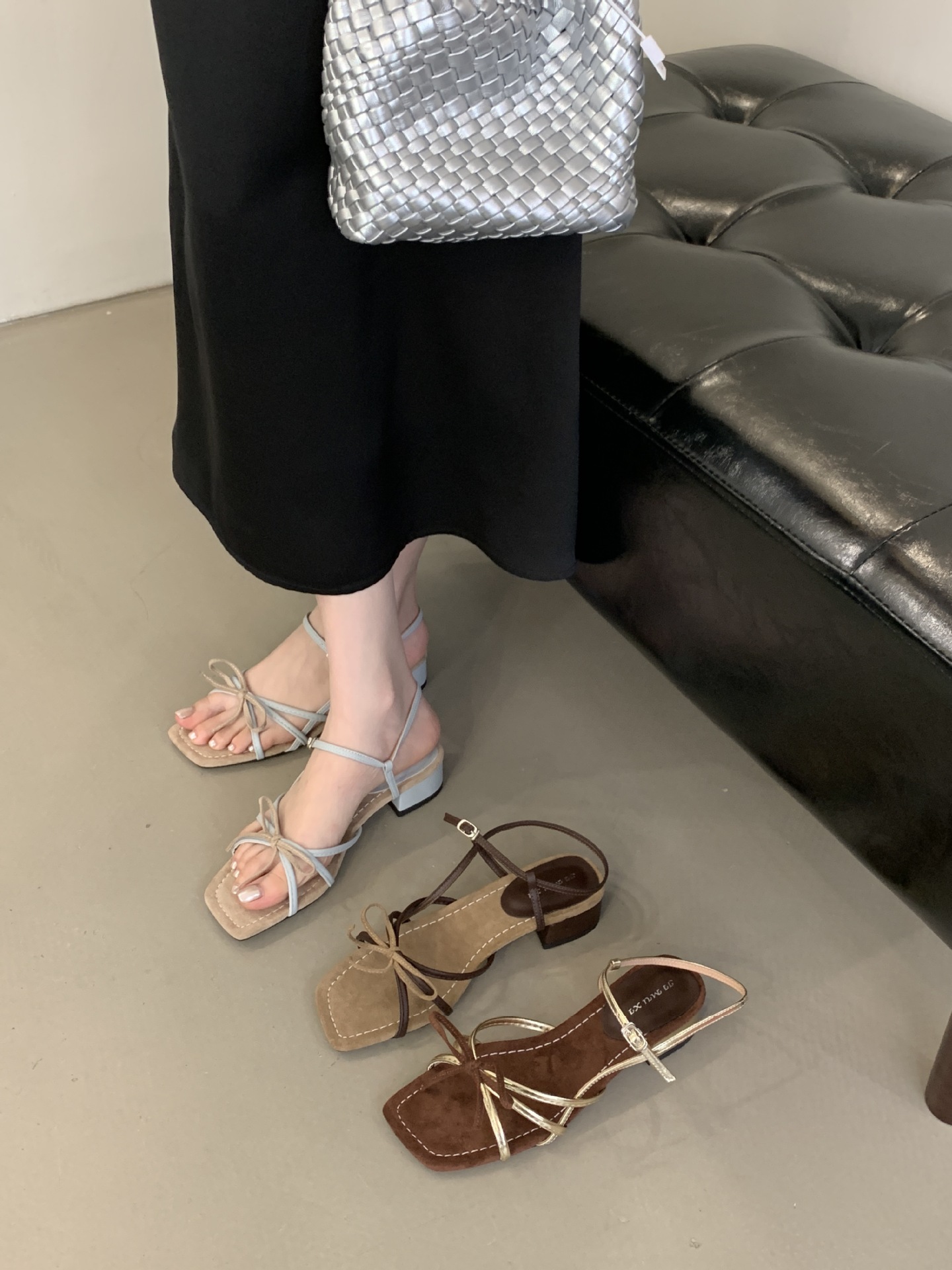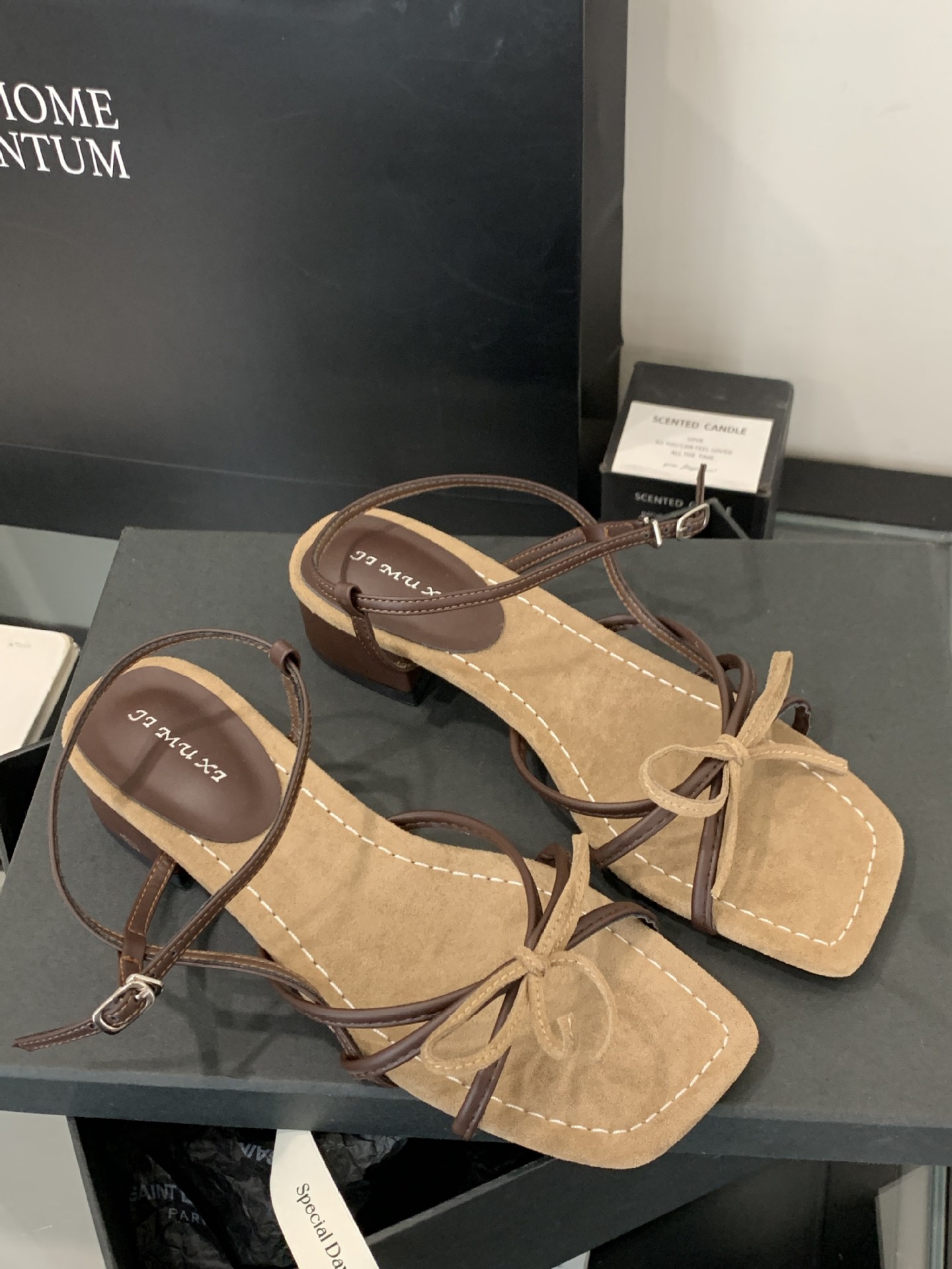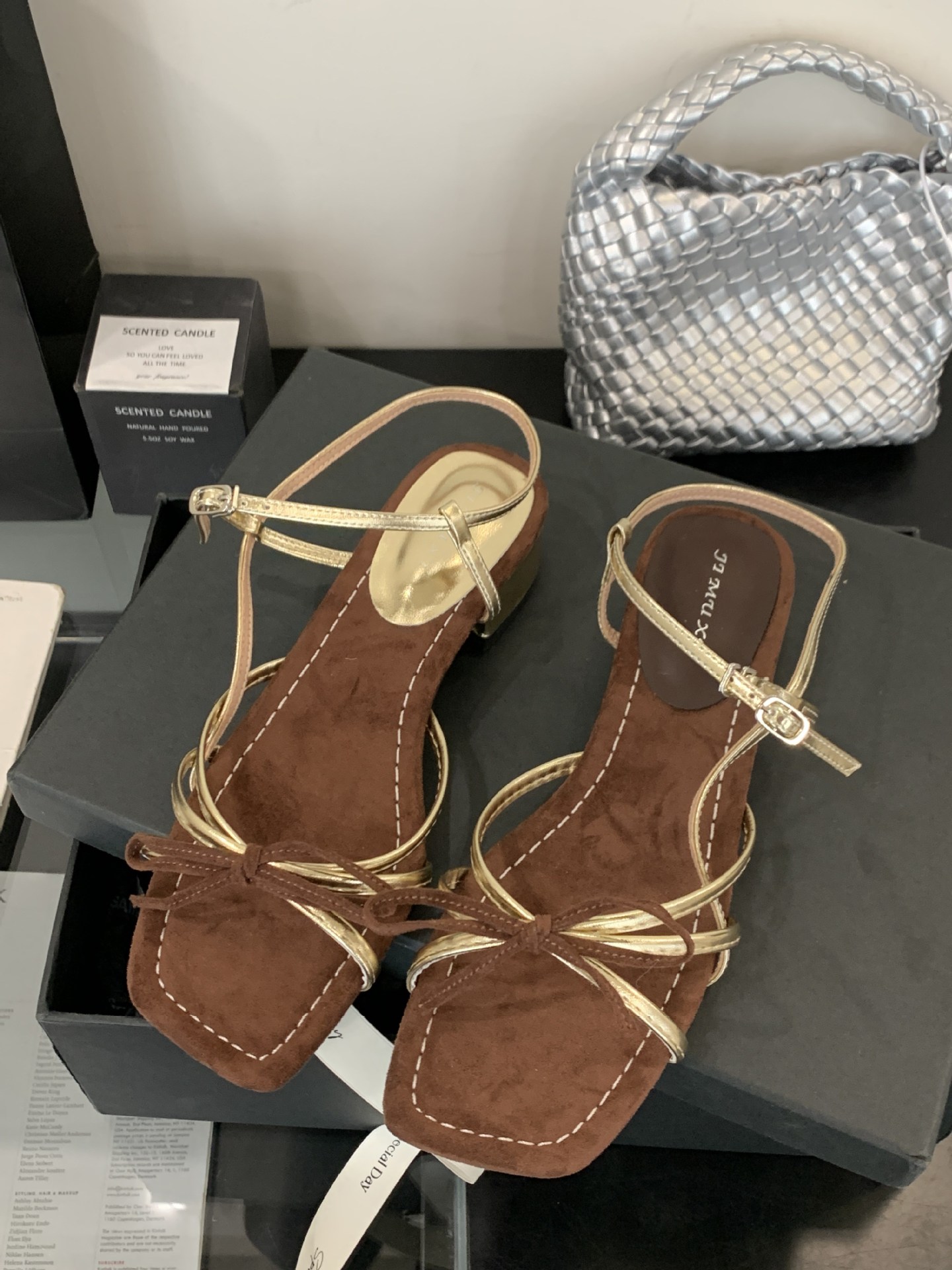 스커트와 매치하는 여성용 페어리 스타일 스퀘어토 오픈토 샌들, 2025년 여름 신상 프렌치 스타일의 아름다운 로우힐과 부드러운 이브닝 슈즈