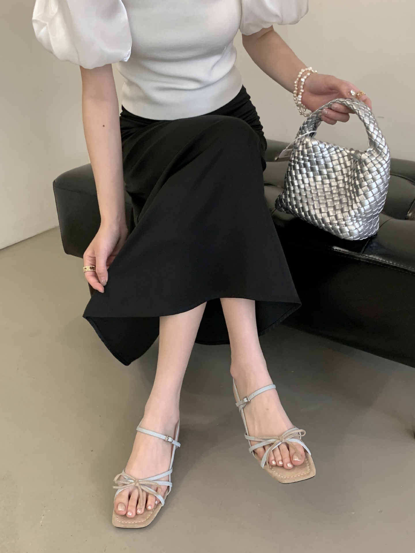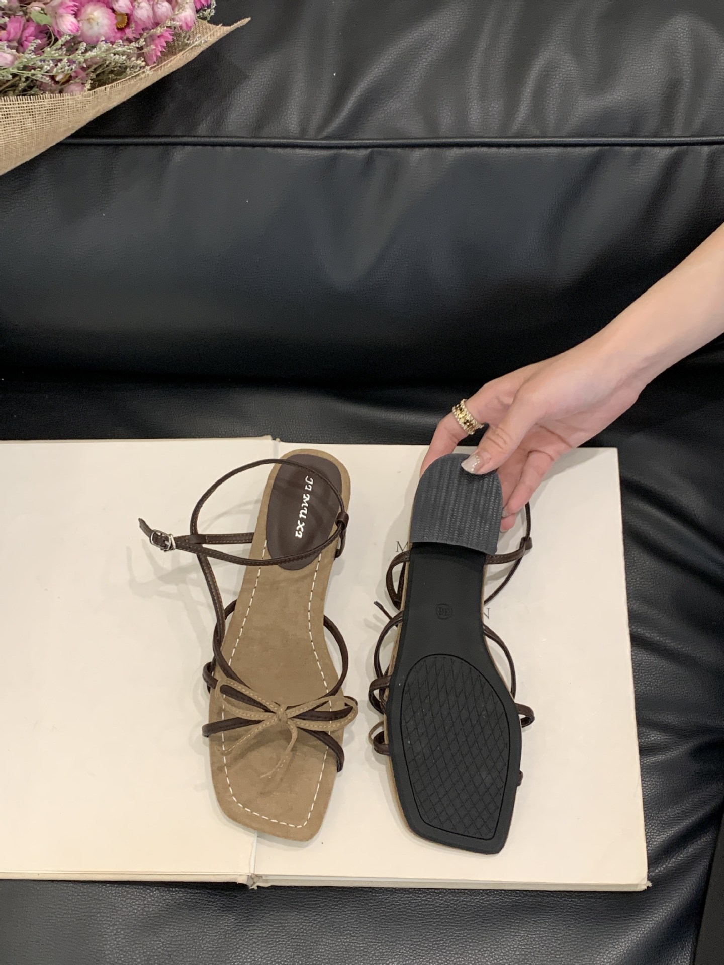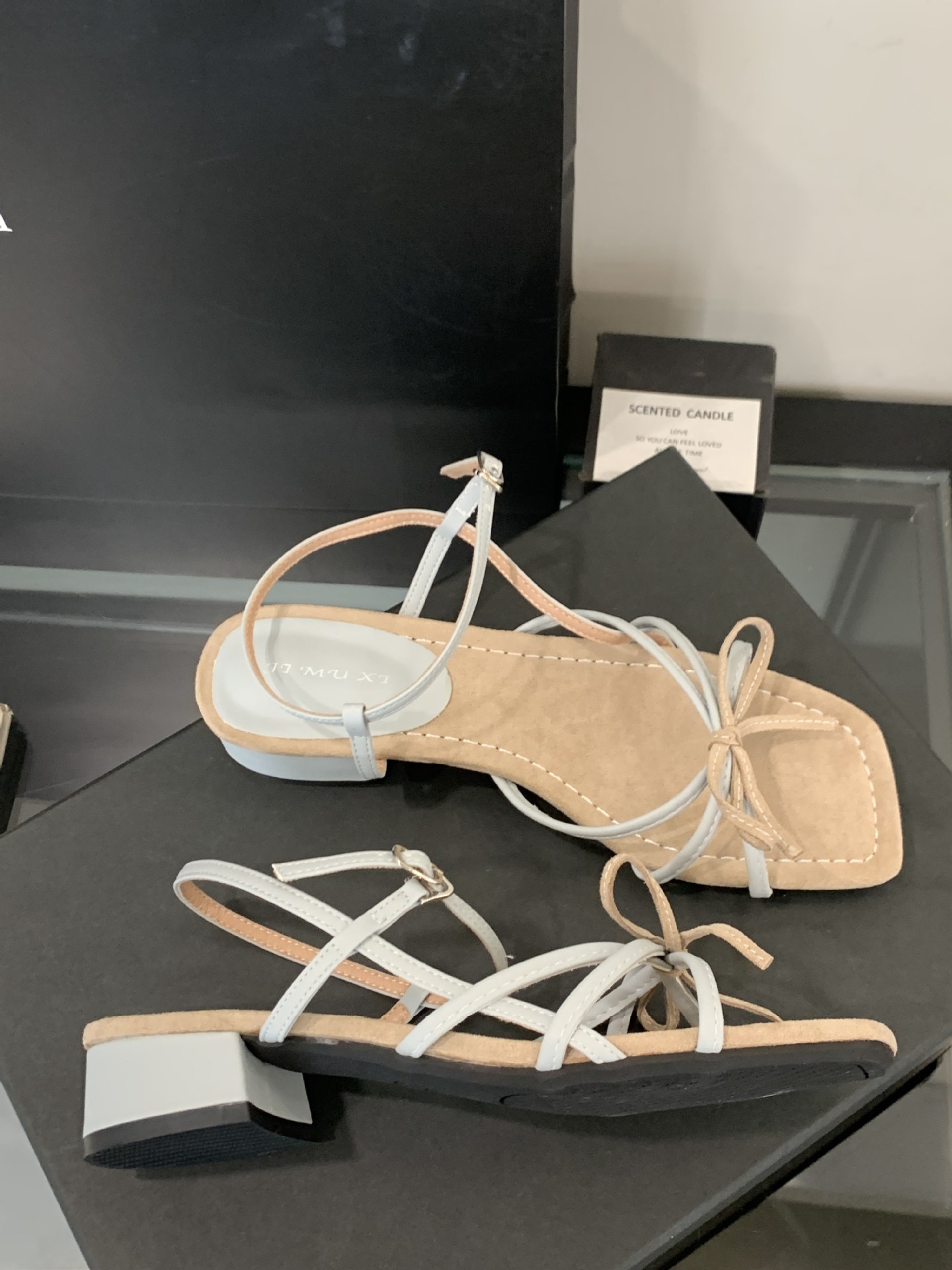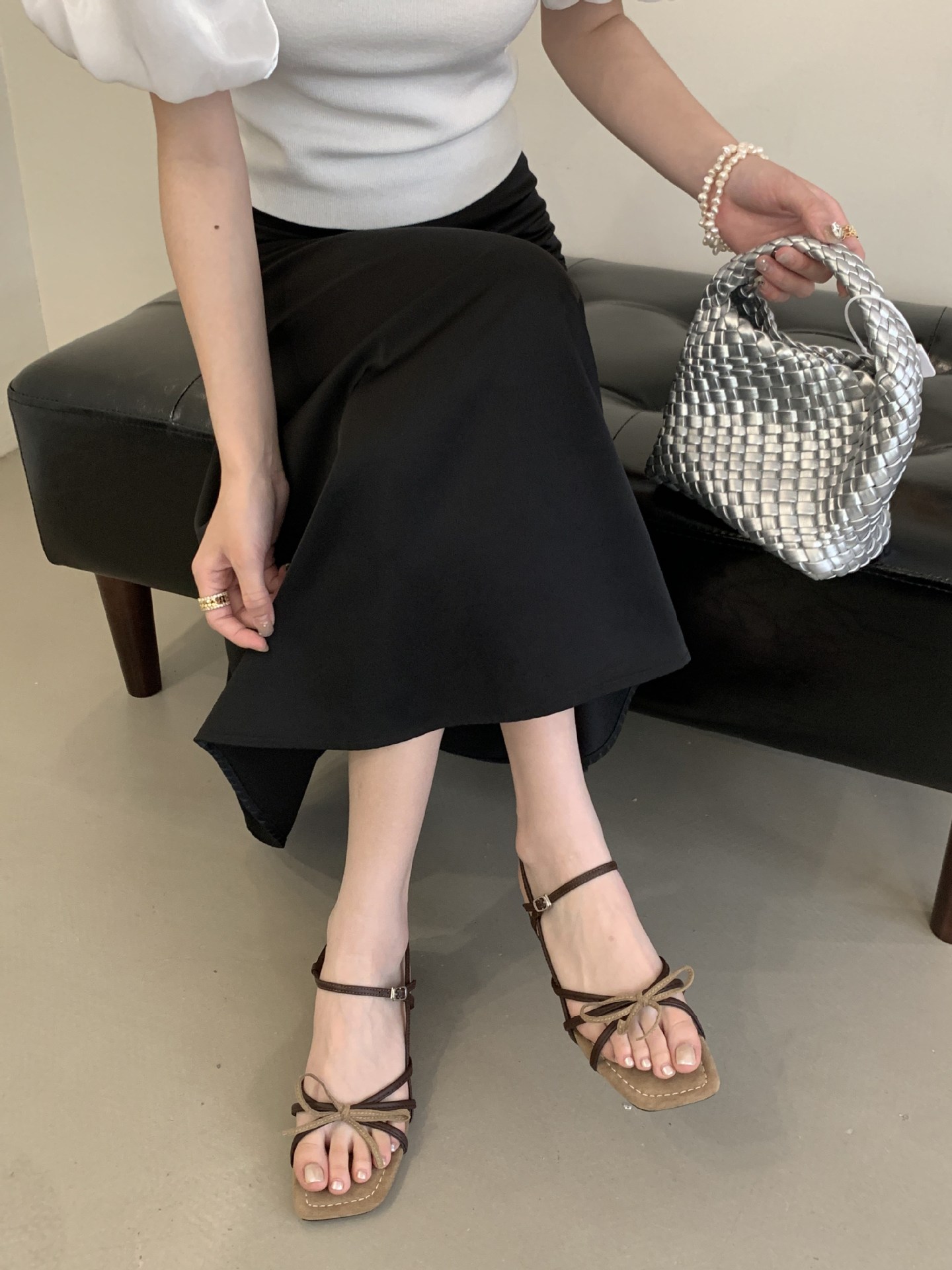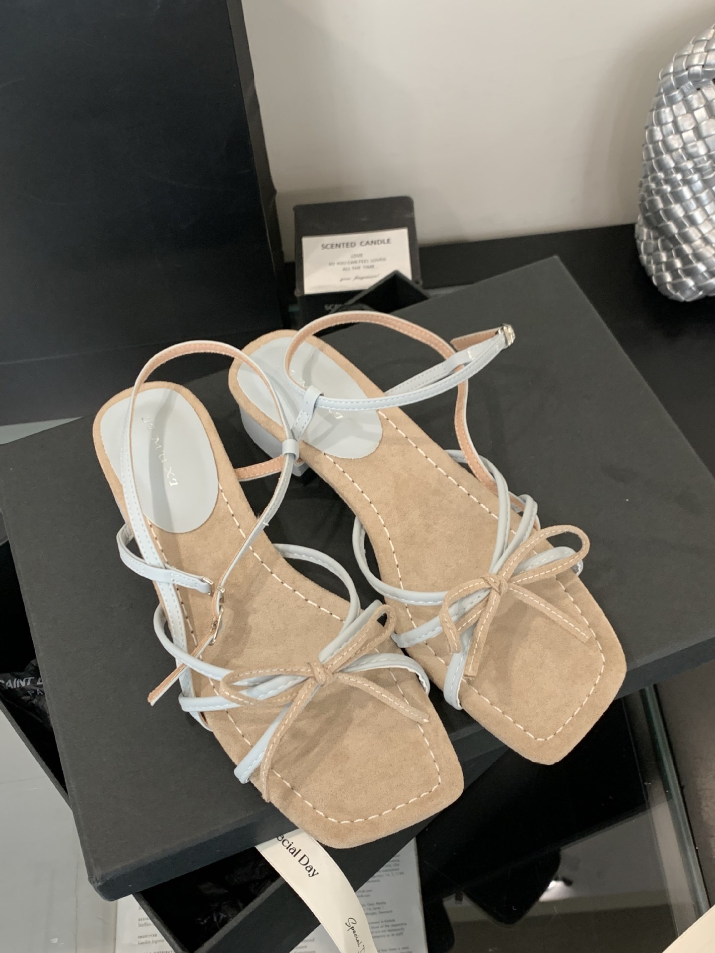 스커트와 매치하는 여성용 페어리 스타일 스퀘어토 오픈토 샌들, 2025년 여름 신상 프렌치 스타일의 아름다운 로우힐과 부드러운 이브닝 슈즈
