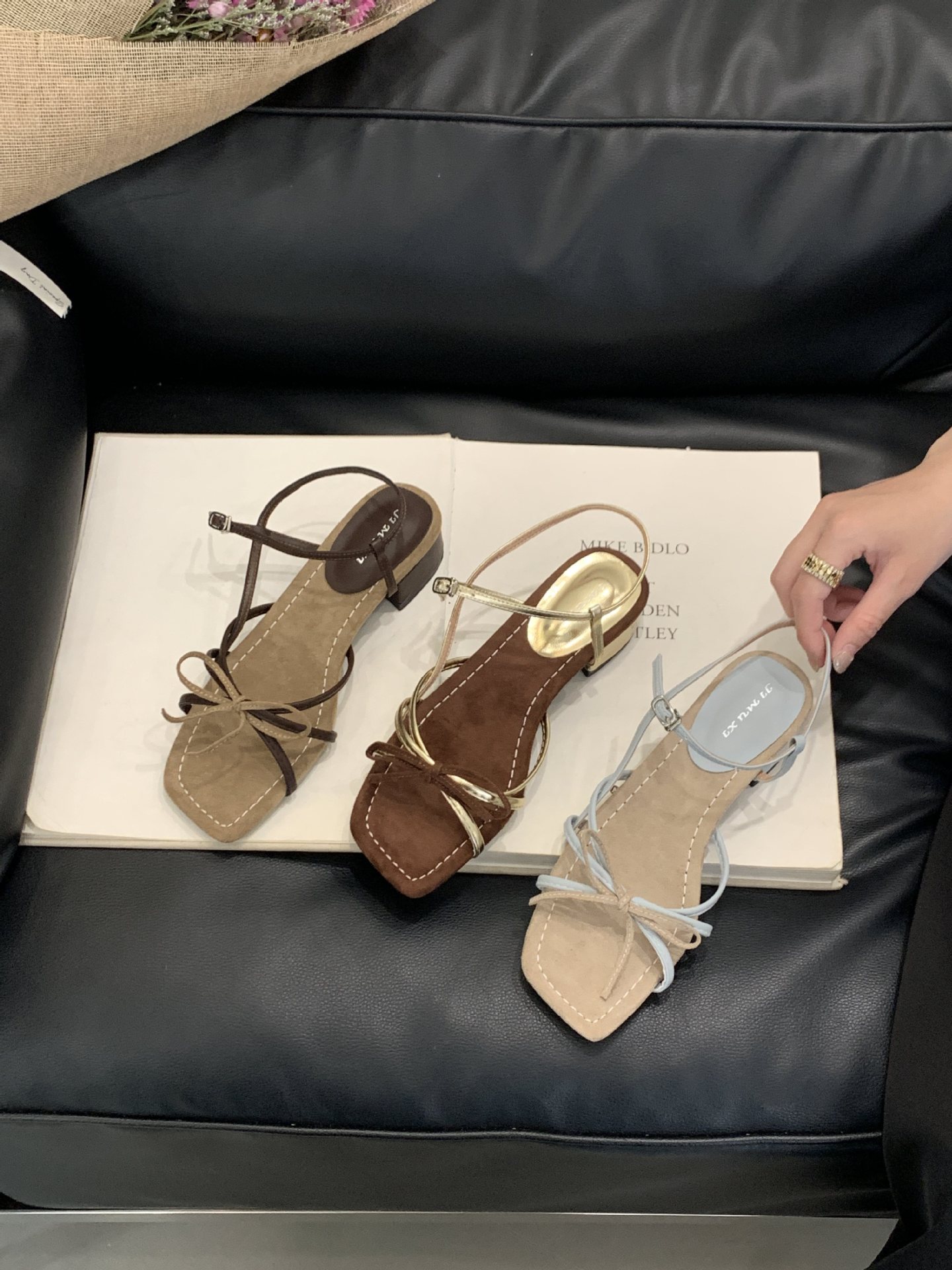 스커트와 매치하는 여성용 페어리 스타일 스퀘어토 오픈토 샌들, 2025년 여름 신상 프렌치 스타일의 아름다운 로우힐과 부드러운 이브닝 슈즈스토어 가기