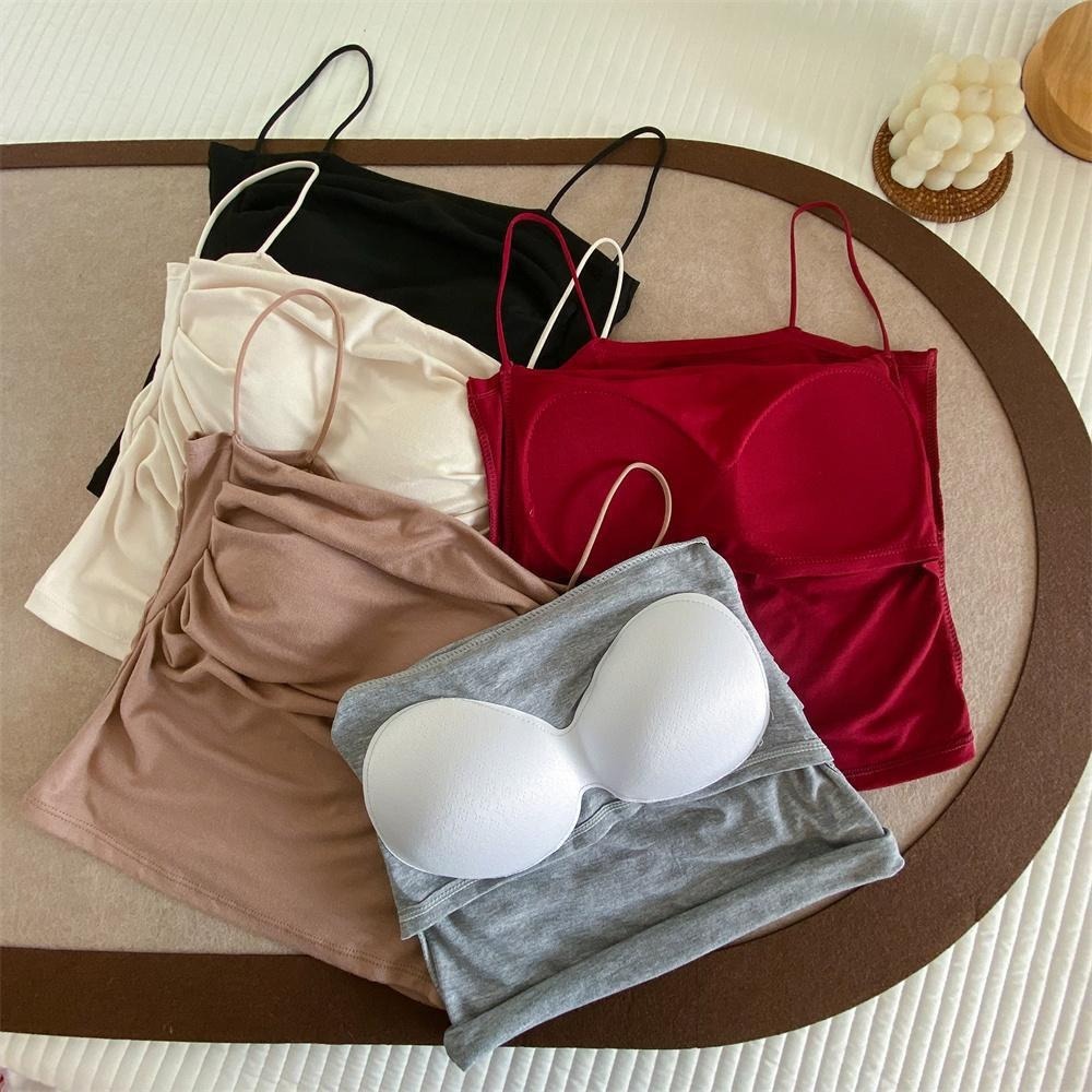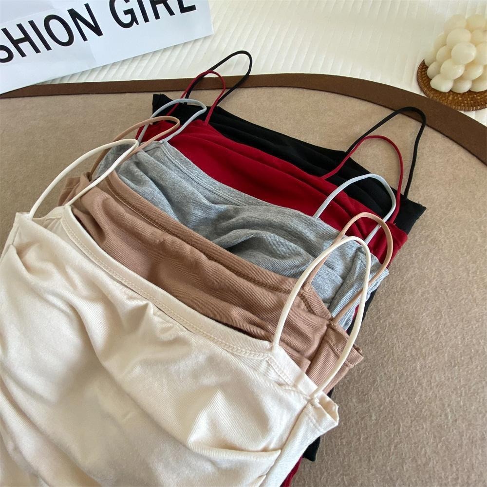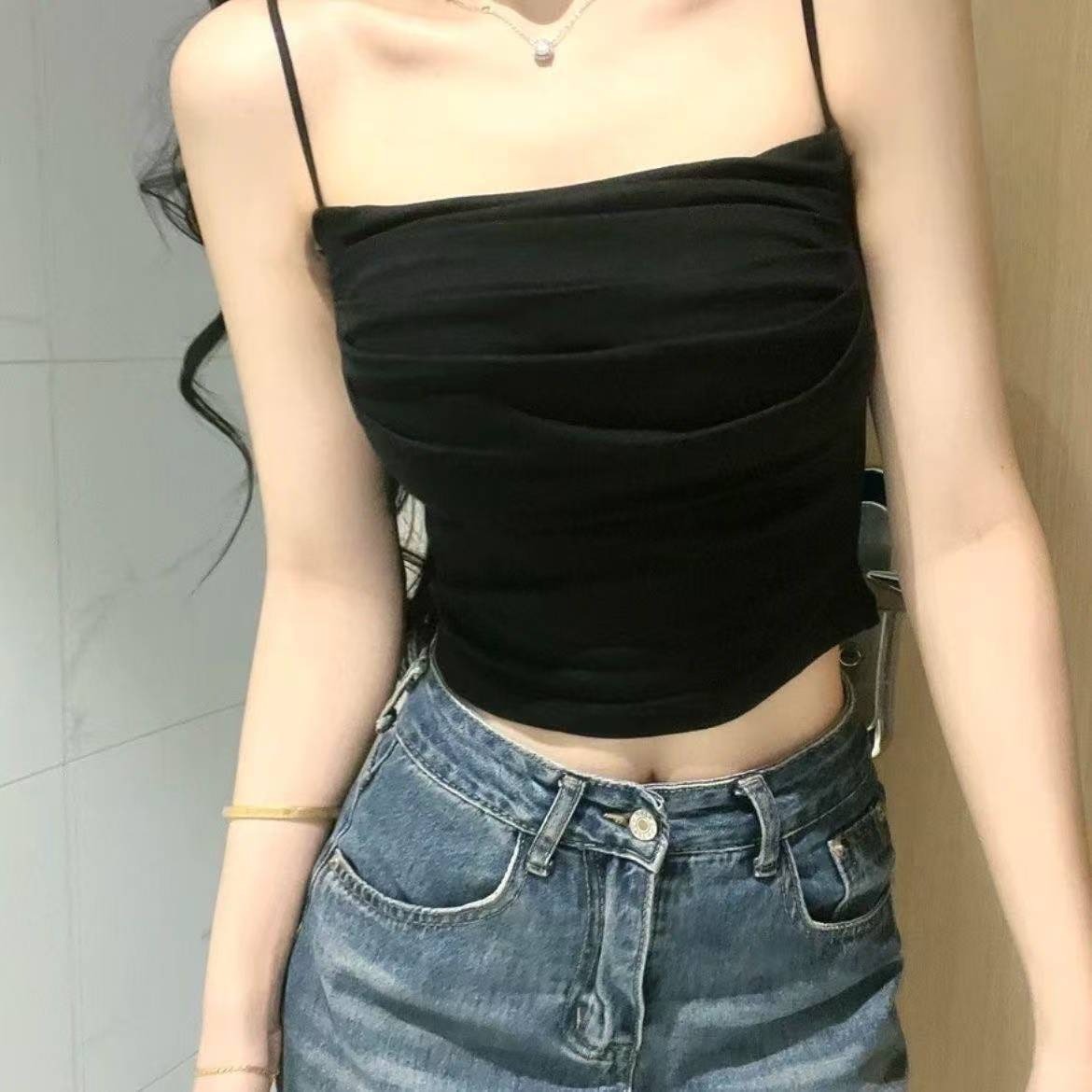 가슴 패드가 있는 여성용 여름 솔리드 컬러 플리츠 캐미솔, 슬림핏, 이너웨어, 아우터웨어, 아름다운 등, 짧은 하의 탑스토어 가기