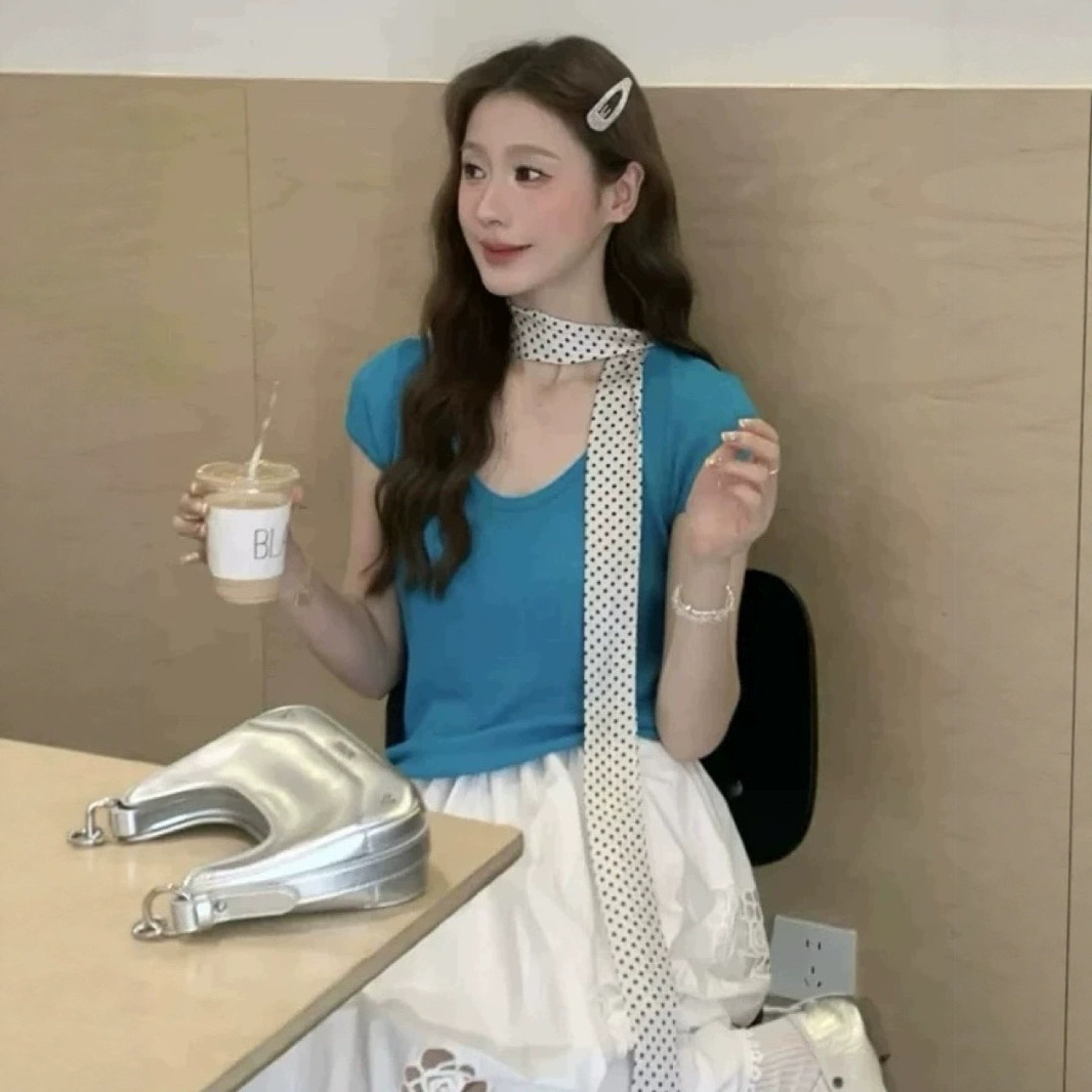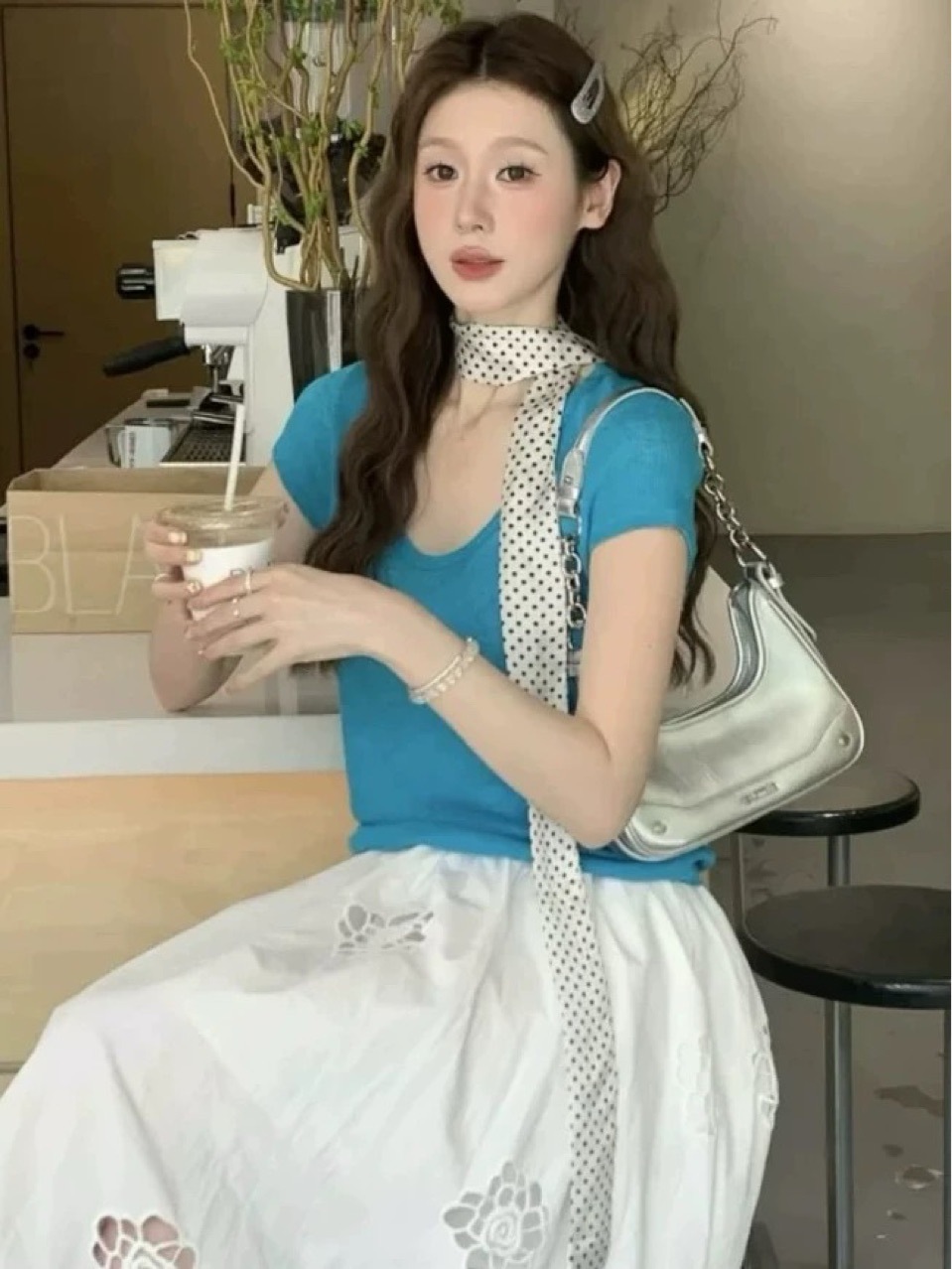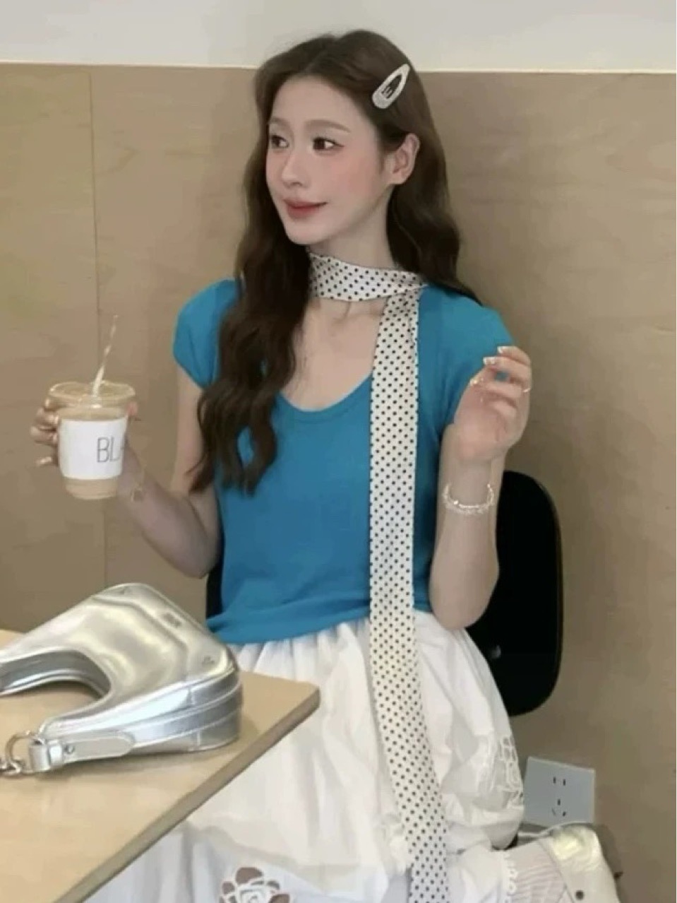 분위기! 뒷머리에 블루 체크무늬 레이스 머리끈, 머리끈, 유루오펑 액세서리스토어 가기