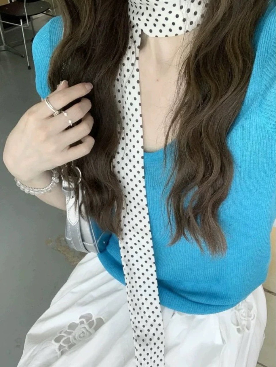분위기! 뒷머리에 블루 체크무늬 레이스 머리끈, 머리끈, 유루오펑 액세서리
