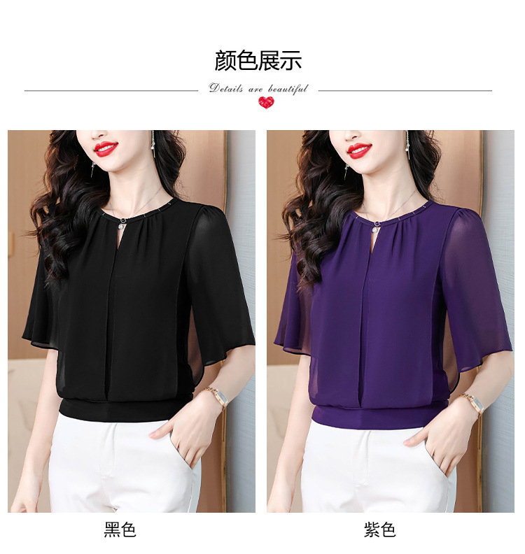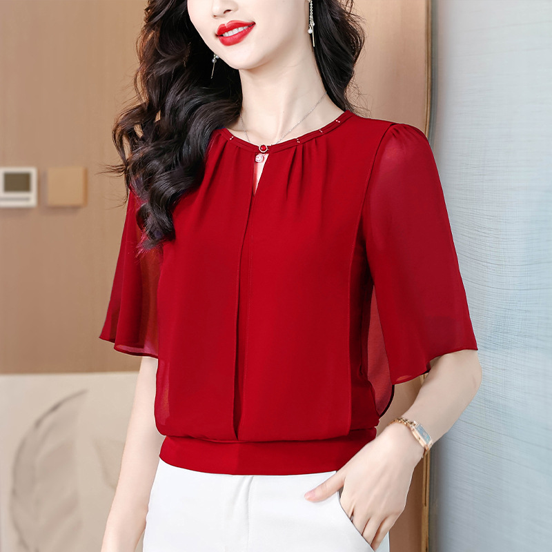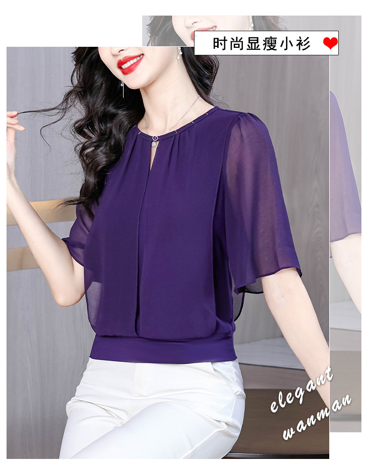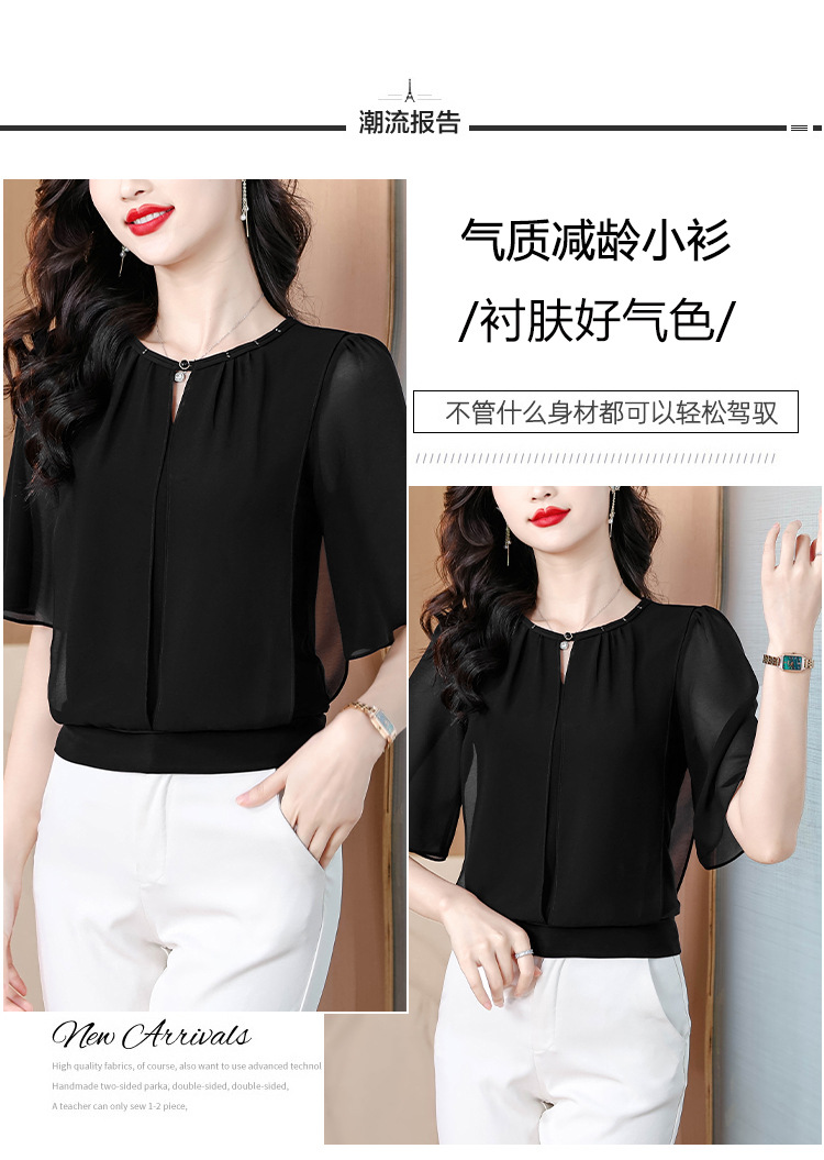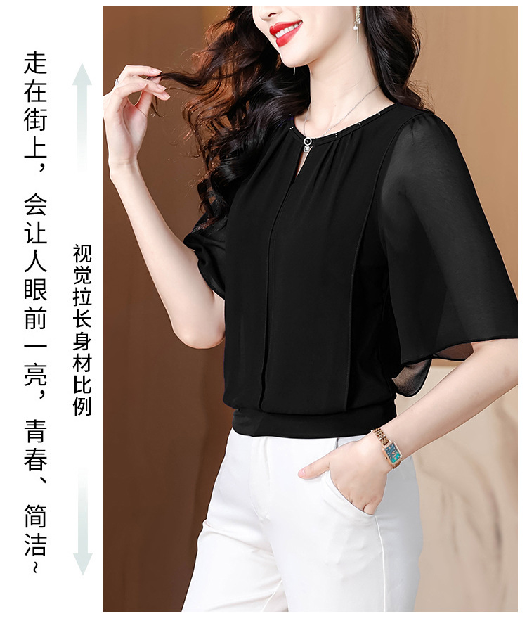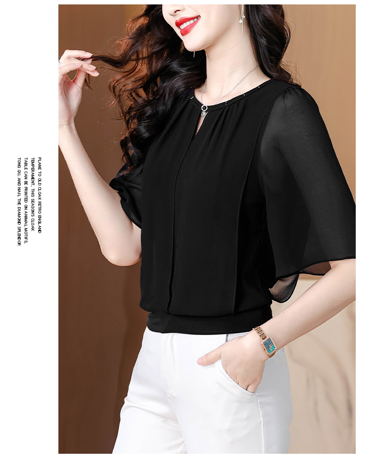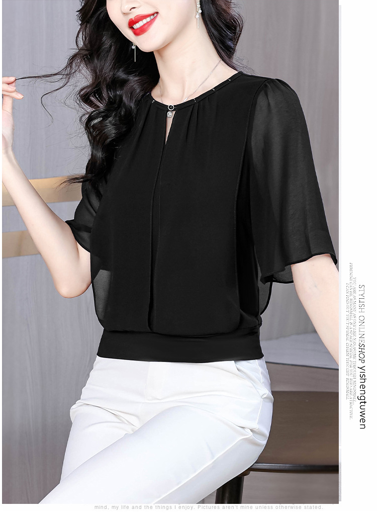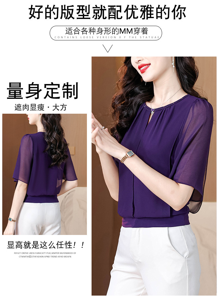 여성을위한 가벼운 럭셔리 배 커버 쉬폰 셔츠 탑 여름 2025 새로운 스타일 하이 엔드 느슨한 슬리밍 연령 감소 셔츠