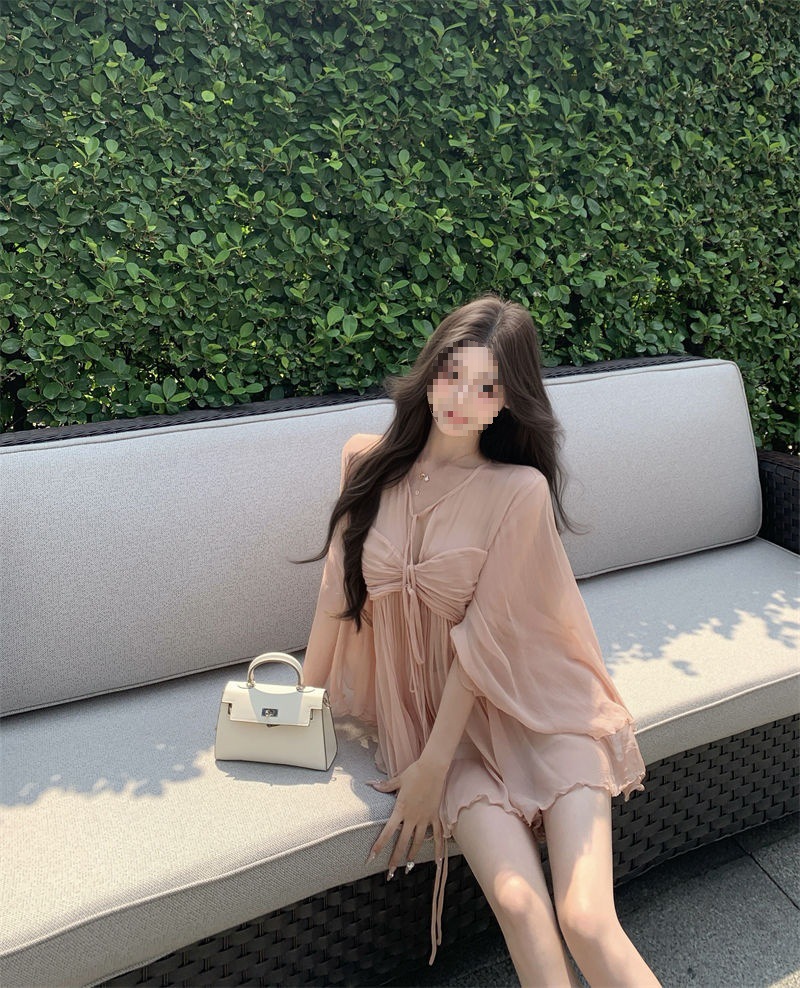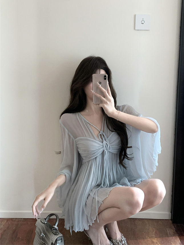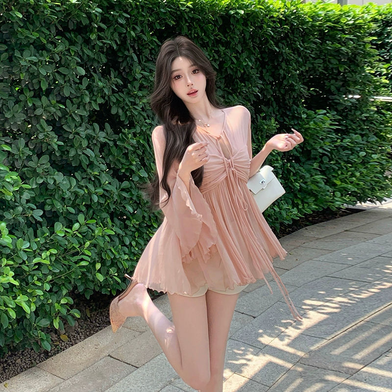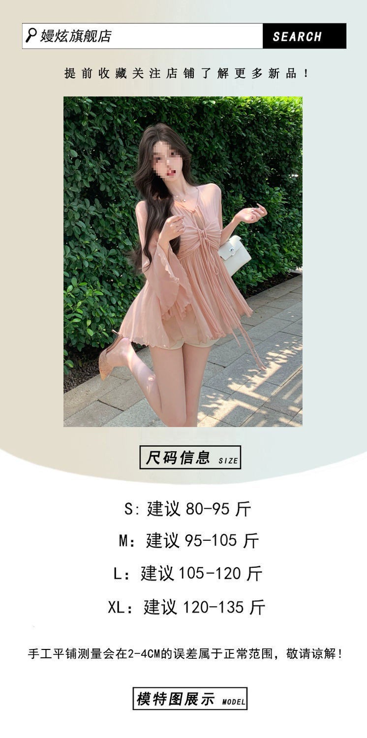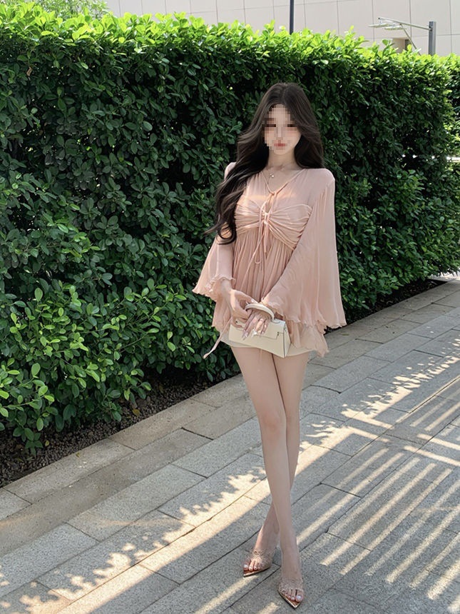 여름 휴가를 위한 부드러운 스타일의 가벼운 럭셔리 쉬폰 셔츠 여성용 요정 디자인 느슨한 자외선 차단제 여성용 얇은 탑