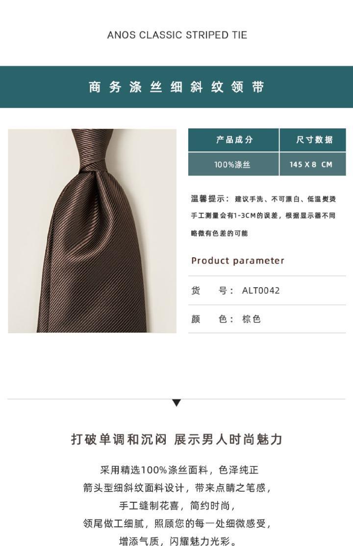 ANOS 브라운 파인 능직 화살표 넥타이 우아한 신사 8CM 폴리 에스터 솔리드 컬러 비즈니스 선물 상자 넥타이 남성용스토어 가기