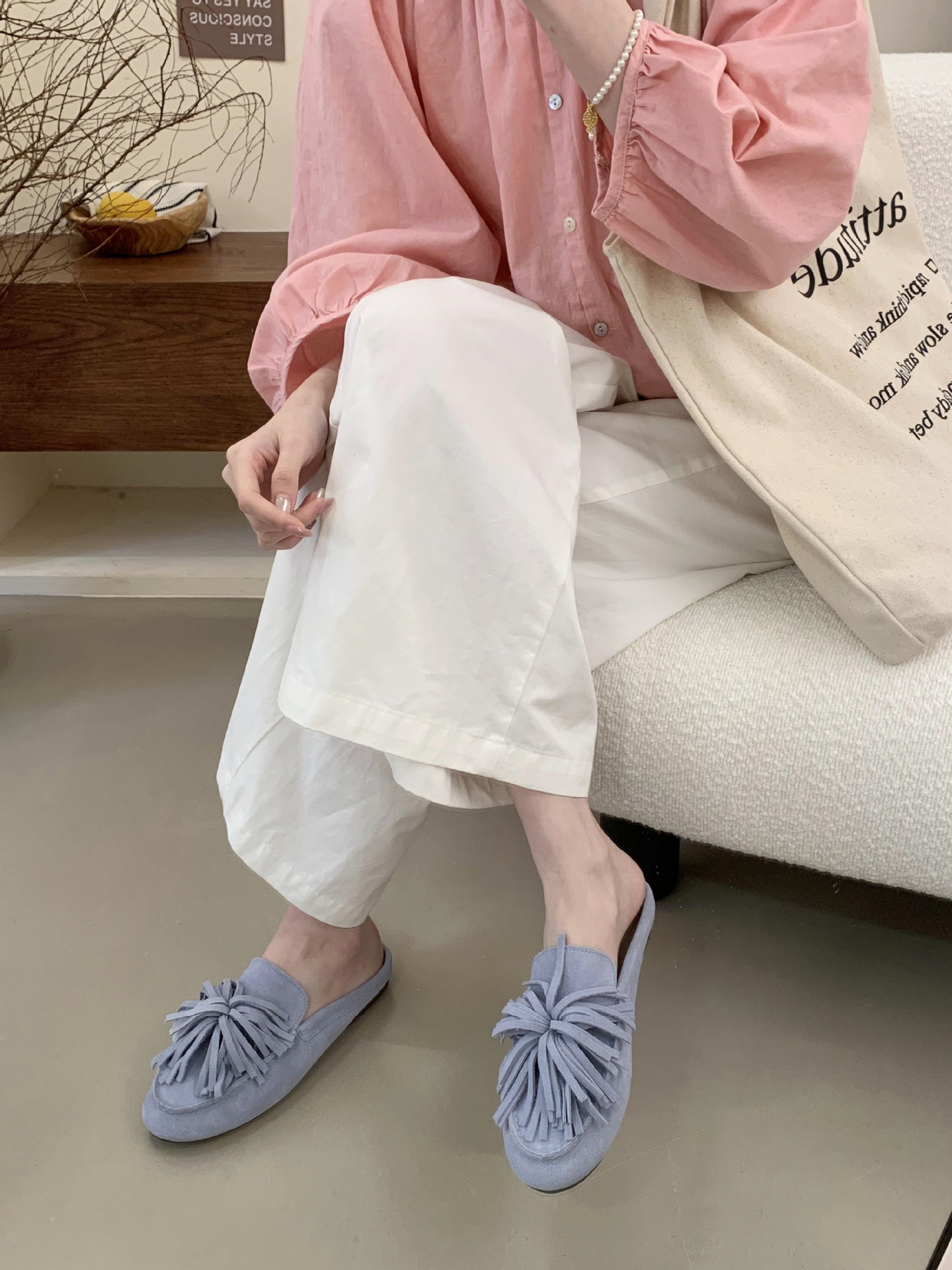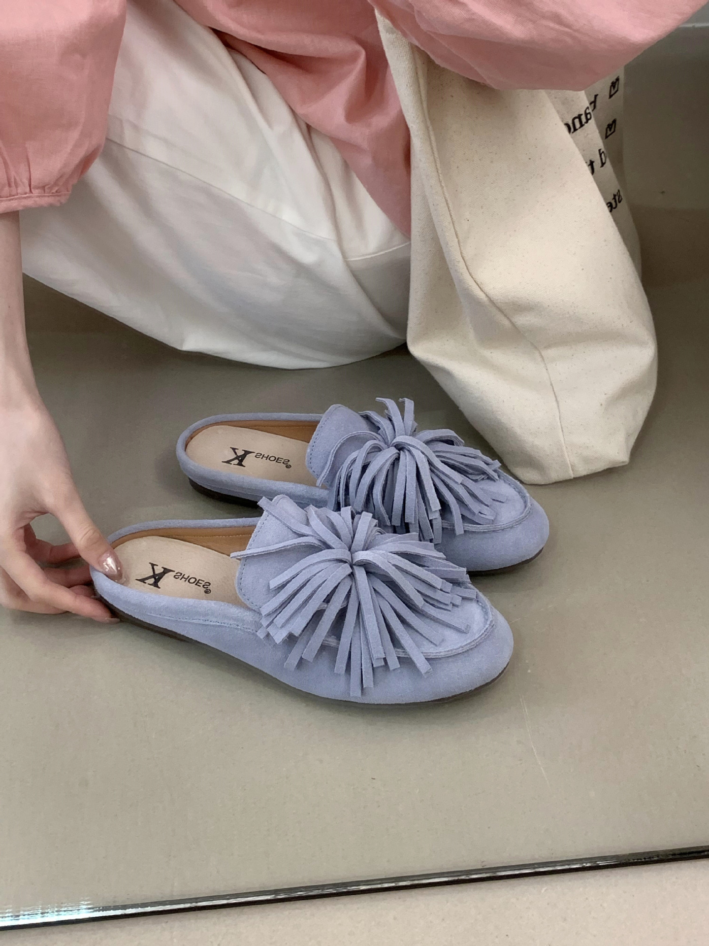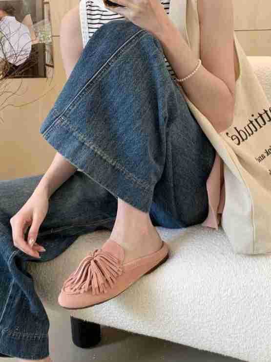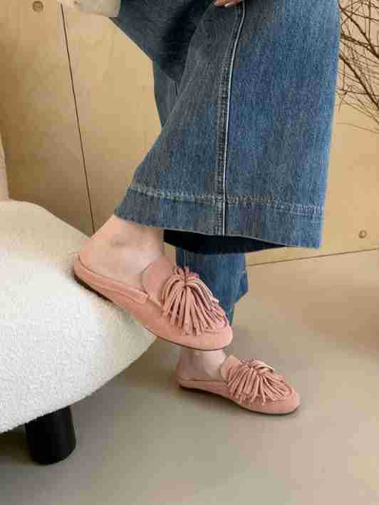2025 신형 반투명 태슬 샌들, 슬립온 플랫 토캡 슬리퍼, 비니슈즈, 부드러운 밑창 캐주얼 여성화스토어 가기