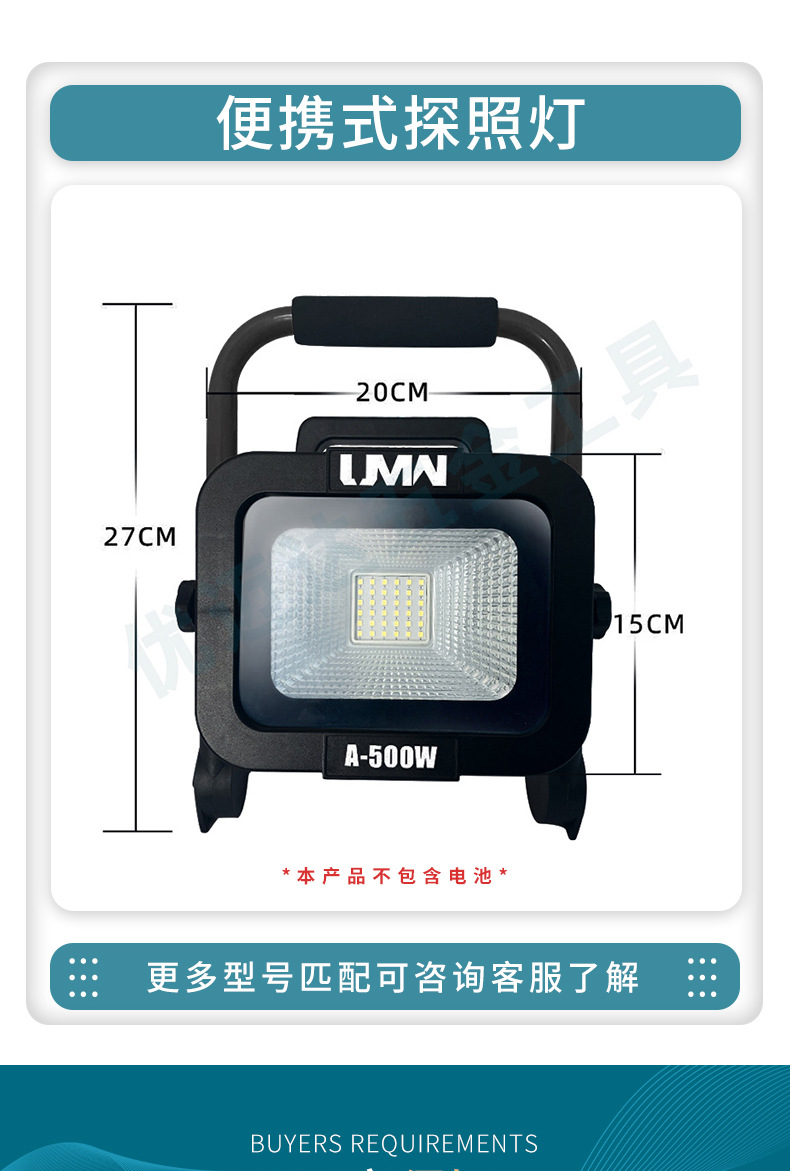 ✬ 충전식 리튬 배터리 조명등 10인치 500W 야외 야간 낚시 캠핑 자동차 수리 무선 투광등 강한 빛 작업등스토어 가기
