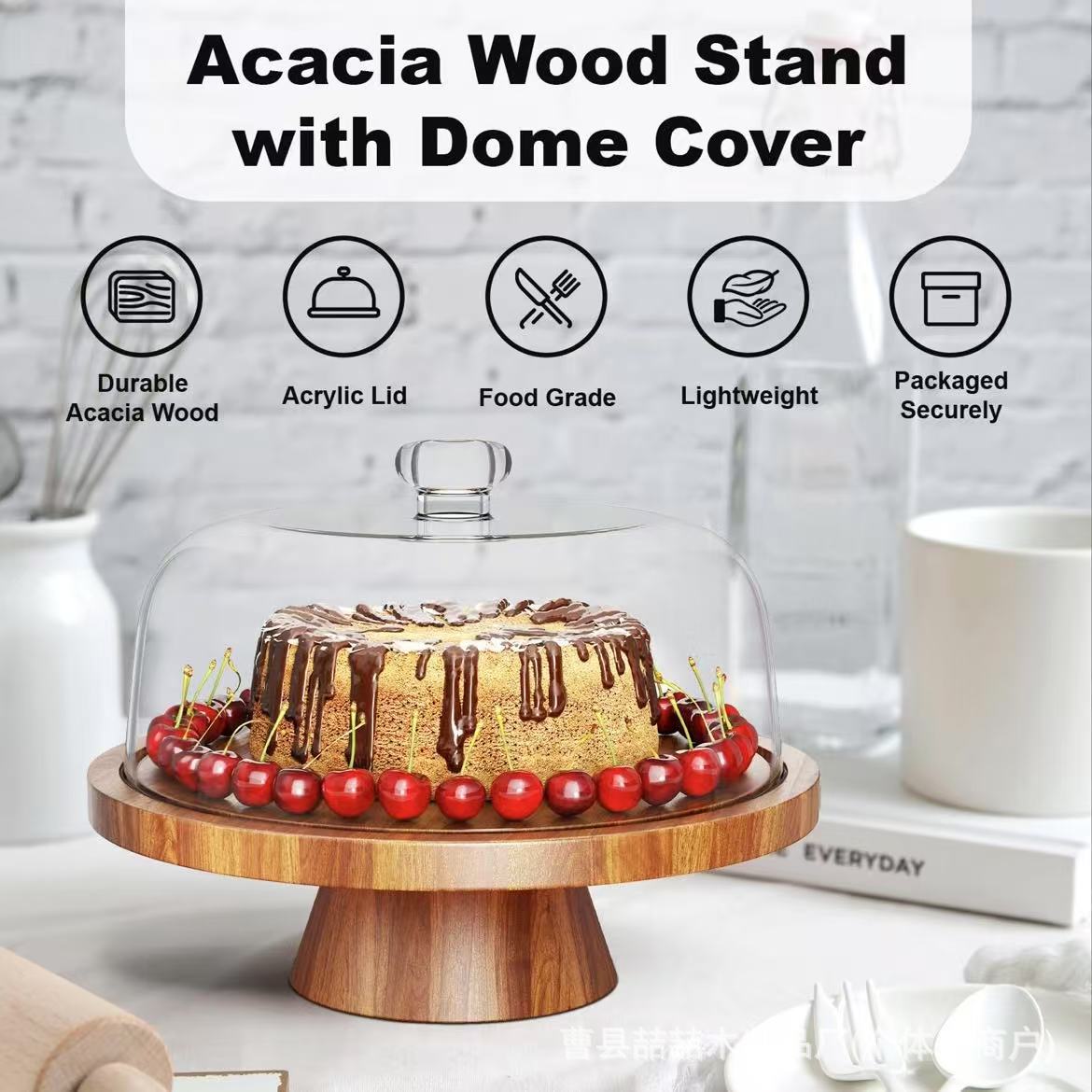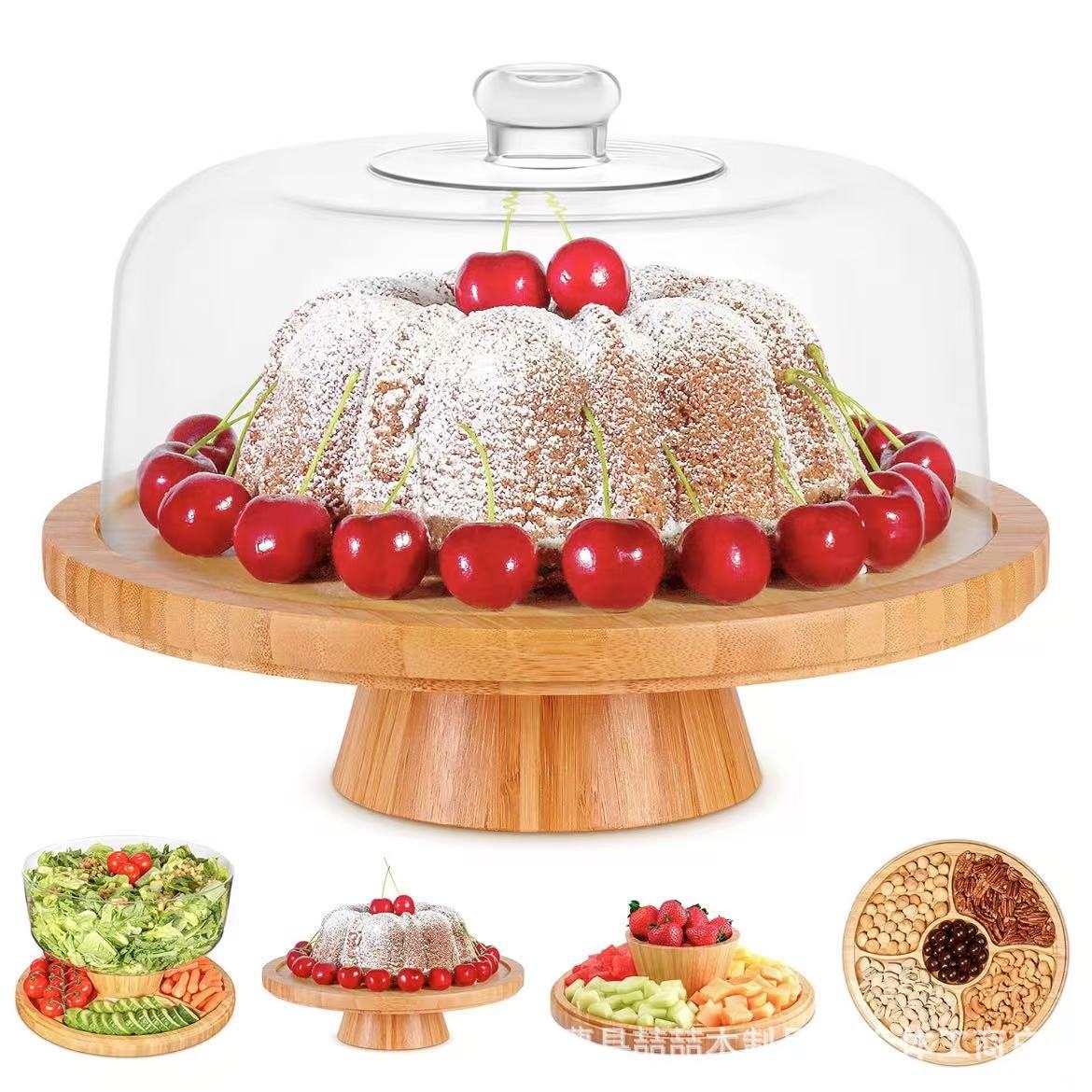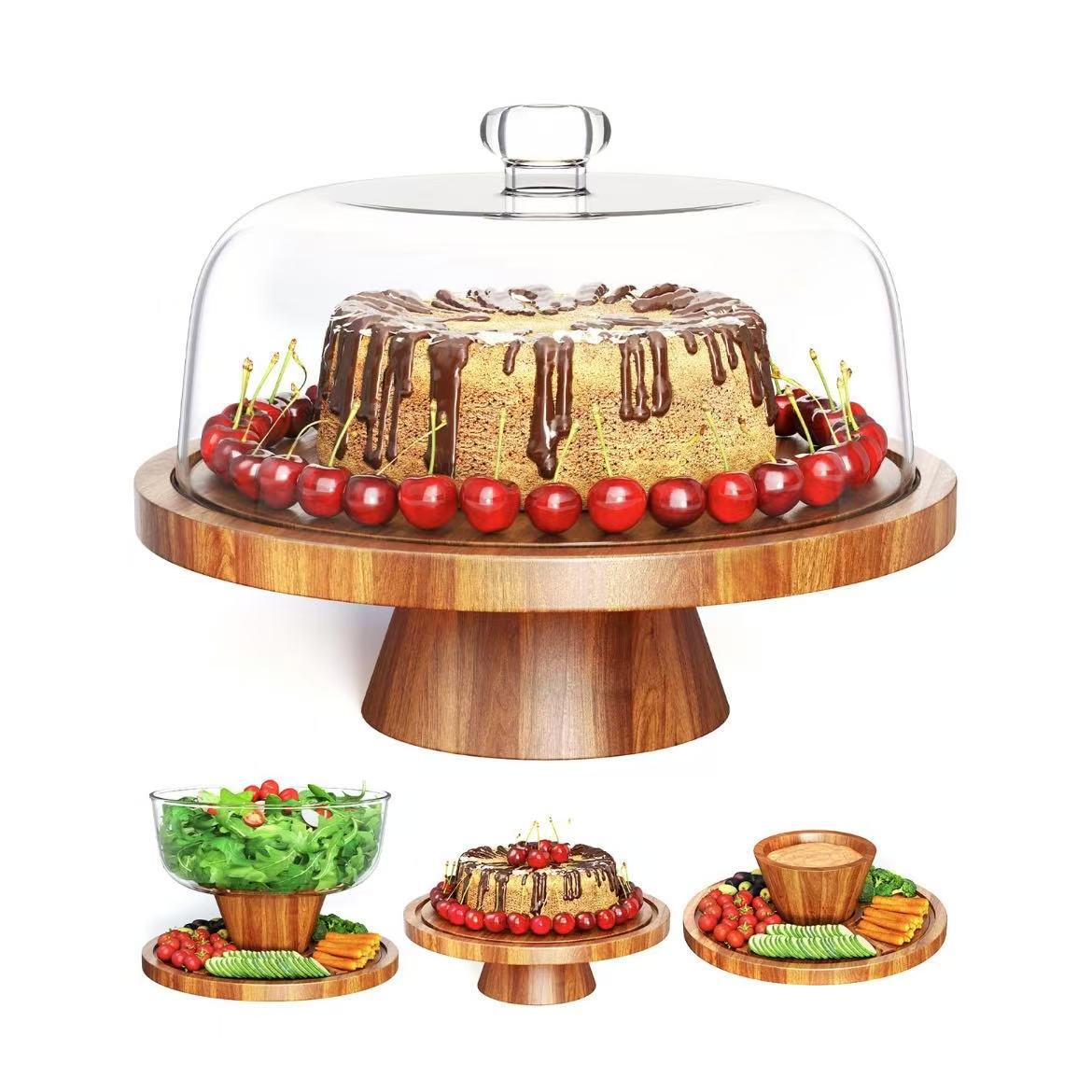 스팟 나무 케이크 접시 단단한 나무 높은 과일 디저트 접시 뚜껑 디저트 케이크 디스플레이 스탠드 웨딩 디저트 스탠드