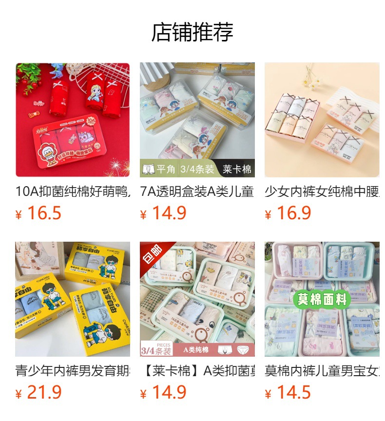 어린이 순면 속옷, 사계절용, 무봉제, 남아 및 여아 사각팬티, 도매, 유아 및 중년 어린이용, 무봉제 기술스토어 가기