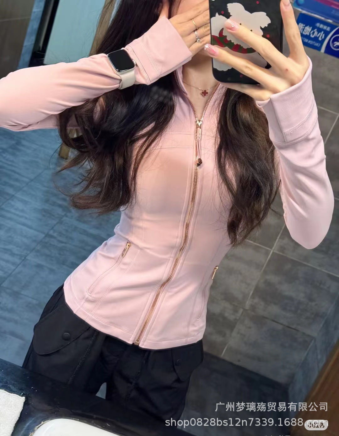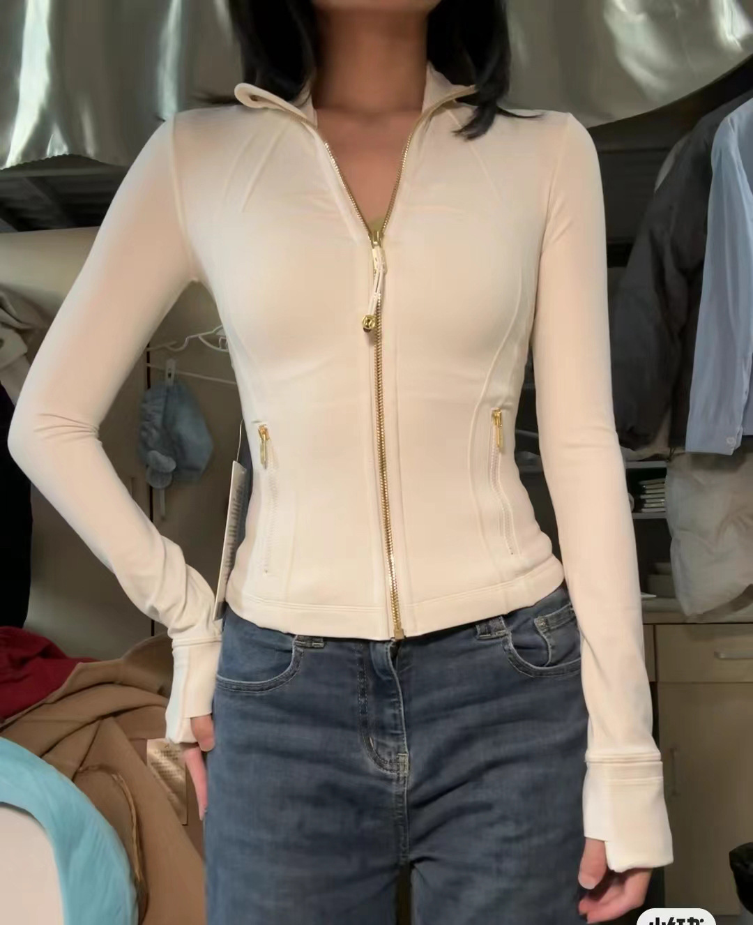 Lulu 오리지널 라벨 Define 스탠드 칼라 재킷 골드 지퍼 요가 탑 피트니스웨어 긴팔 재킷 여성 슬림핏
