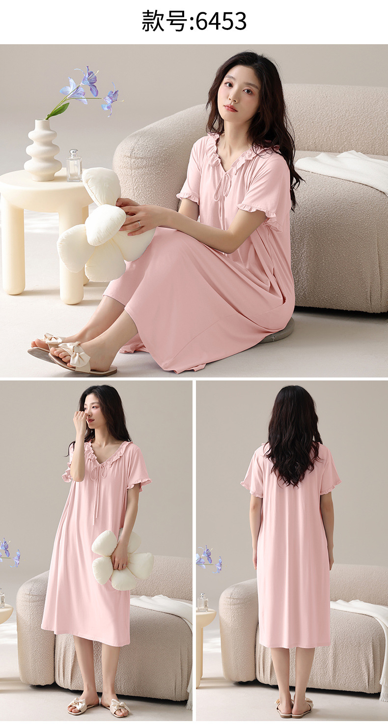 여름 반팔 하이 퀄리티 나이트 드레스 여자 가슴 패드 여름 중장 홈 의류 플러스 사이즈 한국 모달 RC스토어 가기