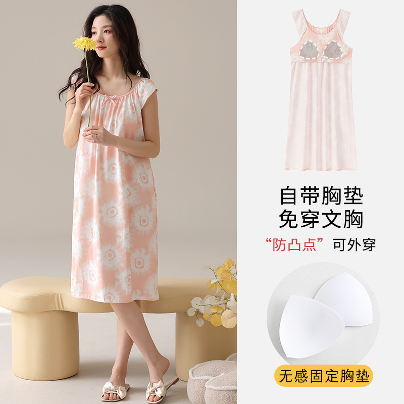여름 반팔 하이 퀄리티 나이트 드레스 여자 가슴 패드 여름 중장 홈 의류 플러스 사이즈 한국 모달 RC
