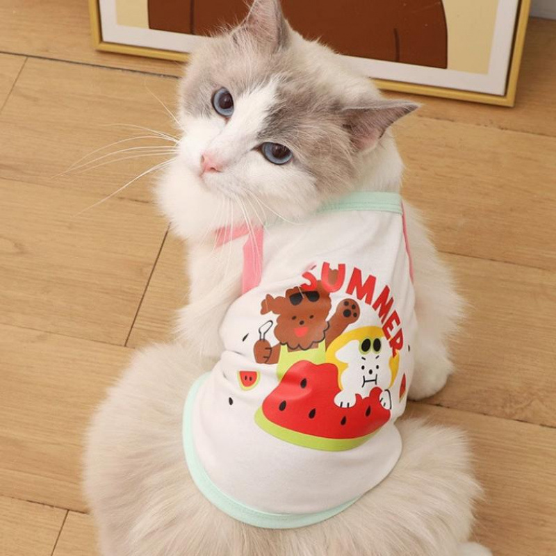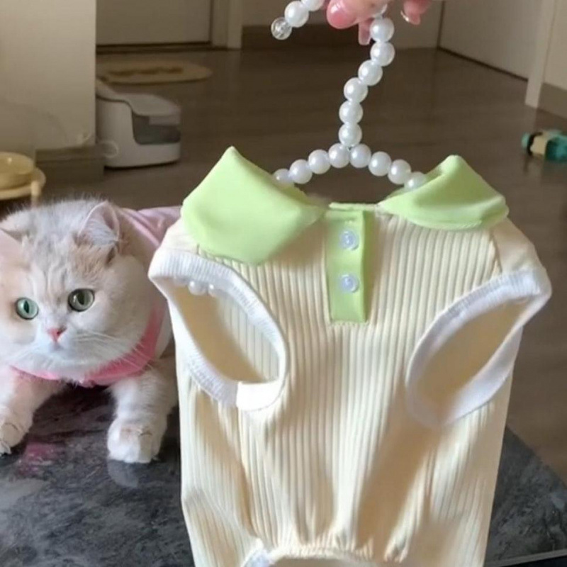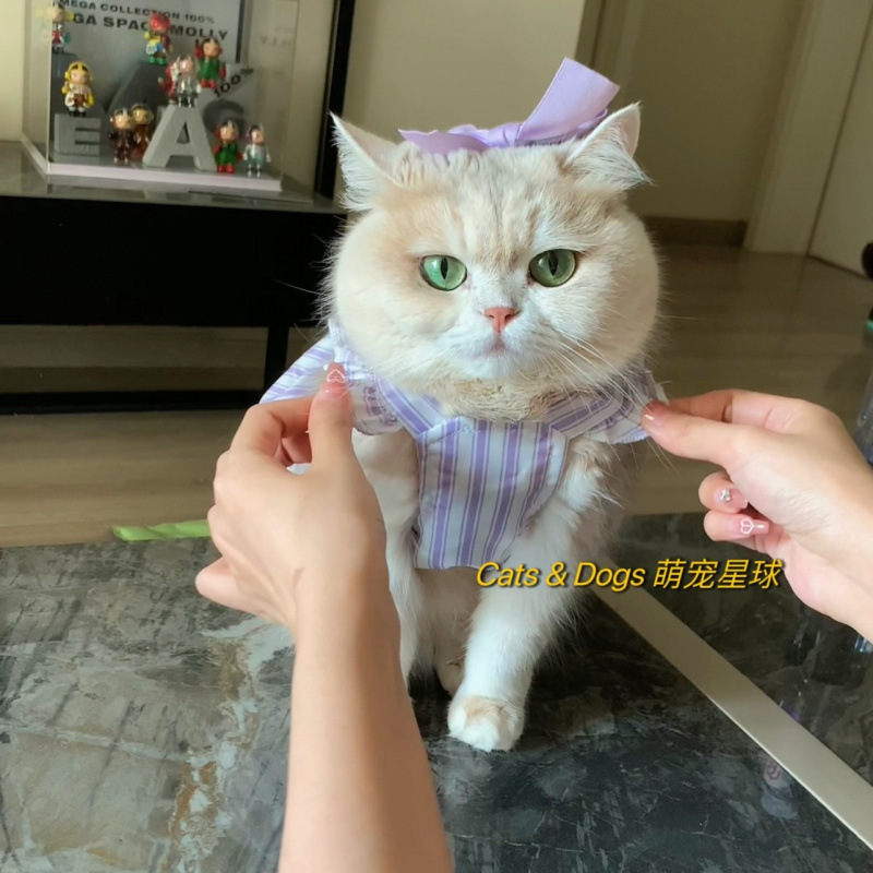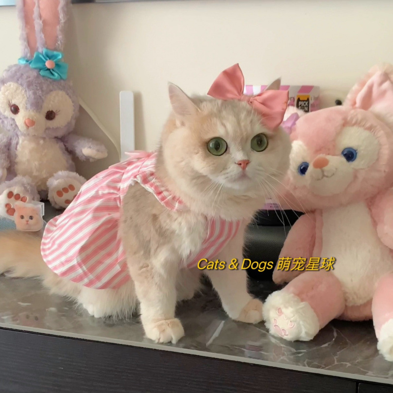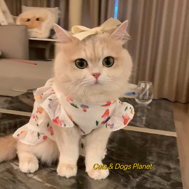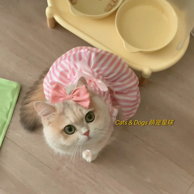 고양이 옷 여름 서스펜더 드레스 개 공주 드레스 얇은 조끼 안티 헤어 애완 동물 골드 그라데이션 래그돌스토어 가기