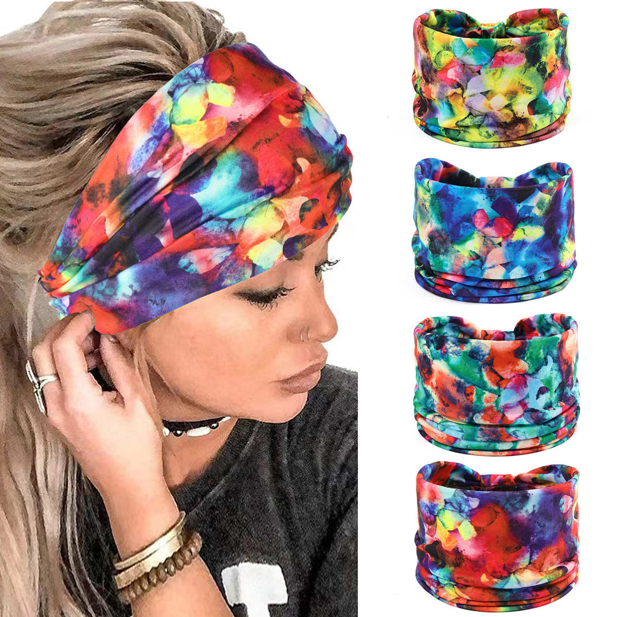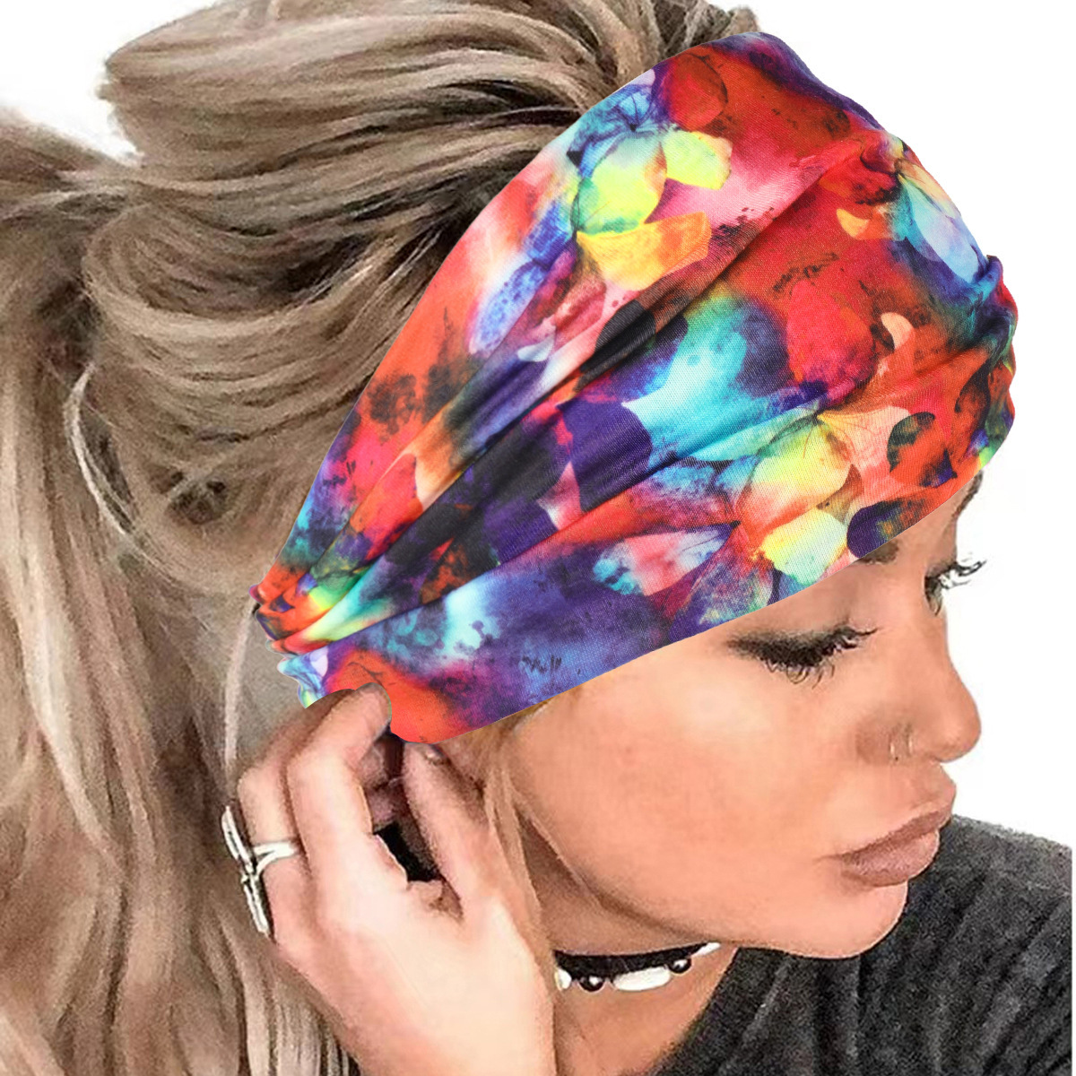 국경 간 여름 새로운 스포츠 헤어 밴드 인쇄 넓은 챙이 후드 땀 흡수성 매듭 여성용 스트레치 헤어 밴드 머리띠