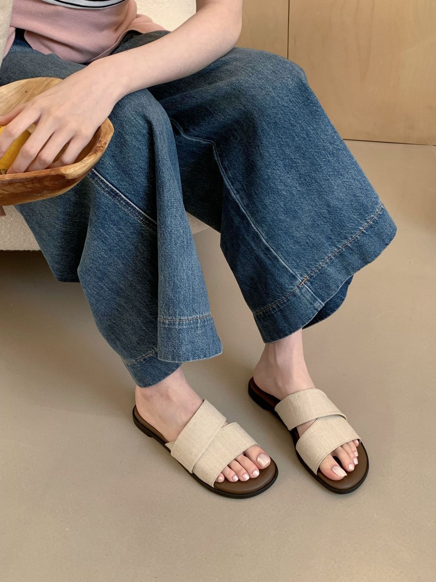 여성을위한 홍콩 스타일 린넨 캔버스 슬리퍼 2025 여름 휴가 스타일 비치 플랫 샌들 겉옷스토어 가기