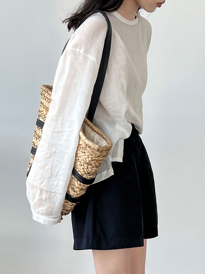 룩시 100 면 한국 스타일 간단한 높은 허리 스트레이트 반바지 여성 여름 새로운 캐주얼 슬리밍 A 라인 와이드 레그 1885스토어 가기