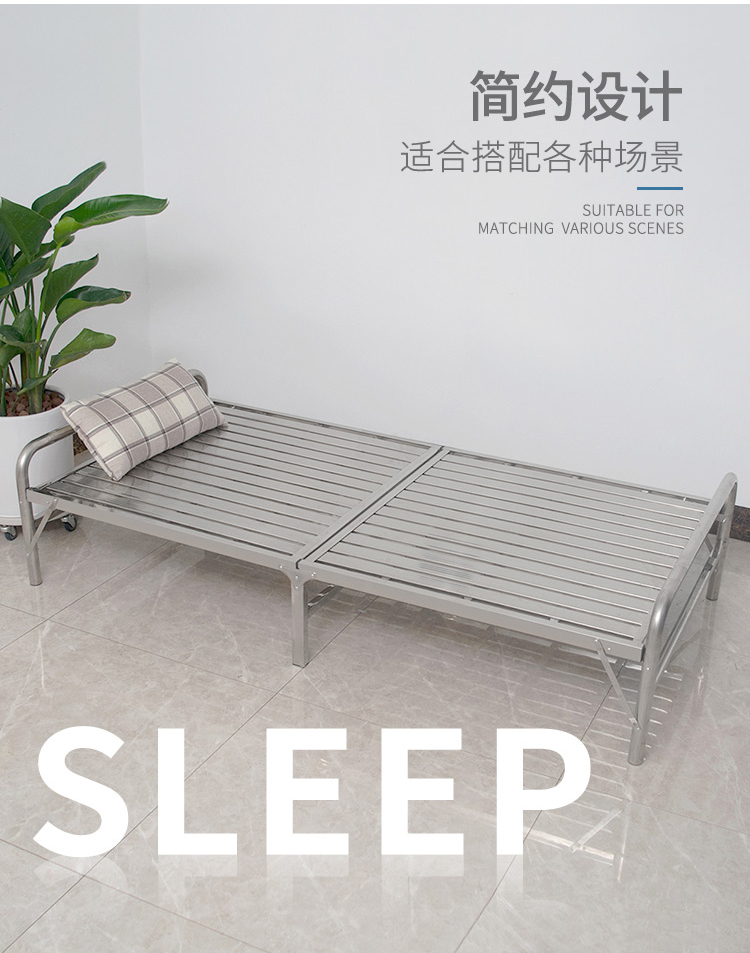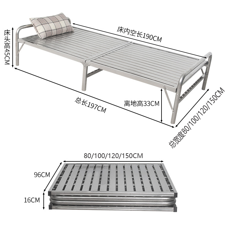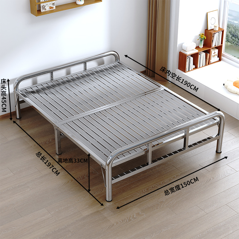 스테인레스 스틸 접이식 침대 가정용 간단한 침대 사무실 점심 시간 낮잠 침대 1.12m 싱글 더블 침대 철 침대