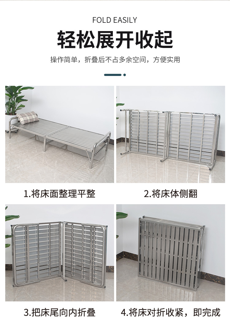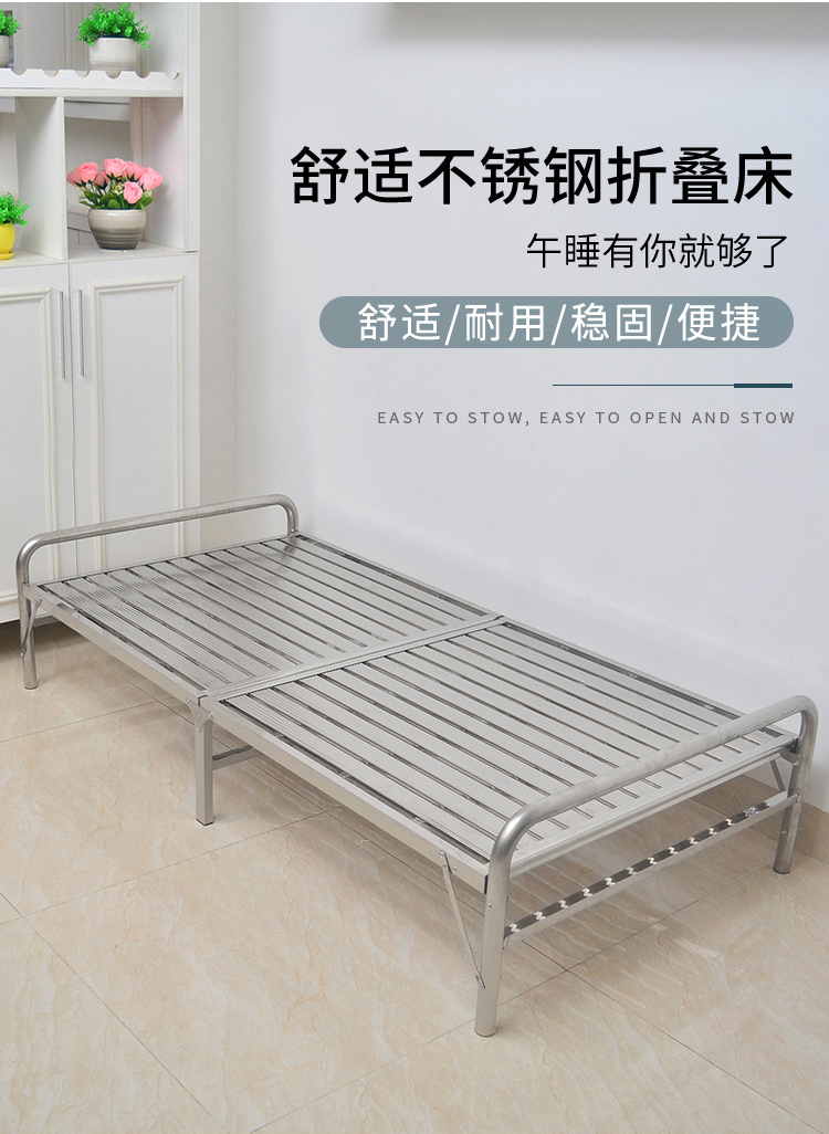 스테인레스 스틸 접이식 침대 가정용 간단한 침대 사무실 점심 시간 낮잠 침대 1.12m 싱글 더블 침대 철 침대스토어 가기