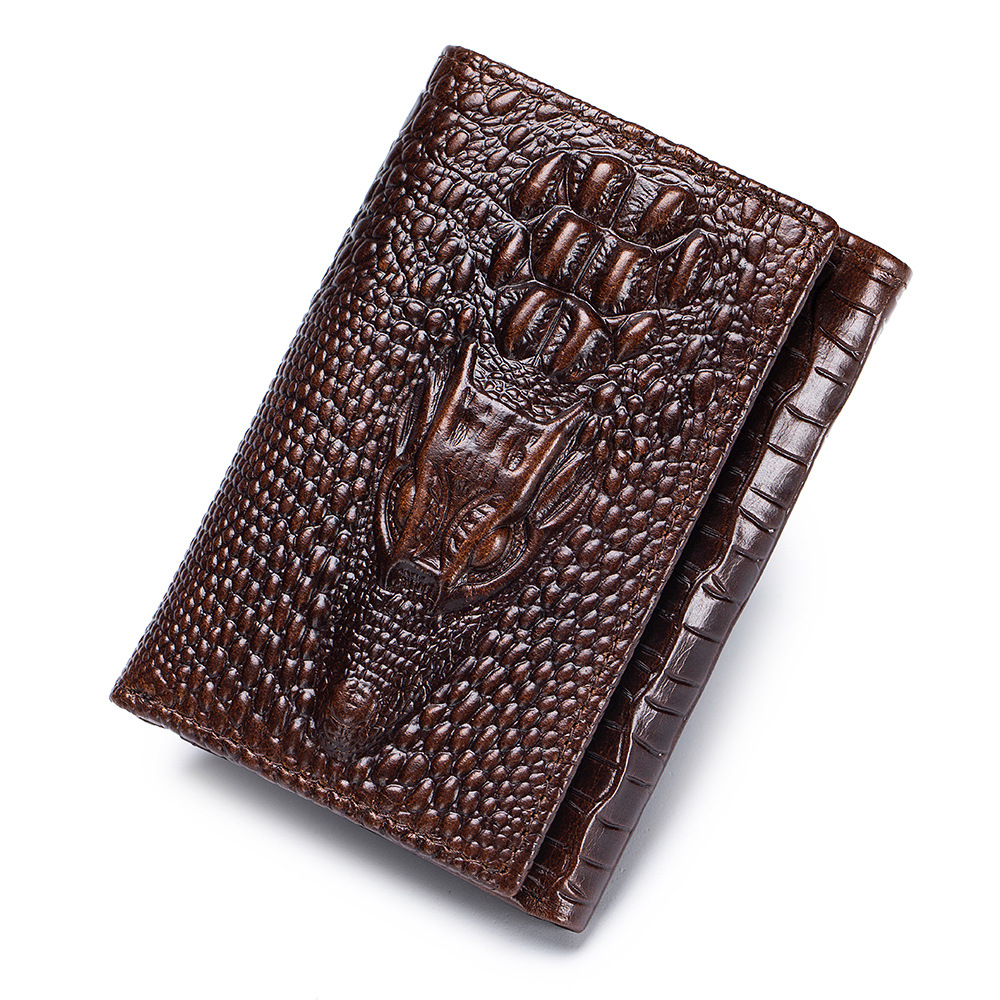 STEEL LION 남성용 정품 가죽 악어 무늬 지갑, 멀티 카드 슬롯, 사진 앨범 슬롯이 있는 복고풍 스타일, 도난 방지 브러시 지갑스토어 가기